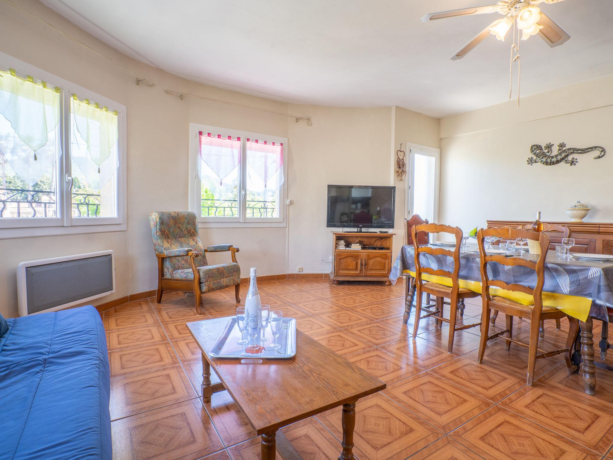 3-room apartment 75 m2 on 1st floor. Simple and practical furnishings: living/dining room with 1 sofabed (120 cm, length 190 cm), TV. Exit to the balcony. 1 room with 1 french bed (140 cm, length 190 cm). Exit to the balcony. 1 room with 1 french bed (140 cm, length 190 cm). Kitchen (4 hot plates, oven, toaster, kettle, microwave, freezer, electric coffee machine, Capsules for coffee machine (Senséo) extra). Bathroom, sep. WC. Electric heating. Small balcony 4 m2, south-east facing position, garden 160 m2, north-west facing position. Terrace furniture. Facilities: washing machine, iron. Internet (WiFi, extra). Parking at the house. Please note: maximum 1 small pet/ dog allowed. TV only FR. Smoke alarm. 83112 000404 KN