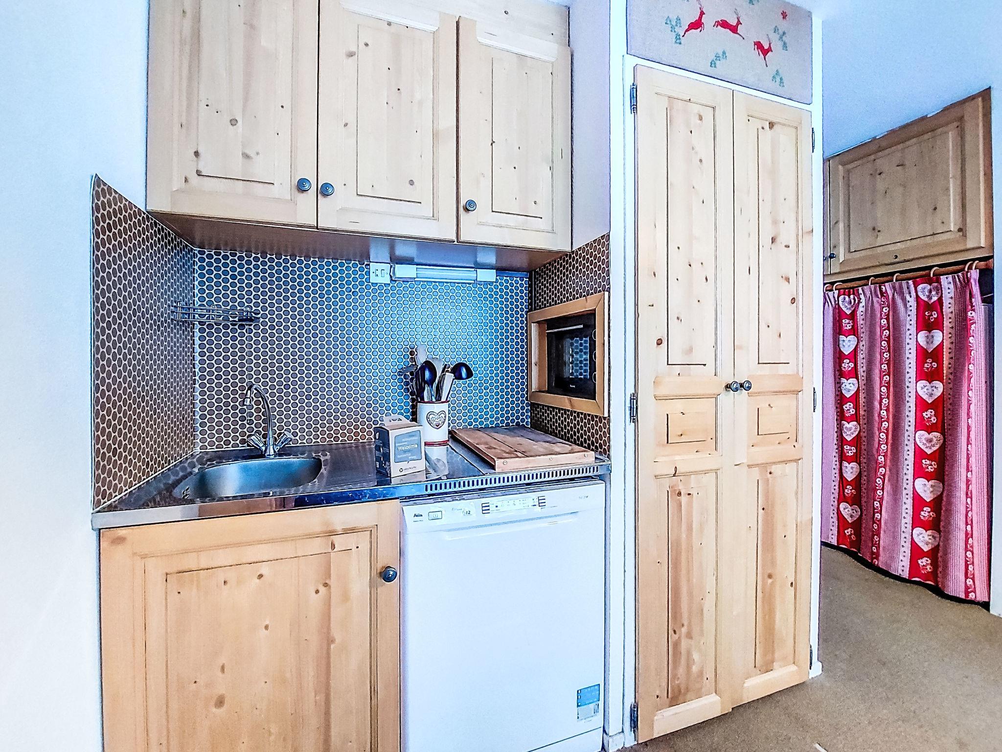 "Topaze 31", 1-room studio 25 m2, on the ground floor. Living/dining room with 1 sofabed (140 cm, length 190 cm), dining table and TV (flat screen). Exit to the balcony. Sleeping alcove with 2 pull-out beds (2 x 70 cm, length 190 cm). Open kitchen (mini-oven, 2 induction hot plates, electric coffee machine, Capsules for coffee machine (Senseo) extra, combination microwave). Bathroom, sep. WC. Electric heating. Large balcony 10 m2, south facing position. Balcony furniture. Beautiful view of the mountains. Facilities: Internet (WiFi, extra). Parking. Please note: non-smokers only. TV only FR. Smoke alarm. Offer by a private individual according to Art. 155, IV of CGI.