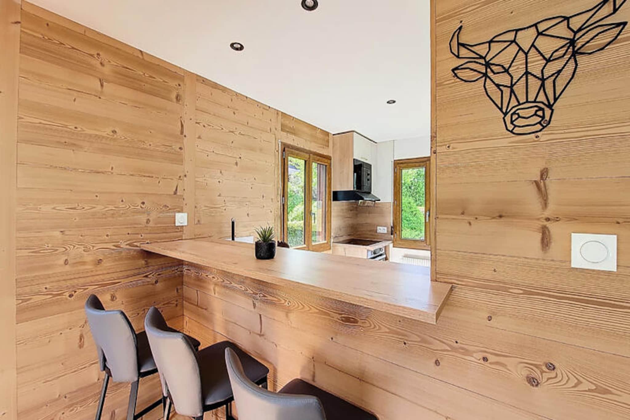 Omgitt av de fantastiske toppene i de franske Alpene, tilbyr denne sjarmerende frittliggende hytta i Morzine et rolig fjellopphold med moderne bekvemmeligheter. Perfekt plassert bare 200 meter fra Avoriaz-bussen og en kort 3-minutters kjøretur fra det livlige sentrum, kombinerer den bekvemmelighet med ro. Enten du planlegger et vinterskieventyr eller en sommerferie, lover denne hytta uforglemmelige øyeblikk midt i et fantastisk alpint landskap. \n\nInnvendig strekker hytta seg over 67 m² og har komfortabel plass til opptil seks gjester fordelt på tre gjennomtenkt designede soverom. Hovedetasjen har et fullt utstyrt kjøkken med moderne hvitevarer, en koselig spiseplass og et vaskerom med vaskemaskin og dusj. Ovenpå er det to doble soverom med balkongtilgang som gir vidstrakt fjellutsikt, mens et tredje soverom med køyesenger er perfekt for barn eller venner. Badet har badekar, oppvarmet håndklestativ og ekstra toalett, noe som sikrer et komfortabelt opphold for alle. \n\nUtendørsfasiliteter inkluderer to private parkeringsplasser og en liten hage hvor du kan nyte den friske fjelluften. Garasjen i første etasje fungerer også som et oppbevaringsområde for ski og sykkel, komplett med et vannuttak for rengjøring av utstyret ditt etter en dag med eventyr. Ytterligere detaljer som Wi-Fi, elektriske skodder og raclette- og fondue-sett bidrar til hyttas sjarm. \n\nMed sin nærhet til skiområdet Avoriaz, Morzines pulserende sentrum og endeløse tur- og sykkelstier, er denne hytta et ideelt utgangspunkt for å utforske Haute-Savoie-regionen. Enten du er her for å skjære deg gjennom puddersnøbakker, vandre gjennom alpine enger eller bare slappe av i hjertet av naturen, tilbyr dette fjellparadiset den perfekte settingen for din neste ferie.