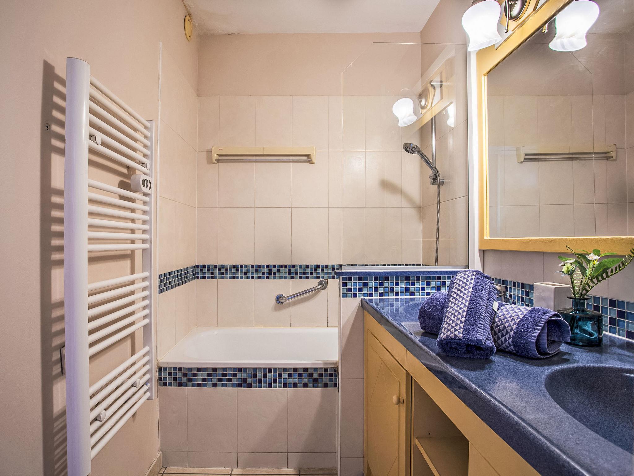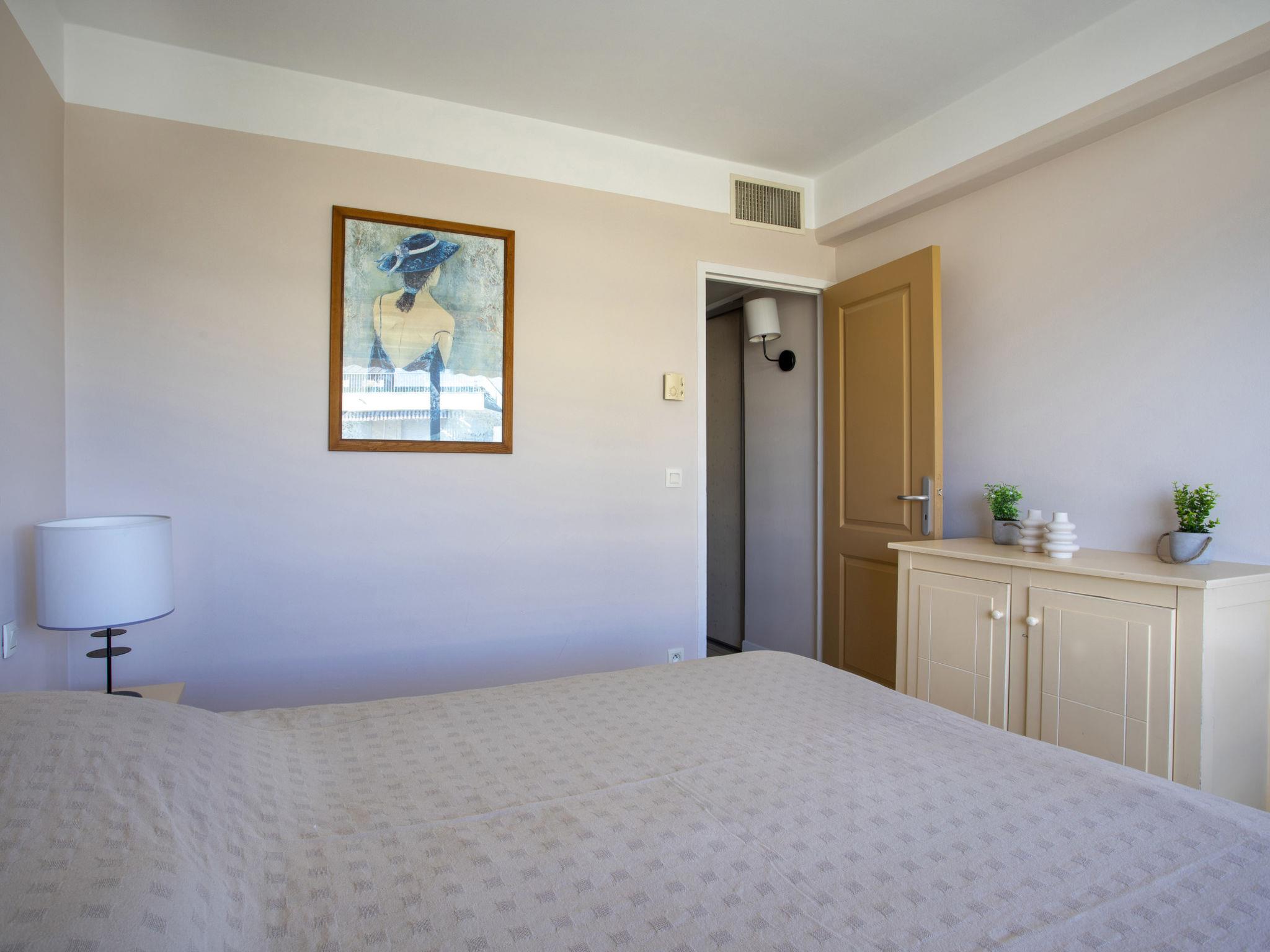 3-room apartment 50 m2 on 3rd floor, south-east facing position. Beautiful furnishings: living/dining room with TV (flat screen). Exit to the terrace. 1 room with 1 french bed (1 x 160 cm, length 200 cm). Exit to the terrace. 1 small room with 1 x 2 bunk beds (90 cm, length 190 cm). Open kitchen (dishwasher, 3 ceramic glass hob hotplates, toaster, kettle, microwave, electric coffee machine). Exit to the terrace. Bathroom, sep. WC. Large balcony, large terrace 25 m2, south facing position and, east facing position. Terrace furniture. Beautiful view of the sea, the swimming pool and the garden. Facilities: iron, hair dryer. Internet (WiFi, free). Parking. Please note: non-smoking house. Smoke alarm. Offer by a private individual according to Art. 155, IV of CGI. 06123035044SB