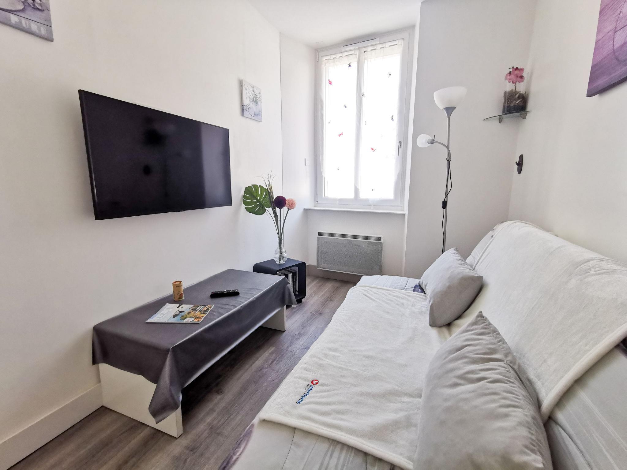 2-room apartment 41 m2, on the ground floor. Renovated in 2015: living room with 1 sofabed and TV (flat screen), electric shutters. 1 room with 1 french bed (1 x 160 cm, length 190 cm), TV (flat screen), electric shutters. Kitchen (oven, dishwasher, 3 induction hot plates, microwave, freezer, electric coffee machine) with TV (flat screen). Shower, sep. WC. Electric heating. Facilities: washing machine, dryer, iron. Internet (WiFi, free). Please note: apartment street side. Non-smokers only. Smoke alarm. 35288000517F3