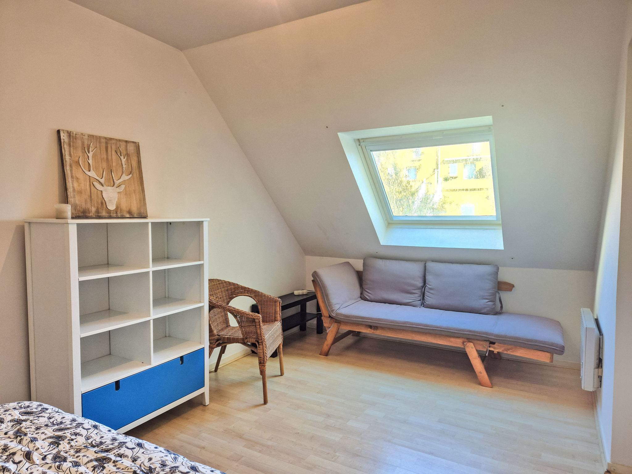 "maison des Corsaires", 6-room house 120 m2 on 3 levels. Object suitable for 8 adults + 2 children. Spacious and bright, comfortable and tasteful furnishings: large living/dining room with open-hearth fireplace and TV (flat screen). Exit to the garden. Large kitchen (dishwasher, 4 ceramic glass hob hotplates, microwave, freezer, electric coffee machine). Exit to the garden. Shower/WC, sep. WC. Electric heating. Upper floor: 1 room with 2 beds (90 cm, length 190 cm). 1 room with 1 french bed (1 x 160 cm, length 190 cm). 1 room with 1 french bed (1 x 160 cm, length 190 cm). 1 room with 1 french bed (1 x 140 cm, length 190 cm). Bathroom, sep. WC. 2nd upper floor: 1 large room with sloping ceilings with 1 french bed (1 x 140 cm, length 190 cm). Parquet floors. Garden. Terrace furniture. Facilities: washing machine, dryer, iron, hair dryer. Internet (WiFi). Parking (2 cars). Please note: suitable for families. Non-smoking house. Smoke alarm. 35288000696D4