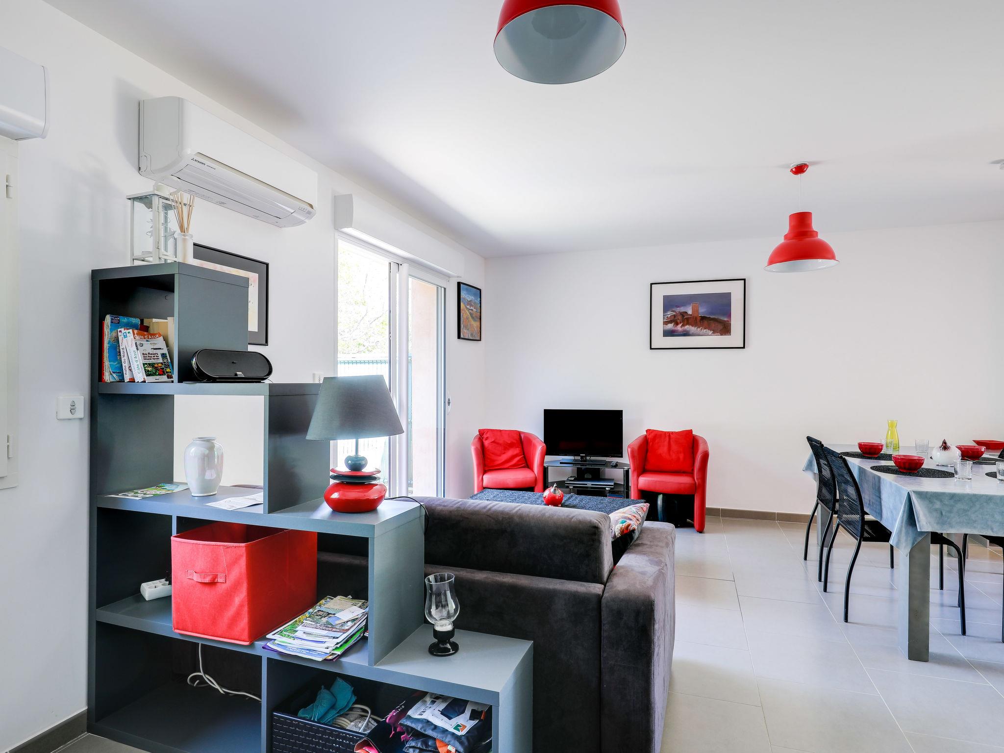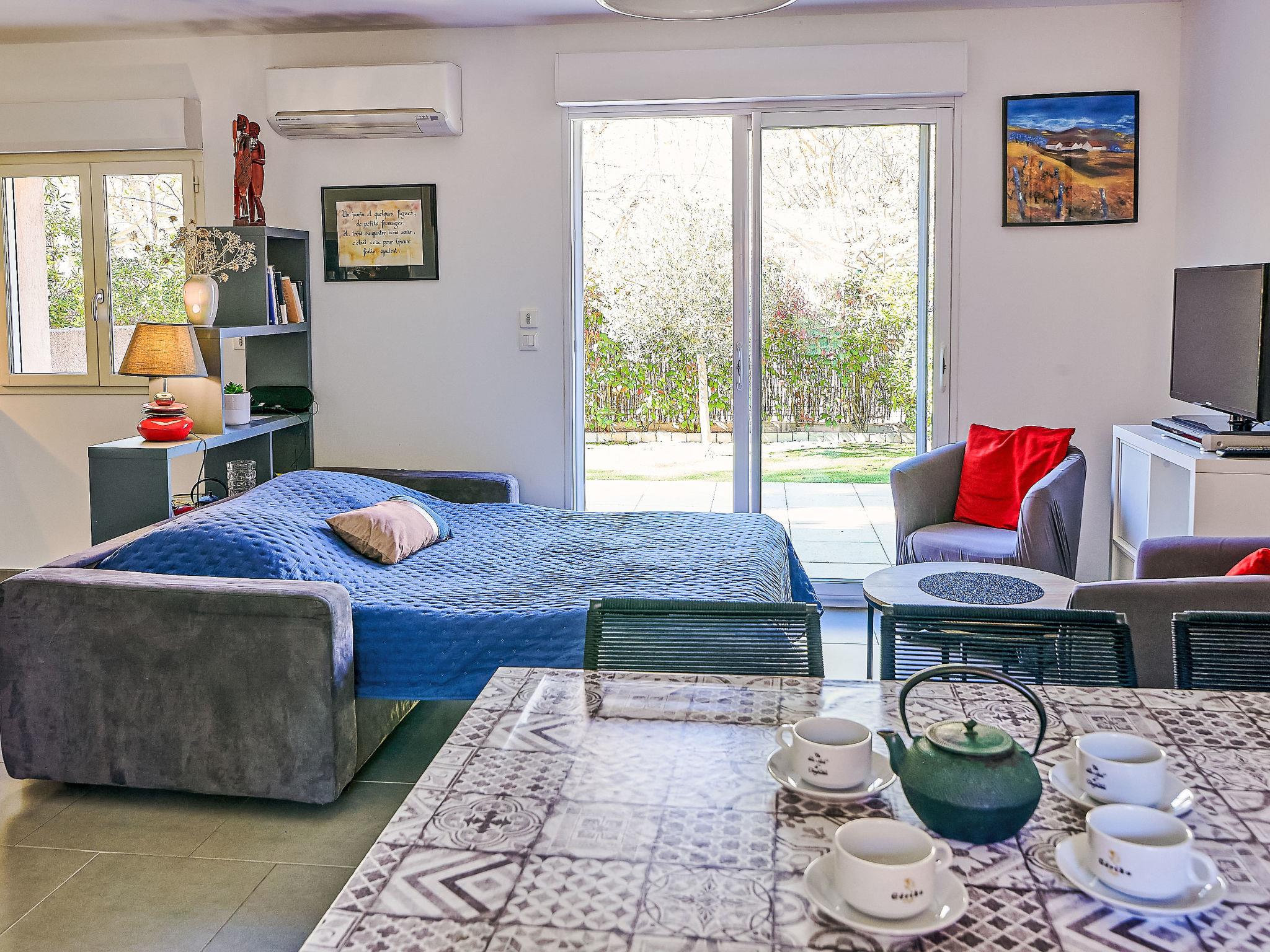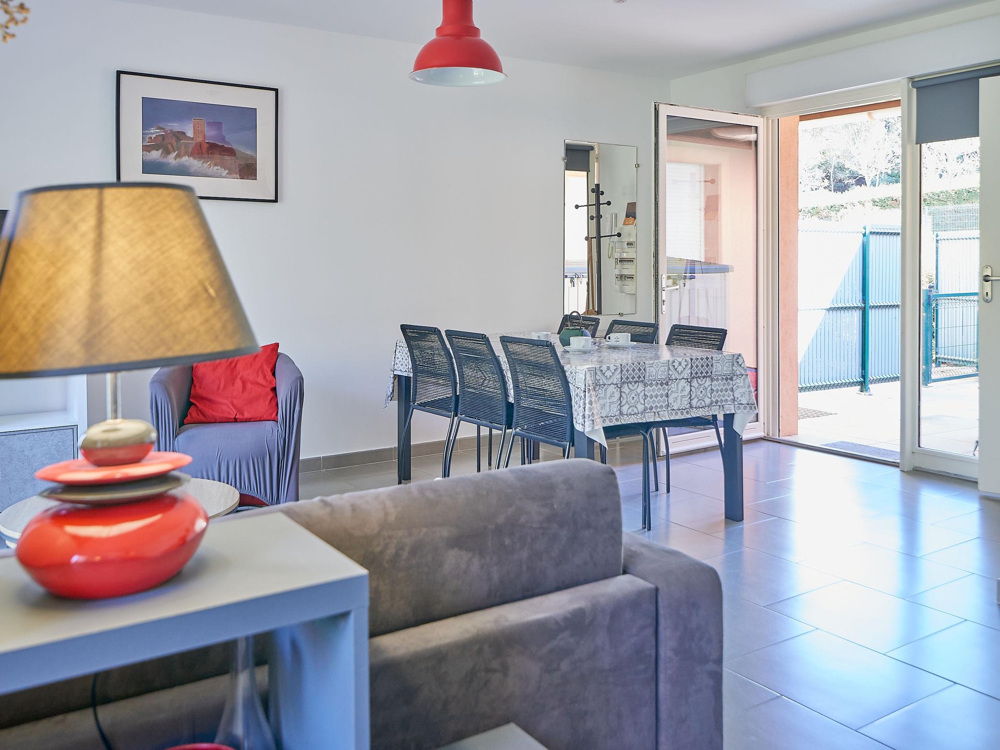 2-room semi-detached house 47 m2. Fully renovated: living/dining room with 1 double sofabed (1 x 140 cm, length 190 cm), TV, electric heating and air conditioning. Exit to the terrace. 1 room with 1 french bed (1 x 140 cm, length 190 cm), air conditioning. Exit to the terrace. Open kitchen (oven, dishwasher, 3 ceramic glass hob hotplates, toaster, kettle, microwave, freezer, electric coffee machine). Shower/WC. 2 terraces 30 m2. Terrace furniture. Facilities: washing machine, iron, hair dryer. Internet (WiFi, extra). Parking space n 38. Please note: non-smokers only. TV only FR. Smoke alarm.