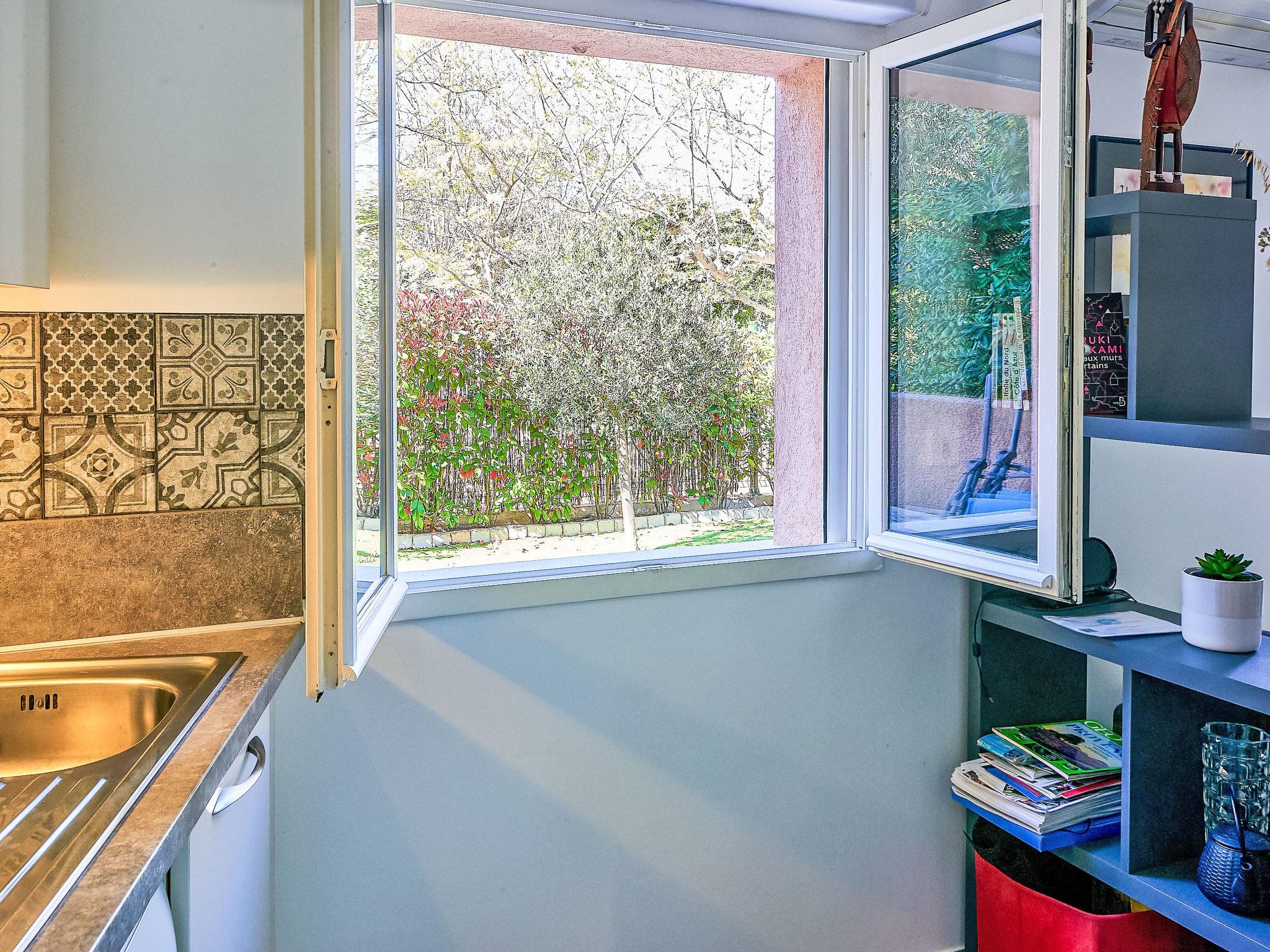 Small farm estate "Villa Robinson". 6 houses in the residence. In the district of Camp Long, on the outskirts, 9 km from the centre of Saint Raphael, from the sea, 50 m from the beach, direct access to the beach. Grocery 800 m, supermarket 6 km, restaurant 50 m, bakery 700 m, bus stop 220 m, railway station "Saint Raphael" 9 km, sandy beach "Camp Long" 50 m. Sports harbour 1 km, golf course (18 hole) 11 km. Hiking paths: L'Estérel 3 km. Please note: car recommended. Residence with electric gates. The keys‘ handover takes place by the agency INTERHOME in Port Fréjus.
