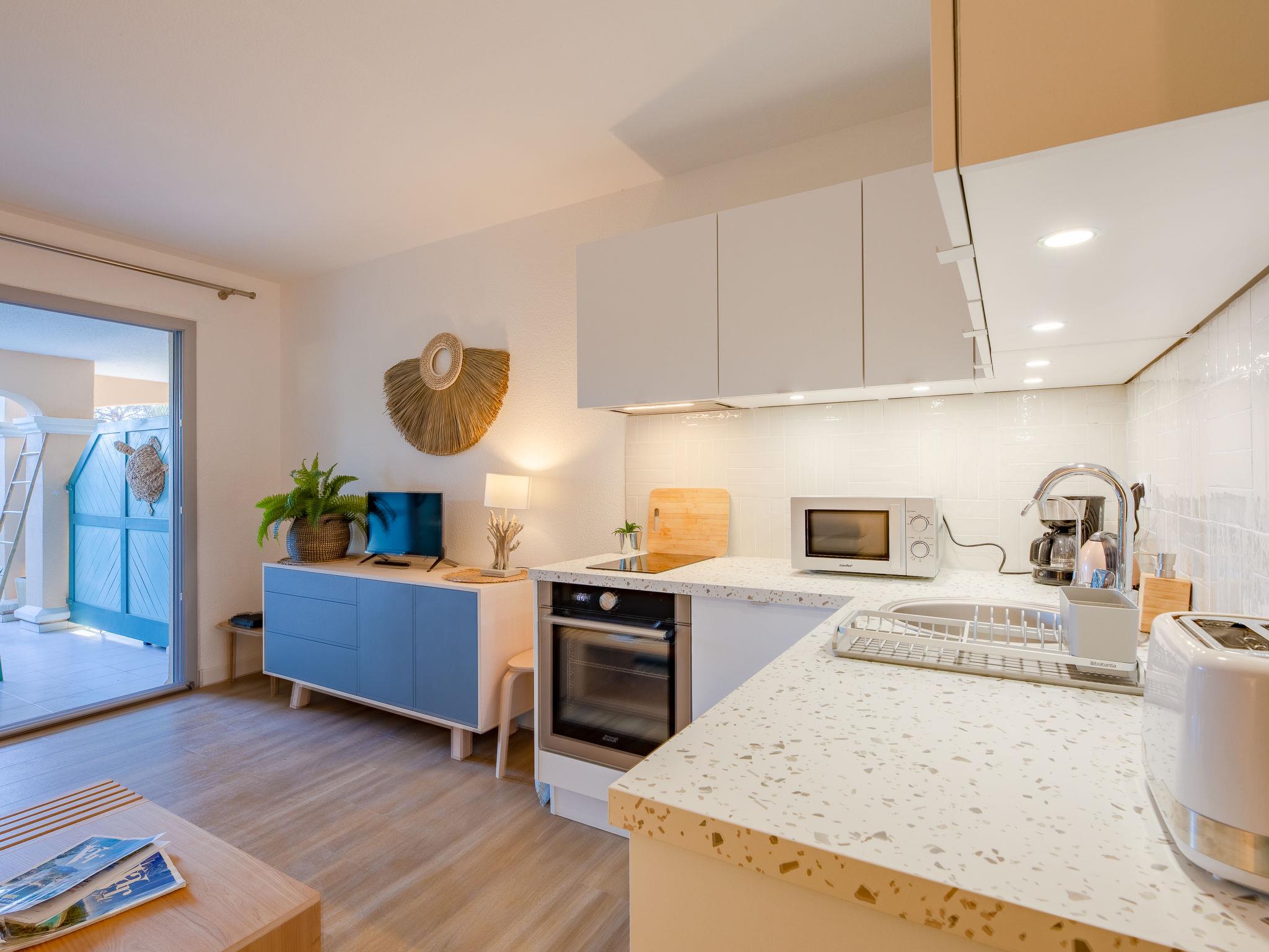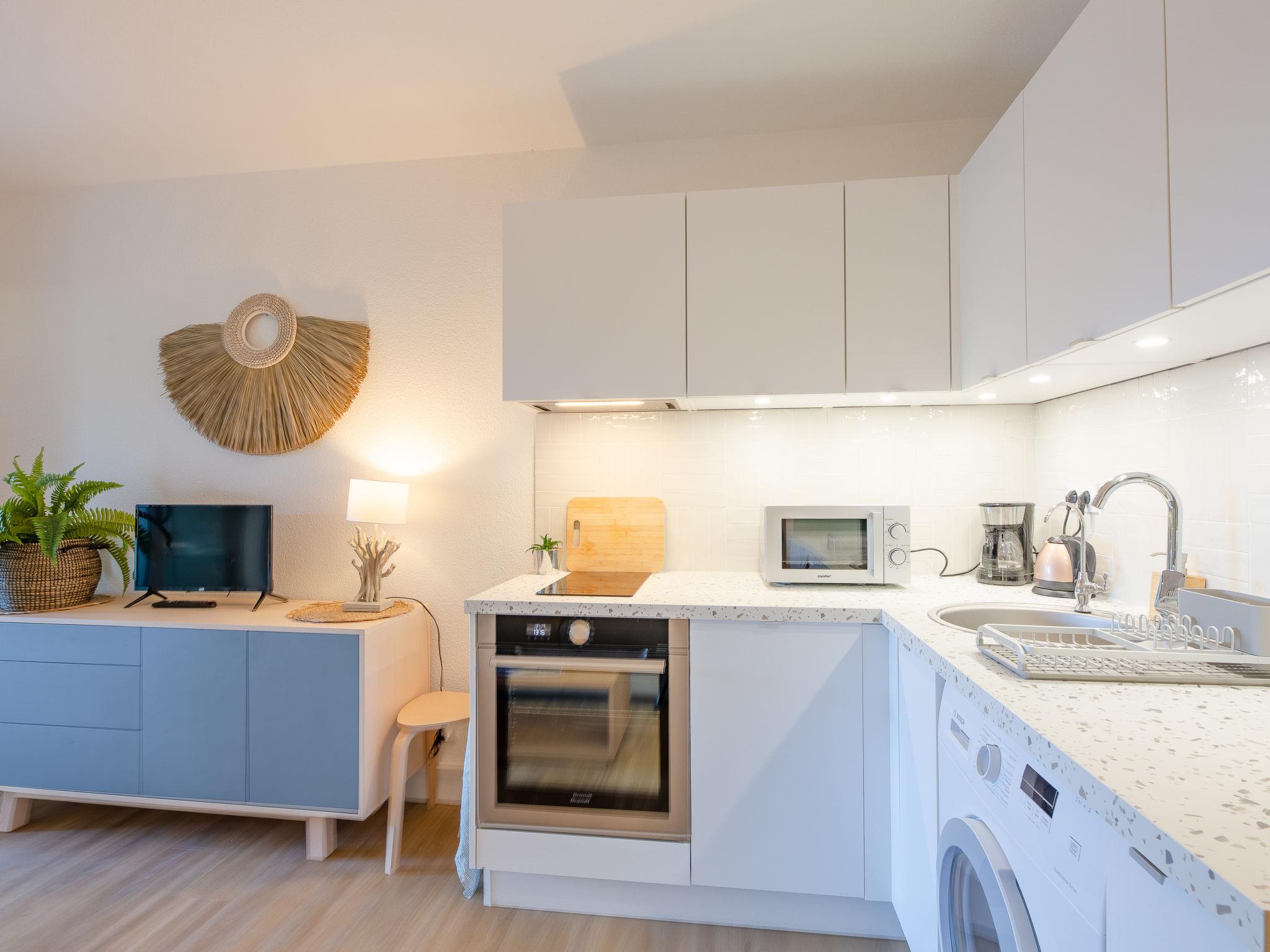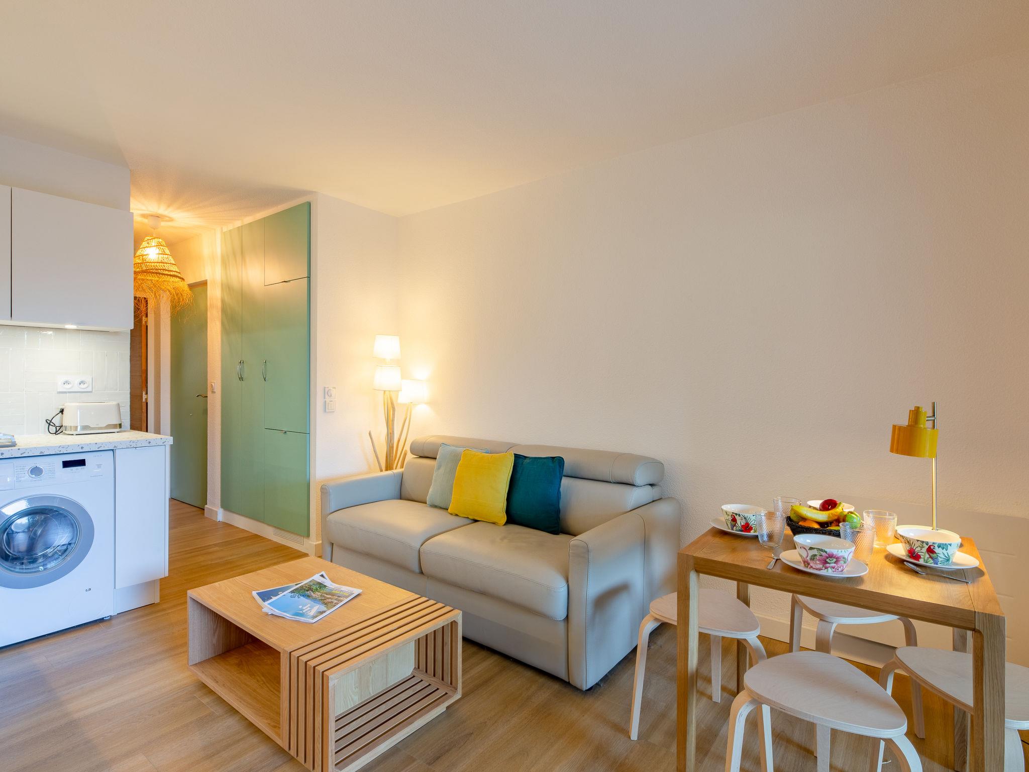 2-room apartment 31 m2, on the ground floor. Renovated in 2023: living/dining room with 1 double sofabed (1 x 140 cm, length 190 cm), TV and flat screen. Exit to the terrace. 1 room with 1 french bed (1 x 160 cm, length 200 cm). Open kitchen (oven, dishwasher, 2 induction hot plates, toaster, kettle, microwave, freezer, electric coffee machine). Shower/WC. Electric heating. Terrace 15 m2, south facing position and, east facing position. Terrace furniture. View of the garden. Facilities: washing machine, iron, hair dryer. Internet (WiFi, free). Parking space n Libre service. Please note: non-smokers only. Smoke alarm. Offer by a private individual according to Art. 155, IV of CGI.