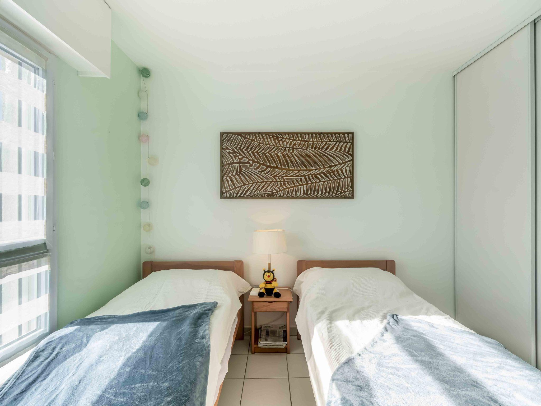 3-room apartment 70 m2 on 2nd floor. Living/dining room with TV, flat screen and air conditioning. Exit to the balcony, south facing position. 1 room with 1 french bed (1 x 160 cm, length 200 cm), TV, flat screen and air conditioning. 1 room with 2 double beds (2 x 90 cm, length 200 cm), air conditioning. Kitchen (4 hot plates, oven, dishwasher, toaster, kettle, microwave, freezer, electric coffee machine, Capsules for coffee machine (Nespresso) extra). Shower, bidet, sep. WC. Electric heating. Terrace 10 m2. Balcony furniture. View of the swimming pool. Facilities: iron. Internet (WiFi, free). Garage space n 12/13, height 205 cm, width 220 cm. Please note: non-smokers only. TV only FR. Smoke alarm. Offer by a private individual according to Art. 155, IV of CGI. XX