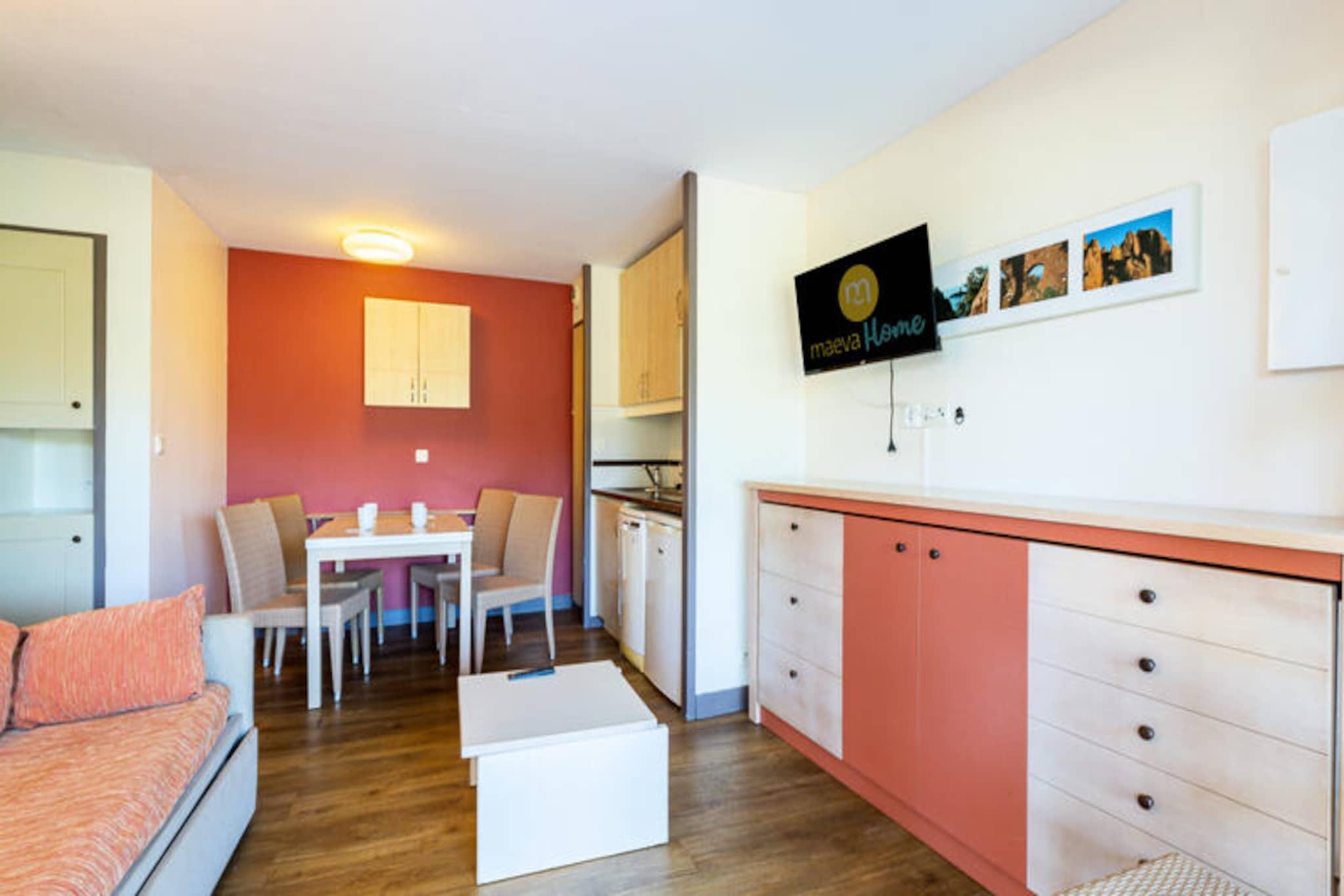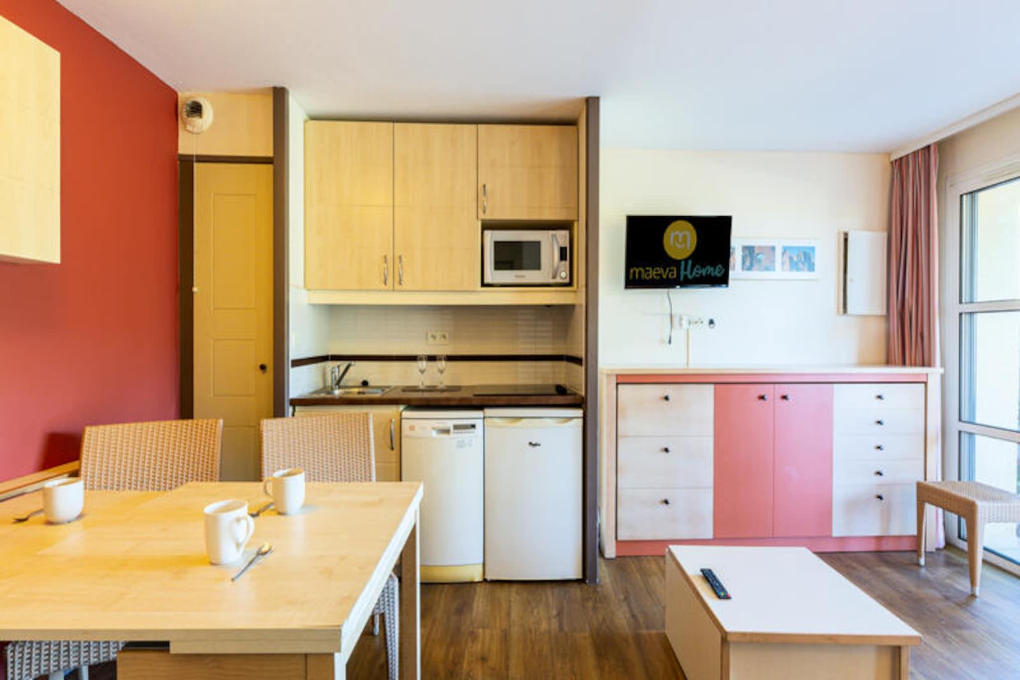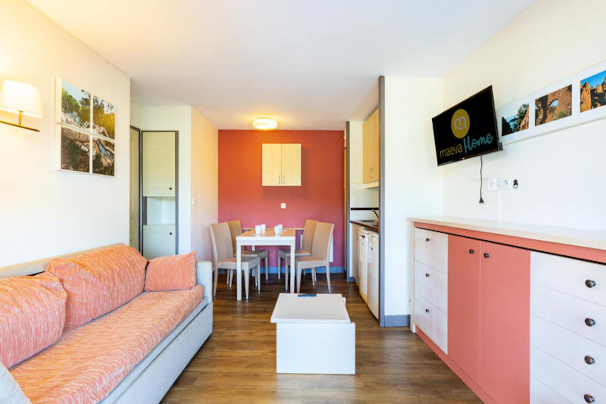 Denne sjarmerende leiligheten har plass til opptil fire gjester, og har en dobbeltseng på soverommet og en sovesofa med trille i stuen. Leiligheten har en overbygd terrasse med østvendt fjellutsikt, og gir et rolig uterom. Gjester er velkomne til å ta med kjæledyr mot et gebyr, slik at alle familiemedlemmer kan bli med på ferien. Dedikert utendørsparkering og valgfri Wi-Fi-tilgang bidrar til ditt oppholds bekvemmelighet. Eiendommen ligger i det pulserende sentrum av landsbyen, mindre enn 100 meter fra butikker, kafeer og spennende lokale aktiviteter. De vakre strendene i Agay Bay og Dramont ligger bare 1 km unna, og er lett tilgjengelige med Little Train-tjenesten som er tilgjengelig i høysesongen. Utforsk middelhavskysten eller nyt de frodige grønne områdene og rekreasjonsfasilitetene som omgir området. Innvendig tilbyr leiligheten et velutstyrt kjøkken i amerikansk stil med spisebord og fire stoler, ideelt for å tilberede og nyte måltider. Det moderne badet har badekar med dusjsøyle, elektrisk håndkletørker og separat toalett for ekstra privatliv. Med kvalitetsmøbler og gjennomtenkte fasiliteter er dette feriehuset perfekt for en avslappende ferie.