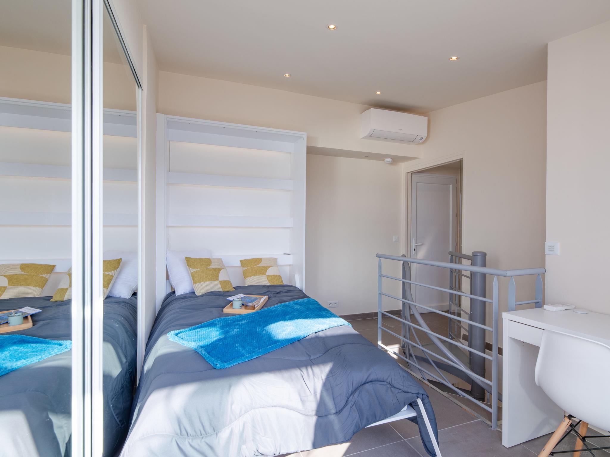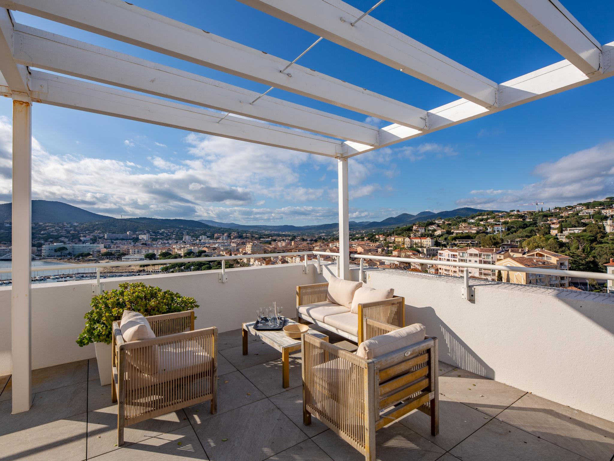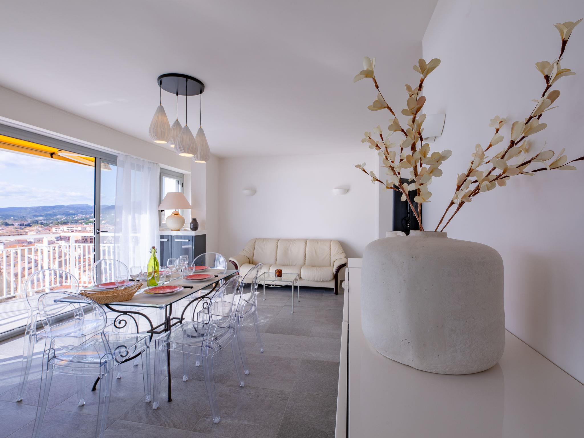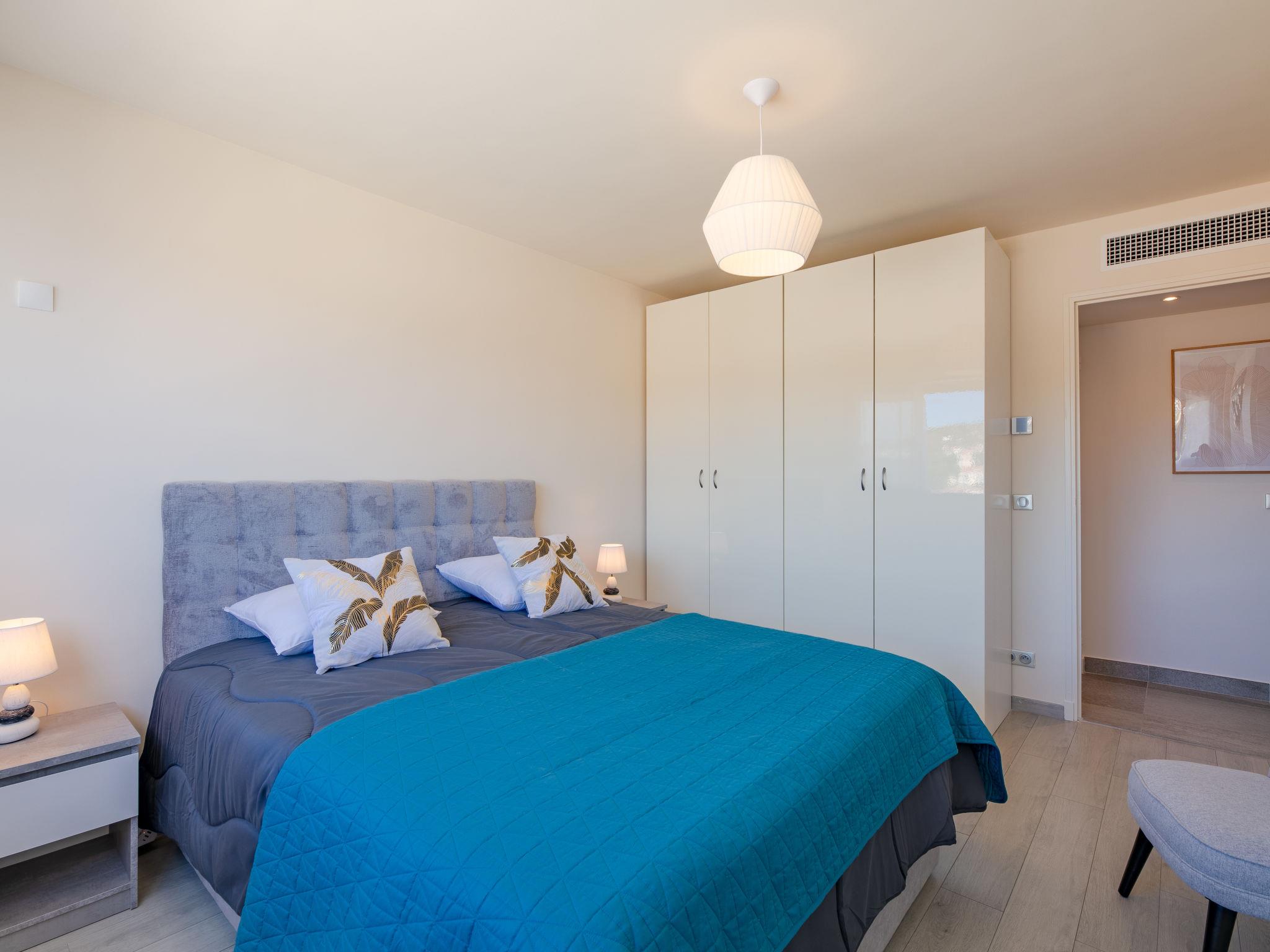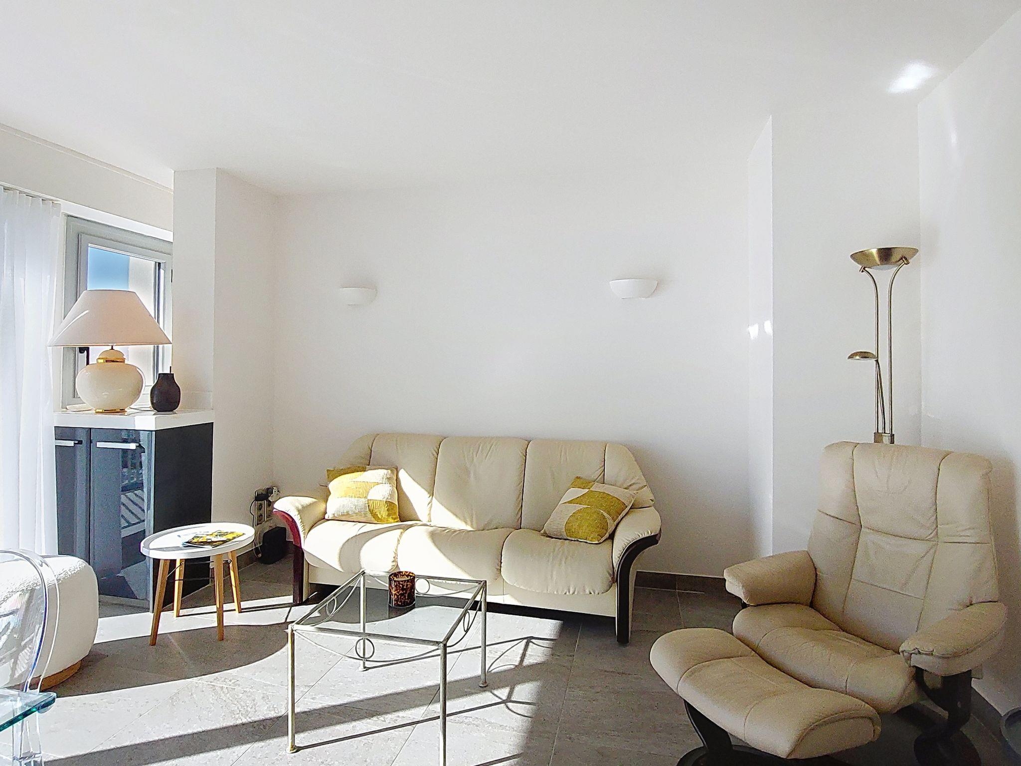 4-room maisonette 86 m2 on 10th floor, north-west facing position. Bright, fully renovated, modern furnishings: entrance hall. Living/dining room, west facing position with TV (flat screen). Exit to the balcony. 1 room, north facing position with 1 french bed (1 x 160 cm, length 200 cm). 1 room, north facing position with 2 beds (90 cm, length 200 cm). Open kitchen (oven, dishwasher, 4 induction hot plates, toaster, kettle, microwave, freezer, electric coffee machine). Shower, sep. WC. Air-conditioning, forced-air heating. Upper floor: (spiral staircase), 1 room, west facing position with 1 fold-away bed (120 cm, length 200 cm), shower. Exit to the terrace. Balcony 9 m2, west facing position, large balcony 47 m2, north-west facing position. Balcony furniture. Marvellous panoramic view of the sea and the town. Facilities: washing machine, iron, hair dryer. Internet (WiFi, free). Parking space n 595 (1 car). Please note: non-smokers only. Smoke alarm. Accommodation not suitable for PRM People with reduced mobility. Offer by a commercial proprietor according to Art. 155, IV, CGI 83115006050HT