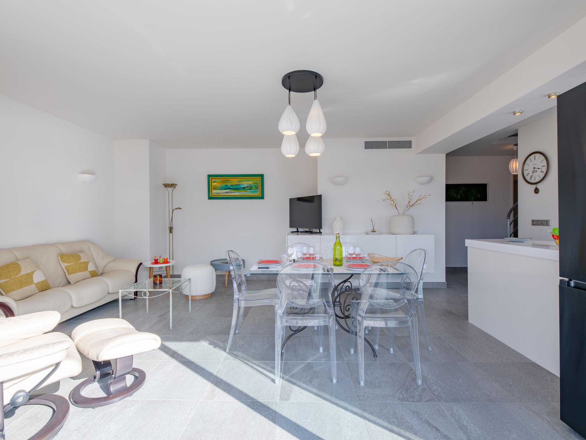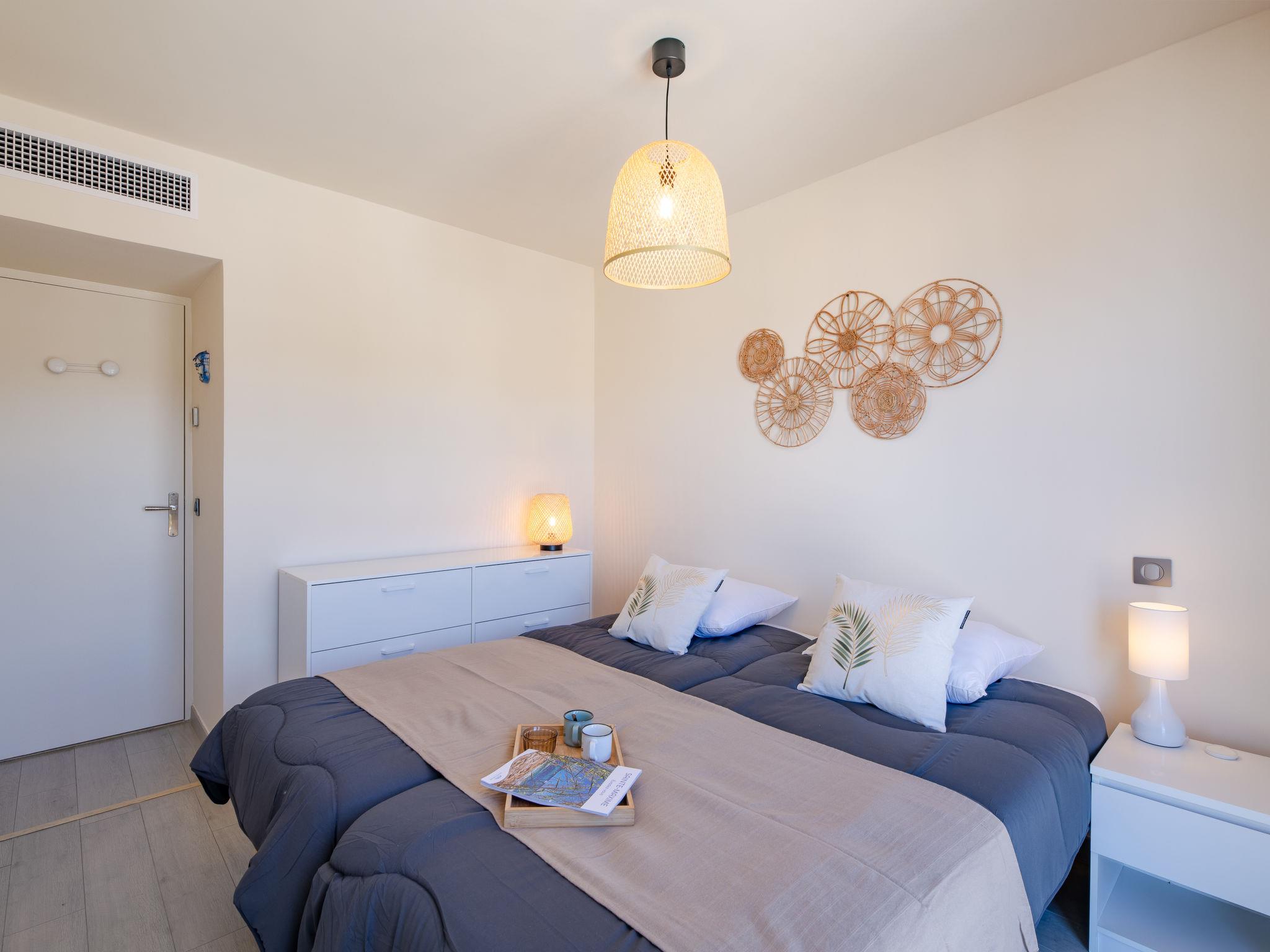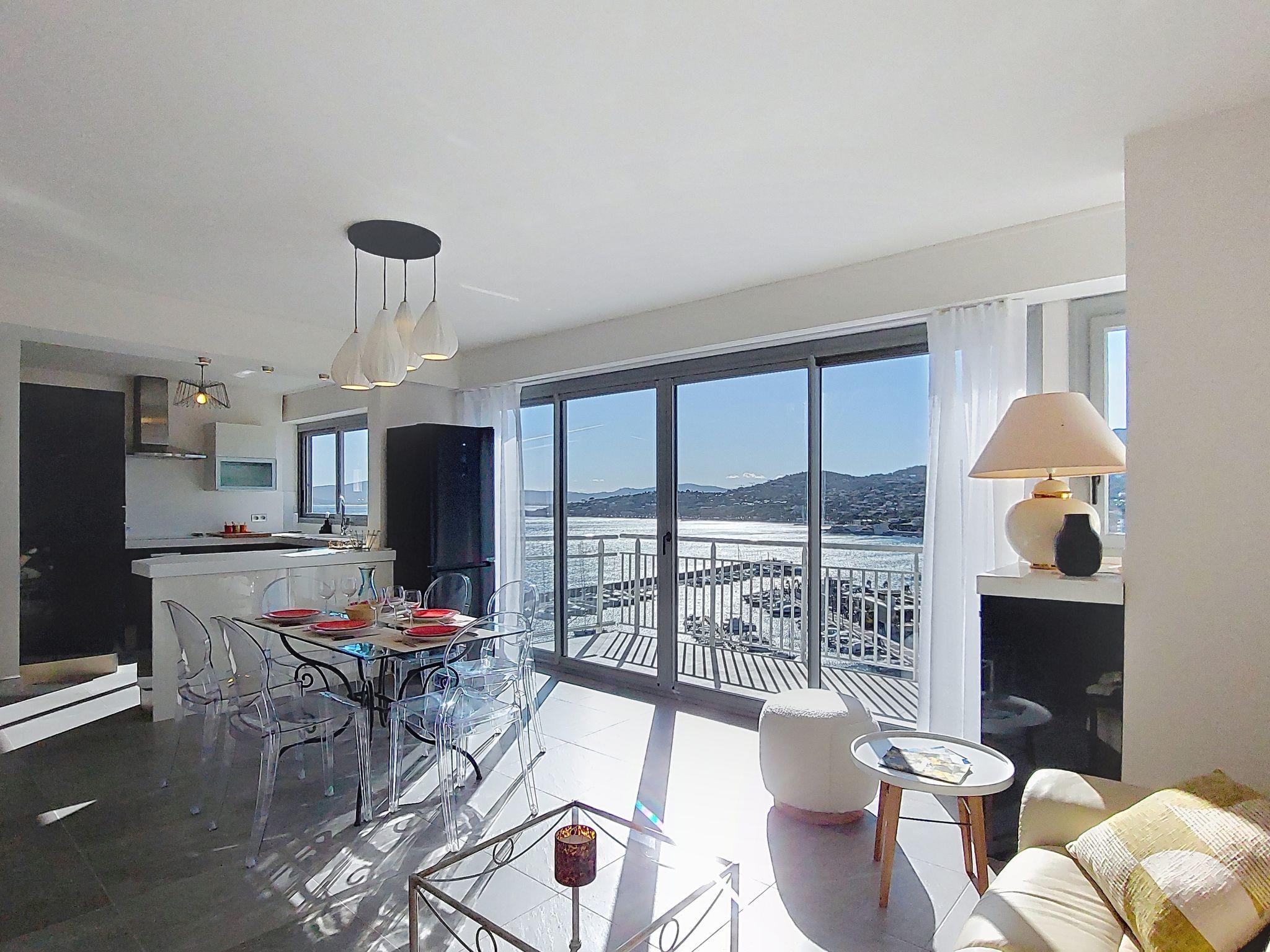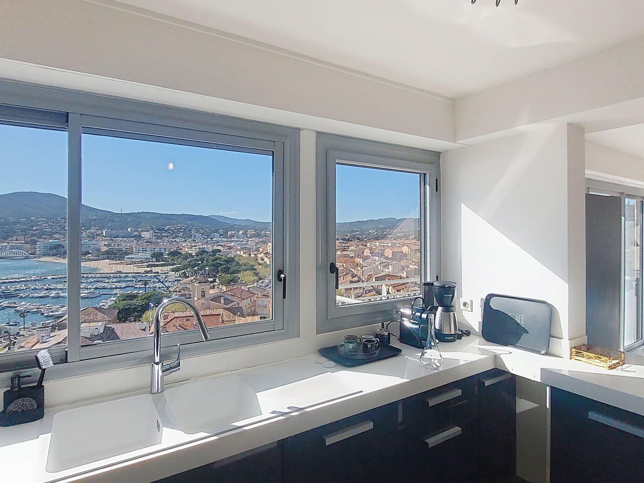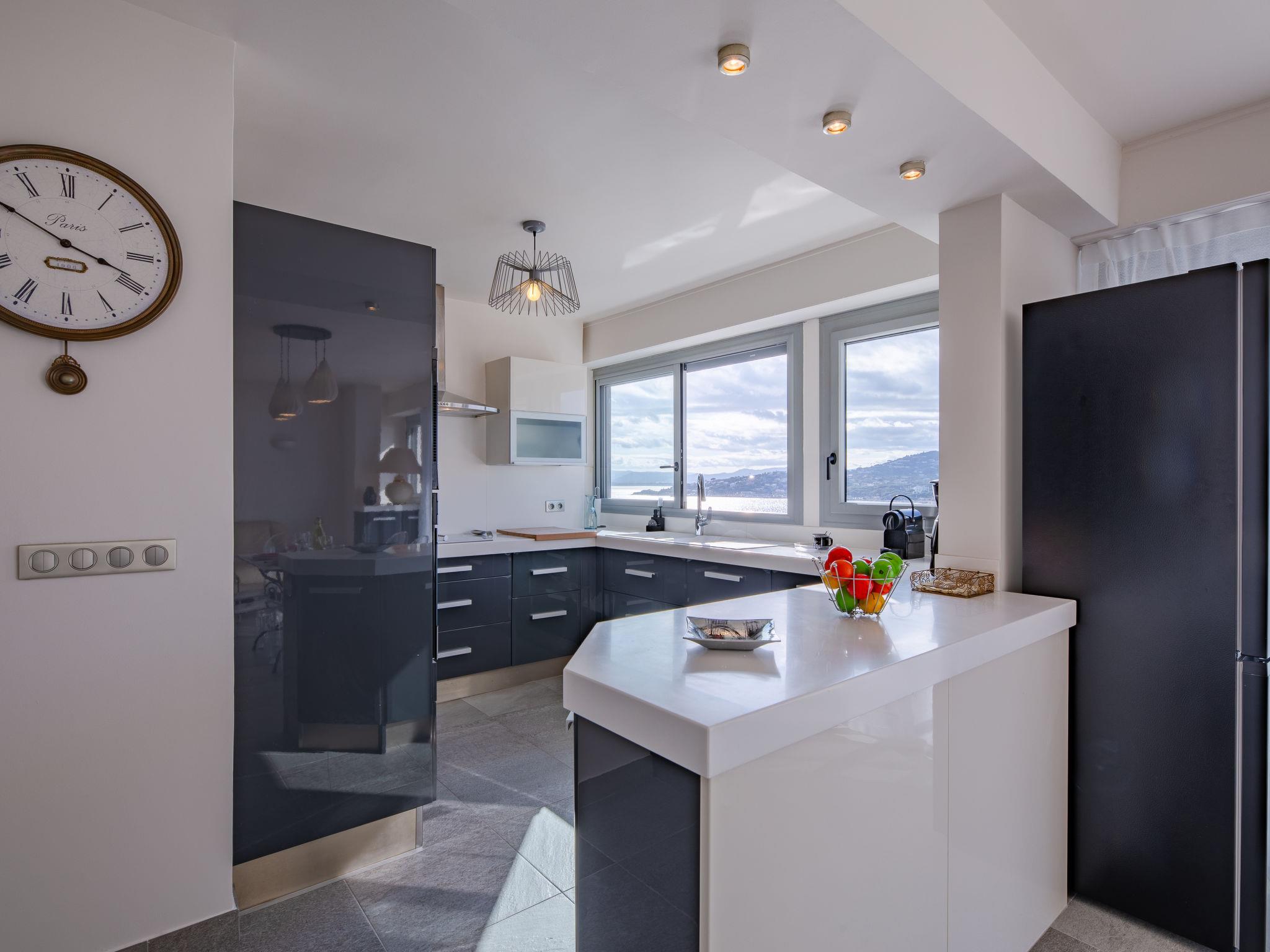 4-room maisonette 86 m2 on 10th floor, north-west facing position. Bright, fully renovated, modern furnishings: entrance hall. Living/dining room, west facing position with TV (flat screen). Exit to the balcony. 1 room, north facing position with 1 french bed (1 x 160 cm, length 200 cm). 1 room, north facing position with 2 beds (90 cm, length 200 cm). Open kitchen (oven, dishwasher, 4 induction hot plates, toaster, kettle, microwave, freezer, electric coffee machine). Shower, sep. WC. Air-conditioning, forced-air heating. Upper floor: (spiral staircase), 1 room, west facing position with 1 fold-away bed (120 cm, length 200 cm), shower. Exit to the terrace. Balcony 9 m2, west facing position, large balcony 47 m2, north-west facing position. Balcony furniture. Marvellous panoramic view of the sea and the town. Facilities: washing machine, iron, hair dryer. Internet (WiFi, free). Parking space n 595 (1 car). Please note: non-smokers only. Smoke alarm. Accommodation not suitable for PRM People with reduced mobility. Offer by a commercial proprietor according to Art. 155, IV, CGI 83115006050HT