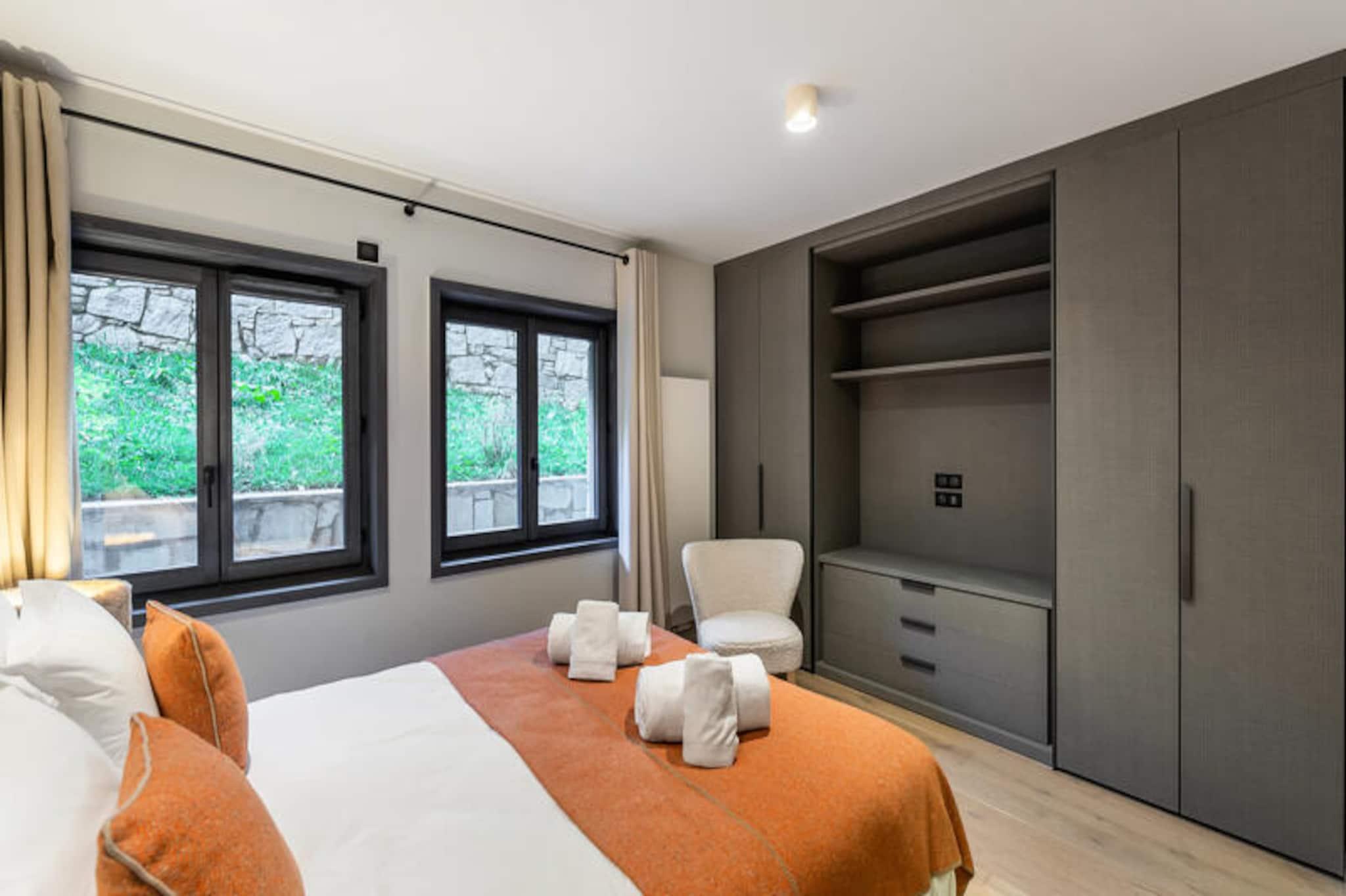 I hjertet av landsbyen Courchevel, i en høyde av 1550 meter, ligger den utsøkte residensen Alpamayor, hvor alpin sjarm møter moderne raffinement. Dette eksklusive prosjektet harmonerer sømløst med sine naturlige omgivelser, og tilbyr fantastisk panoramautsikt over Tarentaise-toppene. Se for deg å våkne opp til den friske fjelluften, gå ut på din private balkong og nyte den fredelige skjønnheten i de franske Alpene. Alpamayor er mer enn bare et sted å bo; det er en invitasjon til å oppleve ro og luksus på sitt beste. Denne splitter nye leiligheten med 4 soverom, som strekker seg over 117 m², er designet for å innkvartere opptil 8 voksne i enestående komfort. Første etasje har et fullt utstyrt kjøkken, en spiseplass perfekt for felles måltider og en koselig stue med peis som åpner ut mot en balkong. Et dobbelt soverom med eget dusjrom og et separat toalett fullfører denne etasjen. Ovenpå finner du tre ekstra soverom, hvert med eget dusjrom, noe som sikrer privatliv og bekvemmelighet for alle gjester. Moderne fasiliteter som Wi-Fi, skiboks og en overbygd parkeringsplass gjør oppholdet ditt enda enklere. Alpamayor ligger bare noen skritt fra lokale butikker og bare noen få minutter fra bakkene, og tilbyr ekte ski-in/ski-out-tilgang, noe som gjør det til et drømmereisemål for vintersportsentusiaster. Etter en dag i bakkene kan du slappe av med de inkluderte luksustjenestene: champagne og en velkomstkurv ved ankomst, mykt sengetøy og sluttrengjøring. Enten du er her for spenningen ved ski eller den fredelige sjarmen i fjellene, tilbyr Alpamayor den perfekte basen for en uforglemmelig alpinferie. Velg Alpamayor for sin raffinerte eleganse, enestående beliggenhet og gjennomtenkte fasiliteter. Det er ikke bare en ferie – det er en livsstil, hvor hver detalj er utformet for å sikre at oppholdet ditt blir like minneverdig som det fantastiske landskapet som omgir deg.