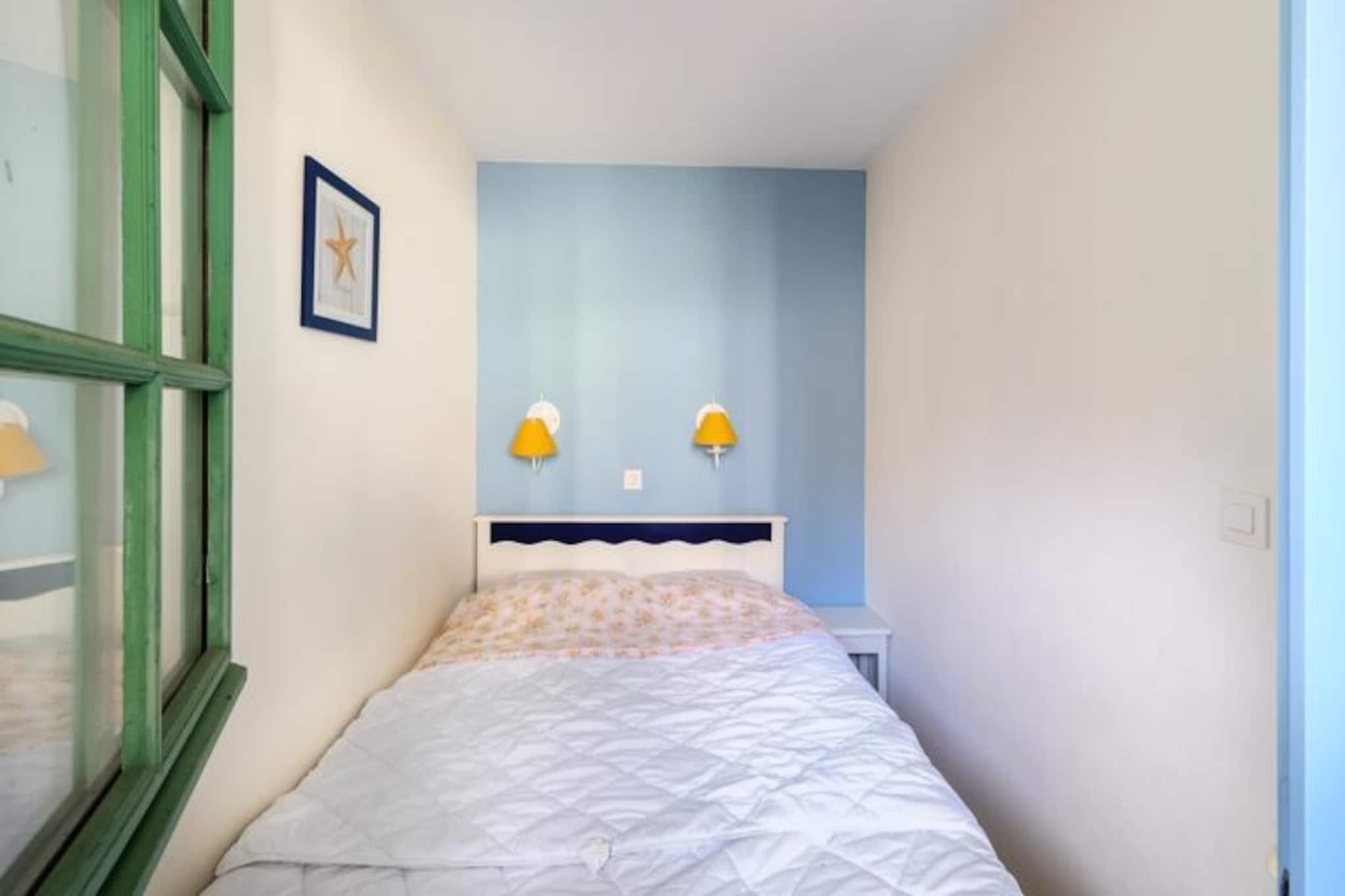 Denne innbydende leiligheten ligger på en 90 hektar stor eiendom omgitt av en furuskog. stue med 3 enkle sovesofaer, spiseplass og soverom med dobbeltseng. Badet er utstyrt med badekar, og det er separat toalett. Leiligheten er kjæledyrvennlig (mot et pristillegg) og tilbyr et babysett på forespørsel. Sengetøy og håndklær er tilgjengelig mot en ekstra avgift, og sluttrengjøring er obligatorisk, enten selvutført eller betales ved innsjekking. Eiendommen ligger kun 9 km fra Les Sables-d'Olonne i Vendée-regionen, og tilbyr enkel tilgang til havet. Talmondaise-bussen kan ta deg til Veillon-stranden, 2,5 km unna, hvor en rekke aktiviteter venter. Residensen har 3 bassenger, inkludert oppvarmede bassenger med sklier og et plaskebasseng. Fasilitetene på stedet inkluderer en pizzeria, bakeri, bar og iskrembar. Gjestene kan også nyte en rekke fritidsaktiviteter som golf, tennis og minigolf mot et pristillegg. Innvendig er leilighetens åpne kjøkken fullt utstyrt, og stuen gir et koselig sted for avslapning. Overnattingsstedet inkluderer avgiftsfri parkering, og boligens svømmebasseng er tilgjengelig fra slutten av april til september. Wi-Fi er tilgjengelig mot et pristillegg. Nyt et avslappende opphold i disse fredelige omgivelser med mange muligheter for utendørsaktiviteter.