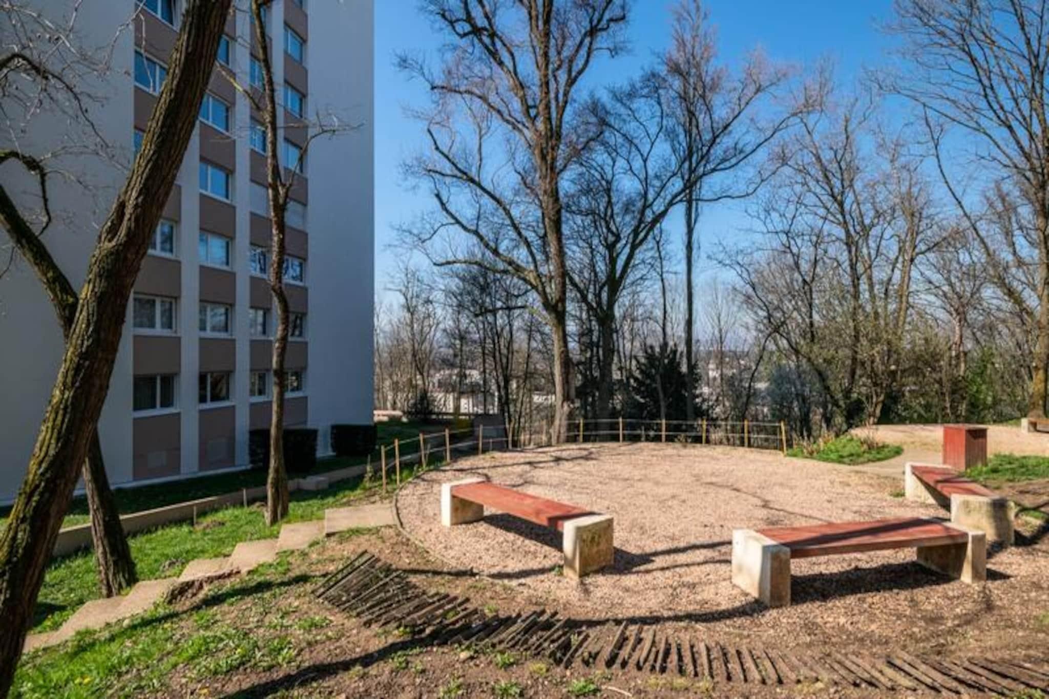 Høyt over de sjarmerende gatene i Tassin-la-Demi-Lune tilbyr denne elegante leiligheten på 73 m² et rolig tilfluktssted med fantastisk panoramautsikt over Lyons vestlige landskap. Perfekt for en familie på fire og en baby, kombinerer dette tilfluktsstedet i niende etasje moderne komfort med tidløs fransk raffinement, og gir en ideell base for både avslapning og utforskning. Fra det øyeblikket du går inn, inviterer den lyse og luftige atmosfæren deg til å slappe av og nyte kunsten å leve fransk. Det gjennomtenkt utformede interiøret har en romslig stue badet i naturlig lys, et åpent kjøkken med spiseplass, fullt utstyrt med moderne hvitevarer, og en koselig balkong hvor du kan nyte morgenkaffen din mens du beundrer utsikten. Leiligheten har to komfortable soveområder: et hovedsoverom med en myk queen-size-seng og et kontor med en sovealkove, også utstyrt med en queen-size-seng. Dusjen i italiensk stil på det elegante badet gir et snev av luksus, mens det separate toalettet sikrer bekvemmelighet for alle gjester. Andre fasiliteter inkluderer et felles oppvarmet svømmebasseng (tilgjengelig fra mai til september), høyhastighets Wi-Fi, satellitt-TV og babyutstyr som barneseng og barnestol, noe som sikrer et problemfritt opphold for familier. Leiligheten ligger i de fredelige og grønne omgivelsene i Tassin-la-Demi-Lune, og tilbyr enkel tilgang til Lyons pulserende sentrum. Spaser gjennom den pittoreske Lacroix-Laval-parken, nyt lokale kulinariske herligheter på kjente restauranter som Le Patio, eller utforsk den historiske sjarmen til Lyon, bare en kort kjøretur eller tur med offentlig transport unna. Med bussholdeplasser og togstasjoner i nærheten er det enkelt å komme seg rundt, noe som gjør denne beliggenheten perfekt for å oppdage det beste i regionen. Enten du er her for en kulturell ferie eller en avslappende familieferie, lover denne eiendommen et uforglemmelig opphold. La Lyons skjønnhet og komforten i denne utsøkte leiligheten skape minner du vil verne om for alltid.