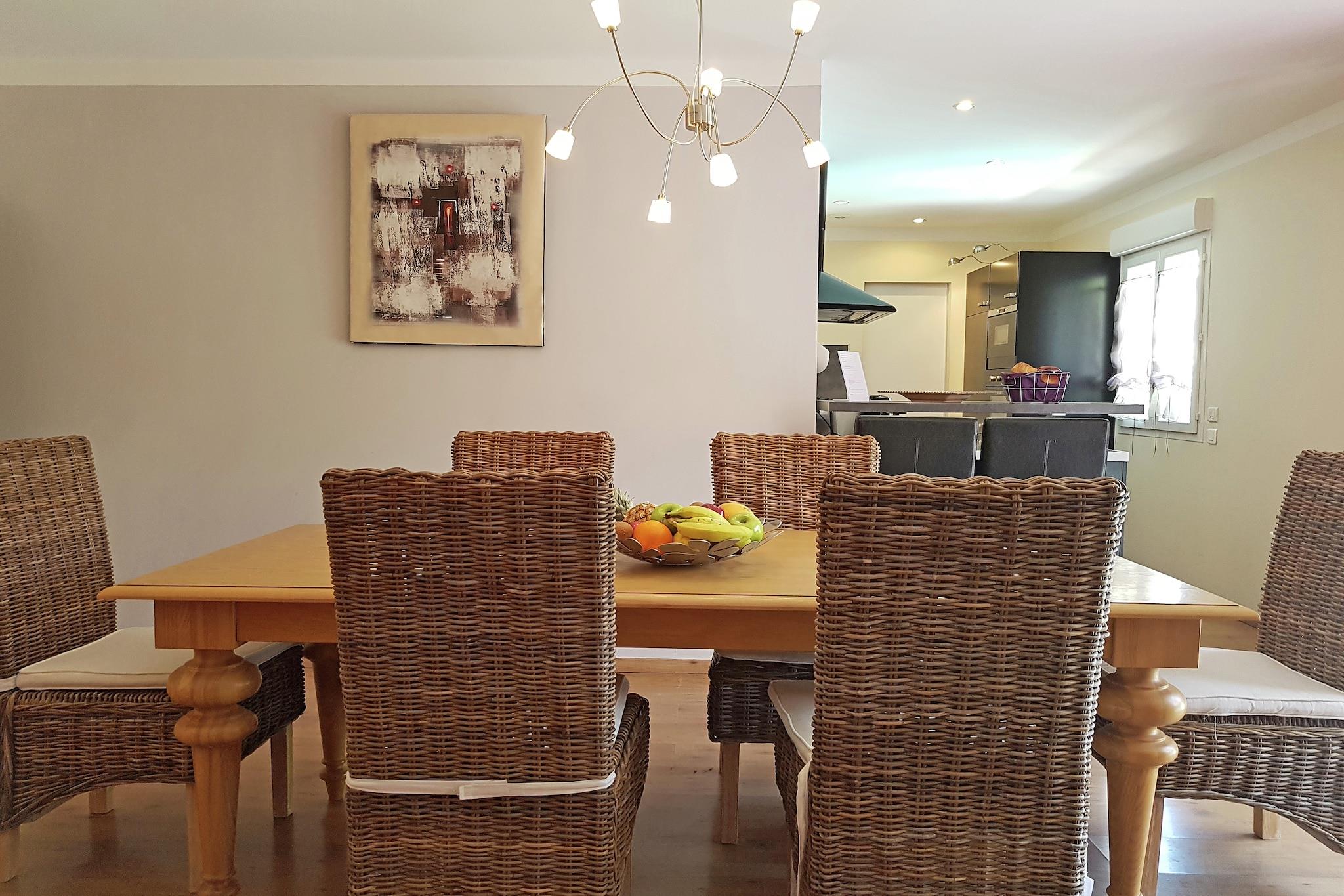 Første etasje: (åpent kjøkken(komfyr(keramisk), stekovn, mikrobølgeovn, oppvaskmaskin, kjøleskap med fryser, klimaanlegg), Stue/spisestue(TV(kabel), klimaanlegg), soveværelse(dobbeltseng), soveværelse(dobbeltseng), Sovrum med badrum(dobbeltseng, dusj, håndvask), bad(badekar, 2x håndvask), WC, vaskemaskin) terrasse, hagemøbler, solsenge, grill, 2x parkering, svømmebasseng(privat, 6 x 3 m., opened from Apr upto and including Oct)
