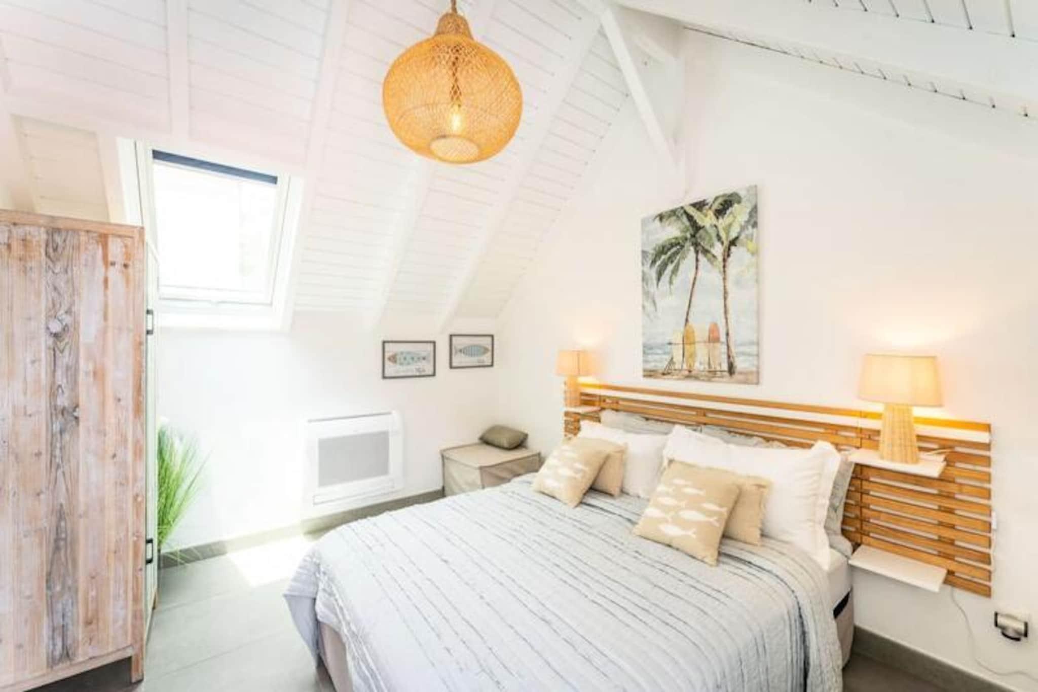 På den rolige øya Les Saintes inviterer Villa Opale deg til å oppleve et stykke karibisk paradis. Denne nybygde villaen ligger på Route de l'Anse Figuier i Terre-de-Haut, badet i mild bris og omgitt av frodig tropisk skjønnhet. Enten du søker ro eller eventyr, tilbyr dette elegante tilfluktsstedet den perfekte balansen for en uforglemmelig ferie. Bare en kort spasertur fra lokale butikker og restauranter, gir det enkel tilgang til øyas pulserende kultur og kulinariske herligheter. Villa Opale er designet for å innkvartere opptil seks gjester, med plass til to ekstra barn, og har tre klimaanlegg-soverom utsmykket med smakfull innredning. Første etasje har et privat soverom med eget bad og dusjkabinett, mens to sjarmerende soverom oppe deler et moderne bad og separat toalett. Det fullt utstyrte kjøkkenet åpner ut mot en romslig terrasse, hvor en utendørs spiseplass venter under den karibiske himmelen. Bak terrassen setter et glitrende svømmebasseng, solsenger og en grill scenen for avslappede ettermiddager og livlige kvelder. Utforsk øya i ditt eget tempo med muligheter for bil-, scooter- eller elsykkelutleie. Oppdag ikoniske landemerker som Fort Napoleon, den uberørte Pompierre-stranden og det majestetiske Sukkertoppen. Vannentusiaster kan dykke ned i eventyr på den nærliggende dykkerklubben eller leie kajakker bare 300 meter unna. For turgåere belønner en 45-minutters fottur til Chameaus topp deg med fantastisk utsikt over solnedgangen over øya. \n\nVilla Opale kombinerer komfort, eleganse og bekvemmelighet, og tilbyr klimaanlegg, høyhastighetsinternett og sengetøy i hotellkvalitet. Med en dedikert concierge-tjeneste klar til å hjelpe, er oppholdet ditt garantert sømløst og minneverdig. Enten du slapper av ved bassenget eller utforsker underverkene i Terre-de-Haut, er denne villaen din inngangsport til en fortryllende karibisk flukt.
