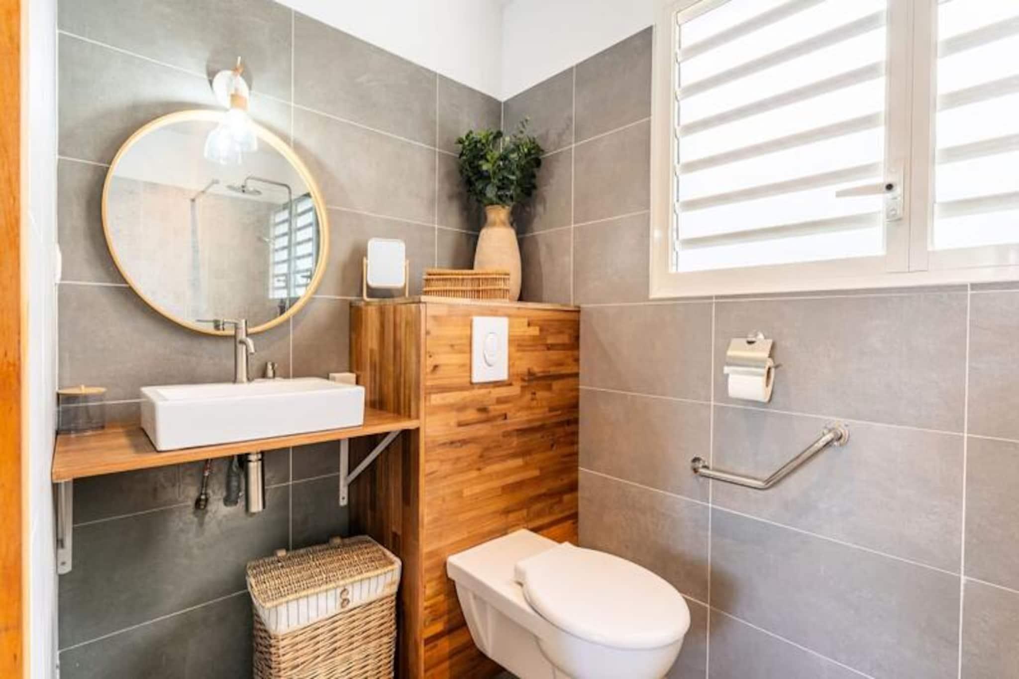 På den pittoreske øya Les Saintes, der turkisblått vann møter frodige landskap, tilbyr Villa Bohème en fredelig tilflukt fylt med moderne luksus. Bare en kort spasertur fra den rolige Anse Figuier-stranden, har denne nybygde villaen en perfekt beliggenhet for de som søker både avslapning og eventyr. Den fredelige, luftige beliggenheten sikrer et avslappende tilfluktssted samtidig som den er nær lokale butikker og restauranter, noe som gjør den til en ideell base for å utforske øyas sjarm. Villaen er designet for å innkvartere opptil seks gjester, med mulighet for to ekstra barn, og har tre vakkert dekorerte soverom med klimaanlegg, hvert med eget bad og dusjkabinett. Ett soverom er gjennomtenkt designet for gjester med redusert mobilitet, noe som sikrer inkludering og komfort for alle. Hjertet i villaen er den romslige stuen, komplett med et fullt utstyrt kjøkken og et koselig flatskjerm-TV-hjørne, perfekt for å slappe av etter en dag med utforsking. Det store spisebordet, med plass til opptil 14 personer, er perfekt for delte måltider, spesielt for grupper som leier nabovillaer. Gå ut for å oppdage to innbydende loungeområder: ett på terrassen og et annet under pergolaen. Det private bassenget, omgitt av solsenger, inviterer deg til å sole deg i den karibiske solen. Med privat parkering og en ladestasjon for elbil er bekvemmeligheten lett tilgjengelig. Utforsk Terre-de-Haut i ditt eget tempo med bil, scooter eller elsykkel. Besøk det historiske Fort Napoleon, slapp av på Pompierre-stranden, eller beundre det ikoniske Sukkertoppen. For de eventyrlystne lover den nærliggende dykkerklubben og kajakkutleien uforglemmelige vannopplevelser. Fotturentusiaster vil elske den 45 minutter lange turen til toppen av Chameau for en fantastisk solnedgang. Avslutt dagen med å spise utendørs, med utsikt over en av verdens vakreste bukter. Villa Bohème er mer enn et opphold; det er en invitasjon til å skape verdifulle minner under Guadeloupesolen.