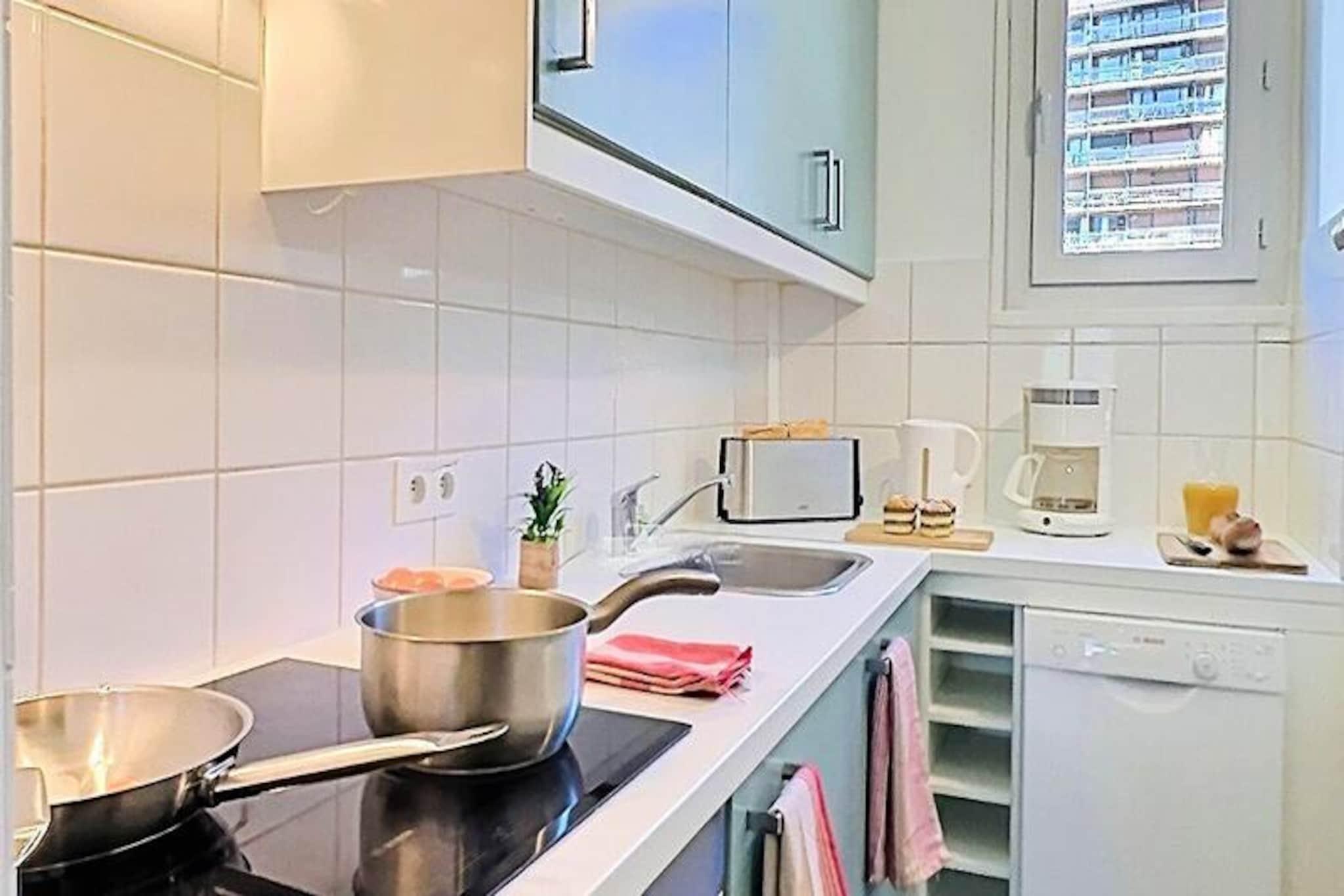 Høyt over det glitrende vannet i Tignes Le Lac, tilbyr denne romslige alpeleiligheten et perfekt tilfluktssted for familier og grupper på opptil åtte gjester. Den ligger i 4. etasje på Résidence du Lac, og har en misunnelsesverdig beliggenhet nær bakkene, skiheisene og det pulserende hjertet av feriestedet. Fra din østvendte balkong kan du nyte den fantastiske utsikten over innsjøen, de omkringliggende toppene og de uberørte skiløypene som lover eventyr i hver eneste krok. Enten du er her for vintersport eller sommerturer, er dette din inngangsport til det beste av de franske Alpene. Leiligheten på 70 m² er gjennomtenkt designet for komfort og bekvemmelighet. Stuen har en koselig sovesofa, mens de to soverommene tilbyr fleksible soveplasser, inkludert en dobbeltseng og to sett med køyesenger. Det fullt utstyrte kjøkkenet inviterer deg til å tilberede solide måltider etter en dag med utforsking, med moderne apparater som keramiske kokeplater, stekeovn, mikrobølgeovn, oppvaskmaskin og kjøleskap. Slapp av i den innbydende stuen med en TV, eller gå ut på balkongen for å puste inn den friske alpeluften. Et bad med badekar og separat toalett sikrer praktisk plassering for større grupper. Beliggenheten er uslåelig, med avgangssteder for skitimer, Tignespace sportskompleks og Lagon Aquatic Center bare en kort spasertur unna. Nærliggende butikker og restauranter tilbyr alt du trenger, fra lokale delikatesser til afterski-underholdning. Om sommeren forvandles området til et paradis for turgåere og naturentusiaster, med stier som slynger seg gjennom fantastiske alpine landskap. Med sin førsteklasses beliggenhet, moderne fasiliteter og uforglemmelige utsikt, er denne leiligheten ditt hjem borte fra hjemmet i hjertet av Tignes. Enten du jakter puddersnøbakker eller rolige fjellstier, er hvert øyeblikk her et skritt nærmere din drømmeferie i alpinområdet.