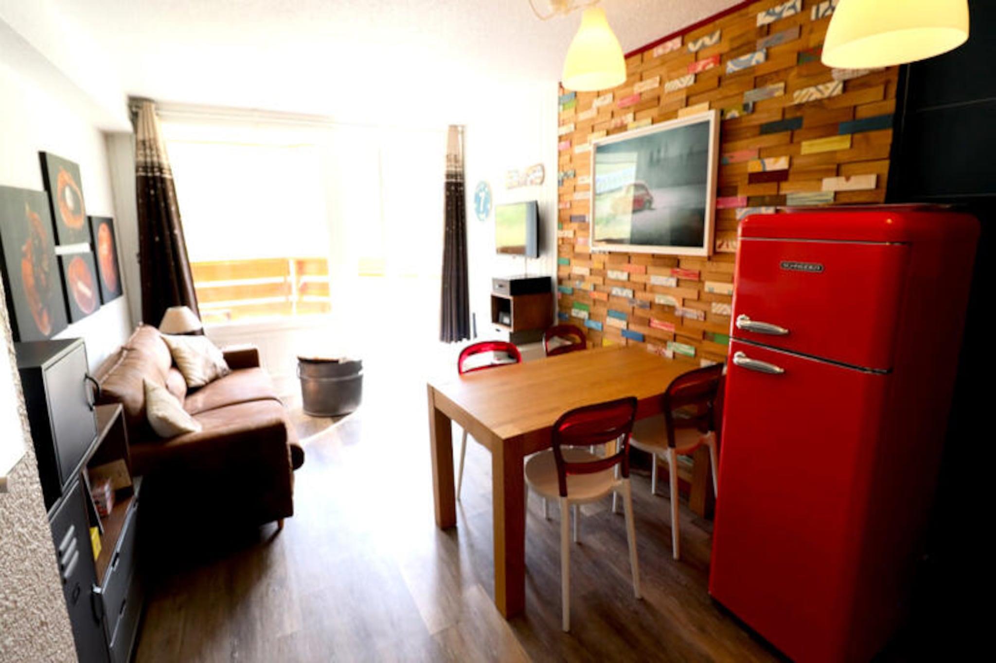 I de rolige omgivelsene i Tignes Val Claret tilbyr denne sjarmerende studiohytta et rolig tilfluktssted for de som søker den perfekte alpinferien. Beliggende rett ved bakkene, kan den skilte med enestående bekvemmeligheter for vintersportsentusiaster, med ESF-barnehagen og skiskolens møtesteder bare noen skritt unna. Fra den sørvendte balkongen kan du sole deg i varmen fra solen mens du nyter den fantastiske utsikten over de snødekte toppene som definerer dette reisemålet i verdensklasse. Enten du er her for å stå på ski, gå tur eller bare slappe av, er denne boligen den ideelle basen for dine eventyr. \n\nDet 24 m² store studioet er designet med komfort og praktisk bruk i tankene, og har plass til opptil fire gjester. Inngangspartiet har to sammenleggbare enkeltsenger, mens stuen har en koselig sovesofa og TV for avslappende kvelder. Det velutstyrte kjøkkenet har stekeovn/mikrobølgeovn, oppvaskmaskin, kokeplate og kjøleskap, noe som gjør det enkelt å tilberede måltider etter en dag i bakken. Et moderne bad med toalett og den ekstra bekvemmeligheten av en vaskemaskin sikrer et problemfritt opphold. For utstyret ditt er et skiskap praktisk plassert i første etasje av boligen. \n\nVed foten av boligen finner du nødvendige butikker som bakeri, sportsbutikk og minimarked, noe som gjør det enkelt å fylle opp med forsyninger eller ta en rask matbit. Om vinteren kan du nyte fordelaktige priser på heiskort til Tignes og Val d'Isère, mens sommeren bringer My Tignes-kortet, som gir tilgang til en mengde aktiviteter på feriestedet. Med parkeringsmuligheter tilgjengelig og tilleggstjenester som Wi-Fi og rengjøring, er hver minste detalj vurdert for å forbedre oppholdet ditt. \n\nEnten du er tiltrukket av spenningen ved ski, skjønnheten i alpinløypene eller sjarmen til Tignes Val Claret, inviterer denne studiohytta deg til å skape uforglemmelige minner i hjertet av de franske Alpene.