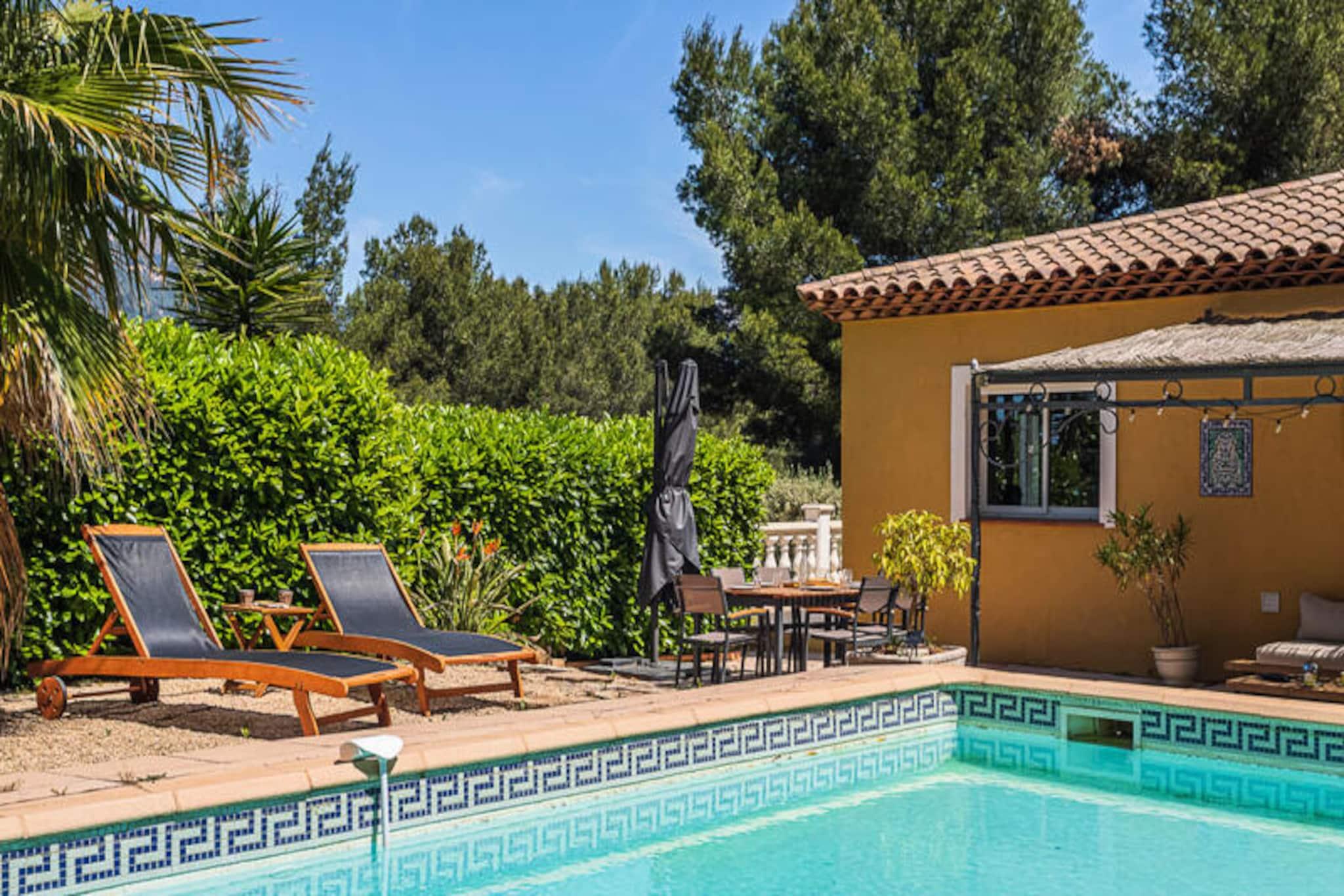 Midt i Toulons fredelige landskap tilbyr denne utsøkte villaen et rolig tilfluktssted for opptil 10 gjester. Omgitt av frodige skoger og bølgende åser, inviterer eiendommen deg til å slappe av i fredelige omgivelser, samtidig som du er i nærheten av Toulons pulserende middelhavssjarm. Enten du søker avslapning eller eventyr, gir denne villaen det perfekte bakteppet for uforglemmelige øyeblikk med familie eller venner. Villaen strekker seg over imponerende 183 m² og kan skilte med en lys og luftig stue, komplett med en koselig peis og elegante møbler. Det fullt utstyrte kjøkkenet er et kulinarisk paradis, med moderne apparater som grill, kaffetrakter og ismaskin, som sikrer at hvert måltid blir en fryd. Med fem komfortable soverom, inkludert tre med 160 x 220 cm senger og to med 140 x 220 cm senger, samt fire bad, tilbyr villaen god plass og privatliv for alle. Ekstra fasiliteter som klimaanlegg, Wi-Fi, vaskemaskin og satellitt-TV sikrer et sømløst og komfortabelt opphold. Gå ut for å oppdage en 1200 m² stor privat oase designet for avslapning og underholdning. Stup ned i det store svømmebassenget, sol deg på solsengene, eller nyt et måltid utendørs under den skyggefulle pergolaen. Den frodige hagen, petanquebanen og den møblerte terrassen skaper en idyllisk setting for sosialisering eller bare å nyte den naturlige skjønnheten. Privat parkering øker bekvemmeligheten, mens villaens nærhet til Toulons strender, havn og kjente restauranter som