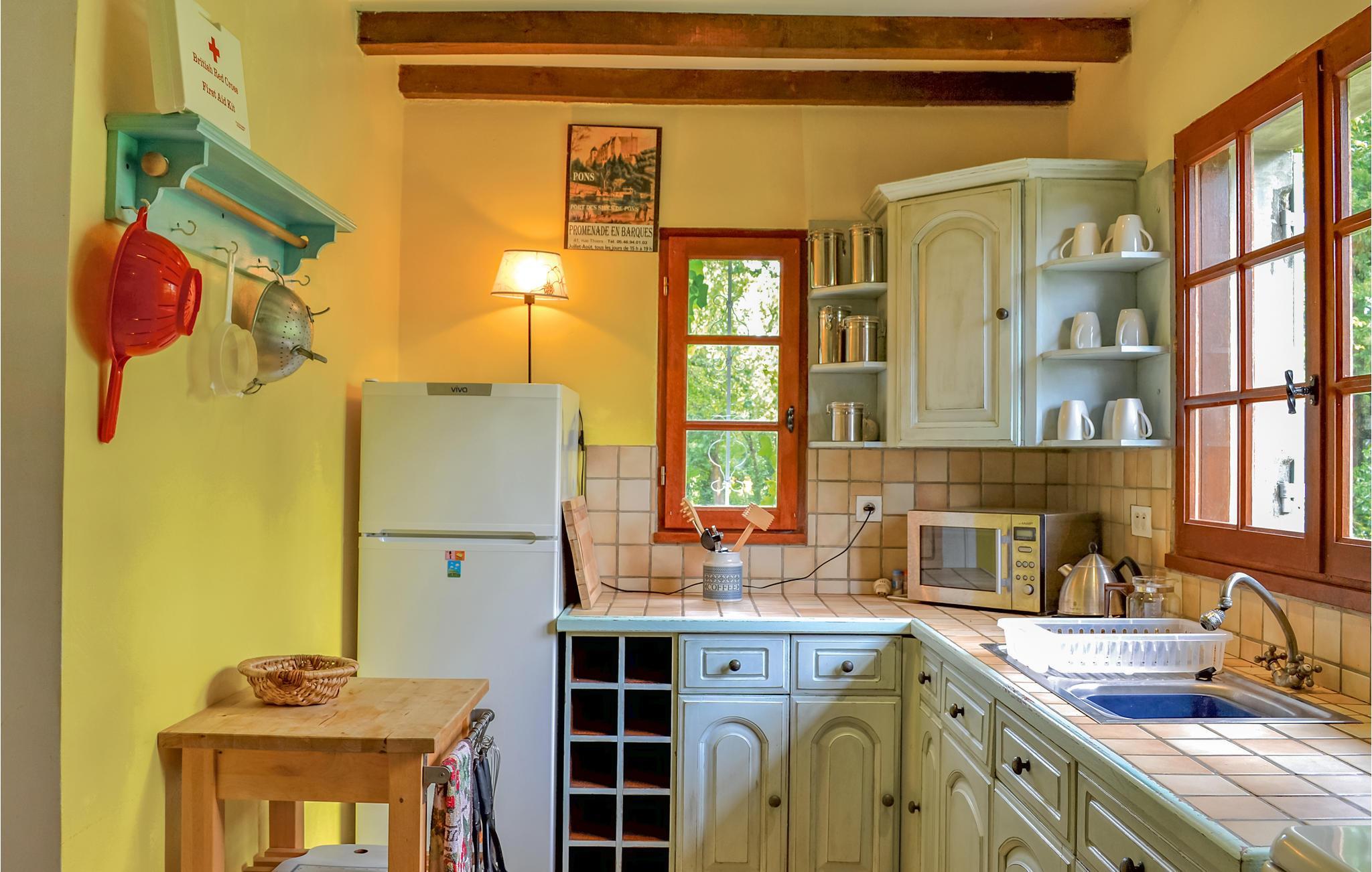 Dette vakkert dekorerte feriehuset er typisk for regionen i stil. Innvendig har huset en imponerende peis og synlige eikebjelker. Det ligger i en romslig, helt lukket hage og tilbyr beboerne gleden av en overbygd terrasse foran huset. Fra terrassen kan du se ut over den vakre hagen og bassenget, som er tilgjengelig fra mai til oktober. Noen av soverommene har eget bad. Du bor i en landsby, men de nærmeste populære og livlige destinasjonene ligger bare en kort kjøretur unna.