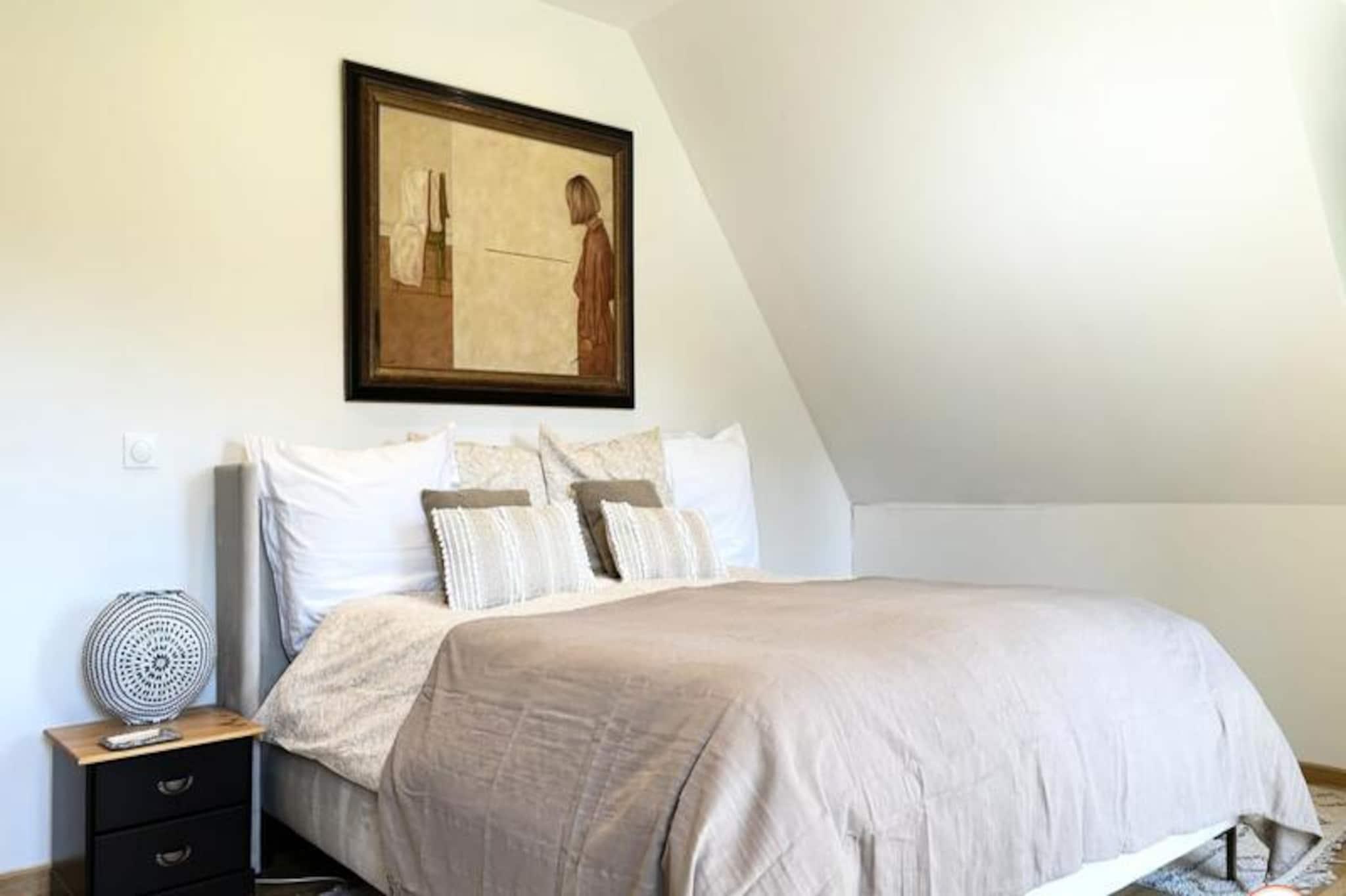 I det rolige landskapet i Tourgéville, bare noen øyeblikk fra Deauvilles gylne strender, tilbyr La Villa Normande et rolig tilfluktssted hvor tidløs normannisk arkitektur møter moderne luksus. Omgitt av en vidstrakt privat hage på 5000 m², inviterer denne elegante villaen deg til å slappe av blant frodig grøntområder og naturens beroligende lyder. Enten du nipper til morgenkaffen på terrassen eller koser deg med en grillfest utendørs under kveldshimmelen, føles hvert øyeblikk her som en mild flukt fra hverdagen. Innvendig strekker villaen seg over 180 m² over to etasjer, med omtenksomhet designet for å romme opptil seks gjester. Første etasje har et fullt utstyrt kjøkken med avanserte hvitevarer, en koselig stue med en L-formet sofa og dekorativ peis, og en spiseplass perfekt for felles måltider. Ovenpå venter tre vakkert innredede soverom, inkludert en hovedsuite med en queen-size-seng, balkong og smart-TV, et andre soverom med queen-size-seng og et sjarmerende barnerom med to enkeltsenger. To luksuriøse bad, ett med badekar og det andre med både badekar og dusj, sikrer komfort for alle. Moderne bekvemmeligheter som Wi-Fi, vaskerom og privat parkering for tre biler forbedrer oppholdet ditt. La Villa Normandes beliggenhet er idyllisk, plassert på høyden av Tourgéville og bare en fem minutters kjøretur fra Deauvilles pulserende sentrum, kasino og berømte strand. Utforsk lokale markeder, nyt god mat eller foryng deg på Algotherm Thalassotherapy Center. For naturelskere tilbyr det omkringliggende landskapet pittoreske stier og fantastisk utsikt. Enten du søker en fredelig familieferie eller en romantisk flukt, lover La Villa Normande et uforglemmelig opphold, og blander sjarmen fra Normandie med komforten av et moderne liv.
