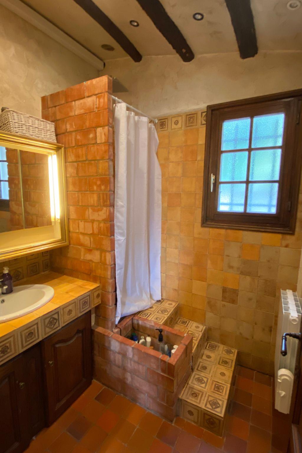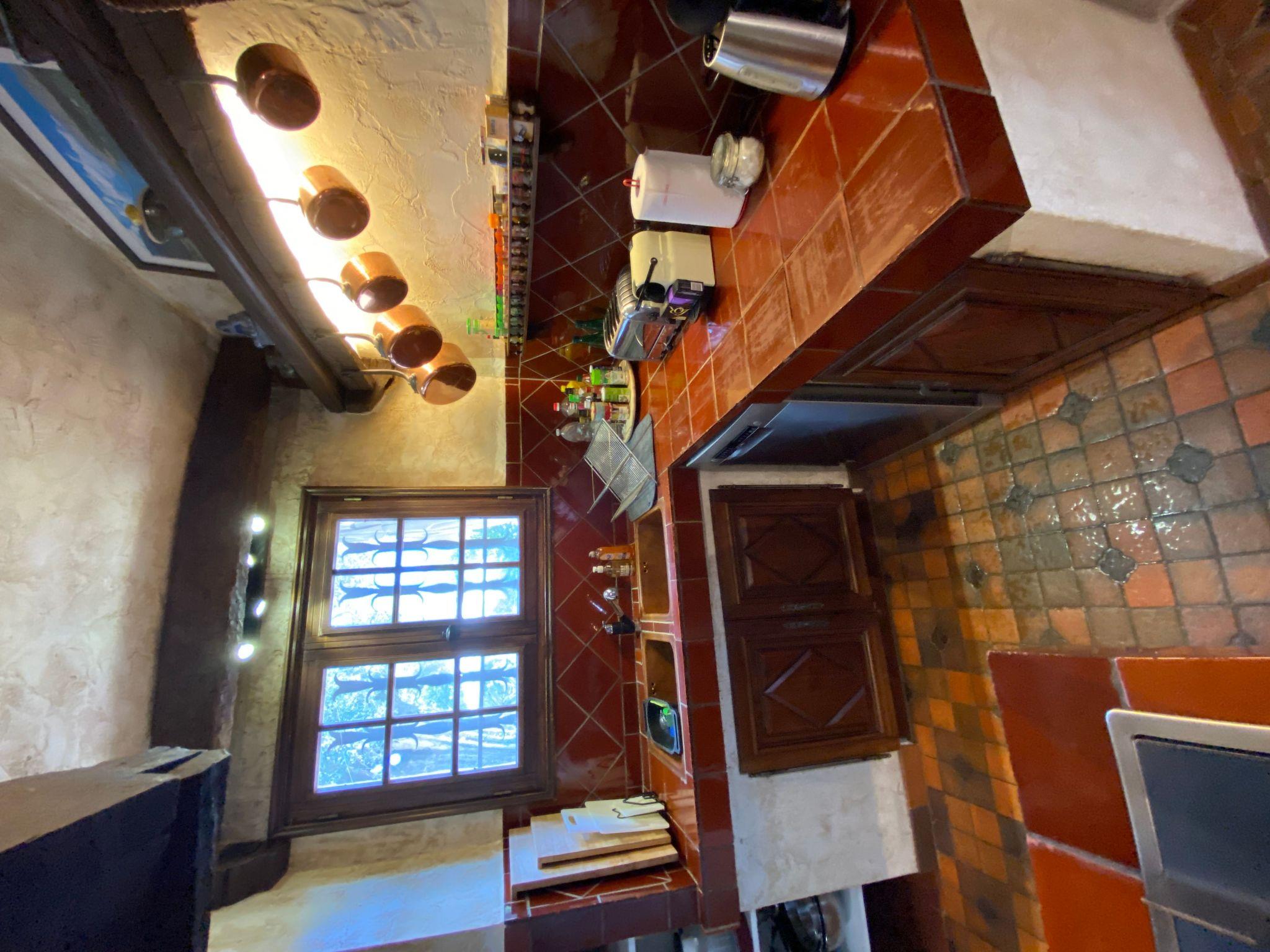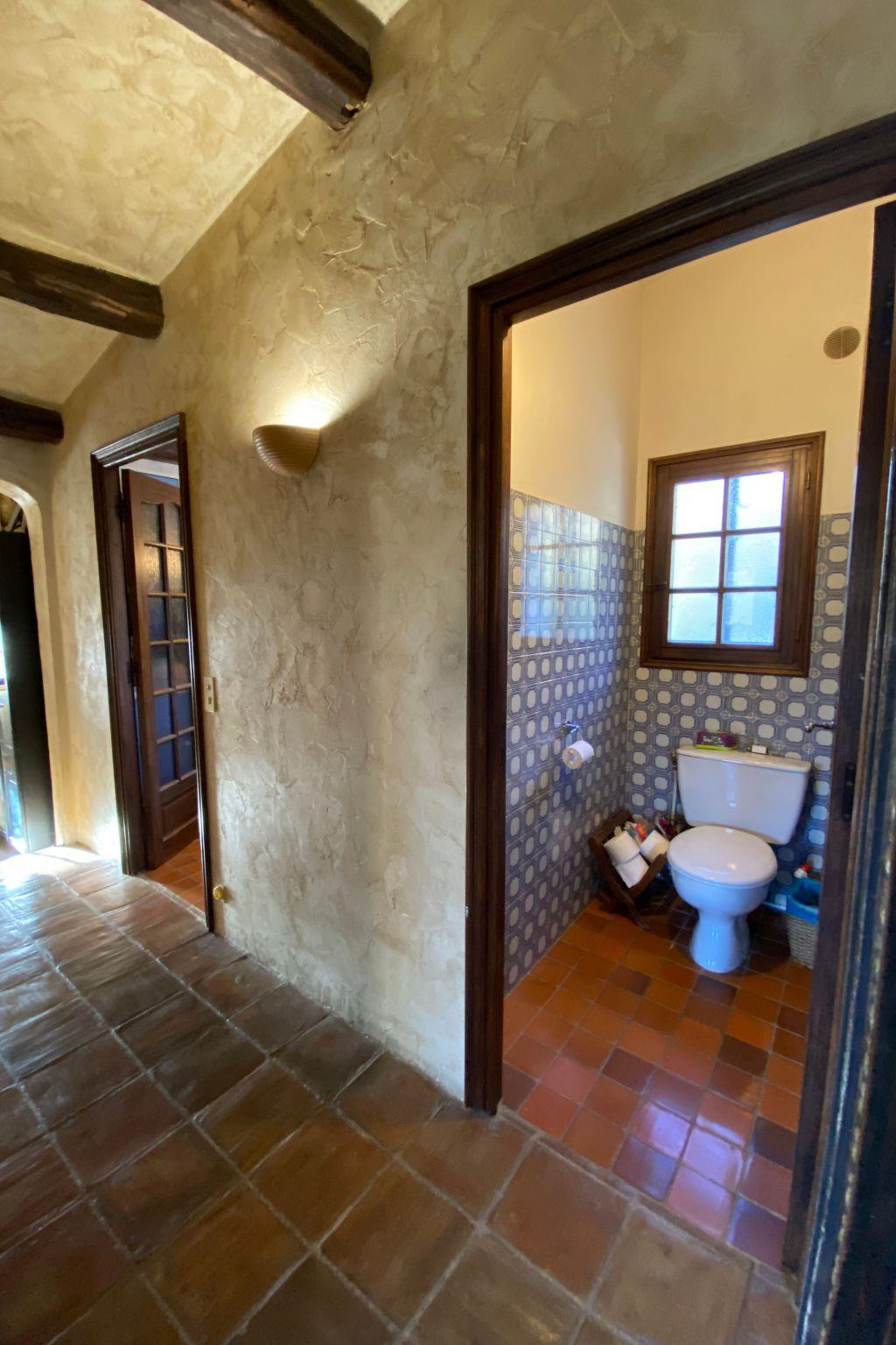 The kitchen is very Provençal in design and fully equipped with an American style fridge/freezer (ice & water dispenser), oven, gas hob, dishwasher, microwave, coffee machine with capsules, kettle, double sink, washing machine, tumble dryer, breakfast table and an AC unit.