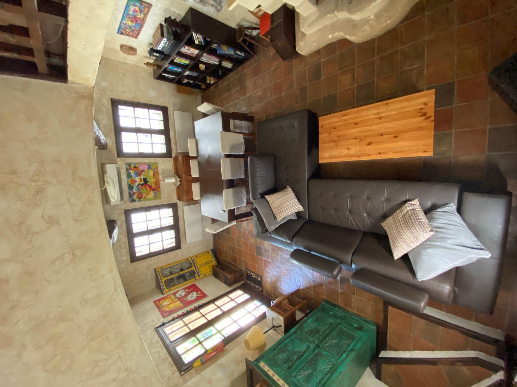 Both main kitchen and living room have French doors leading onto a joint, covered terrace where you’ll find an outdoor dining table with a ceiling fan and access to the private garden, swimming pool and summer kitchen.