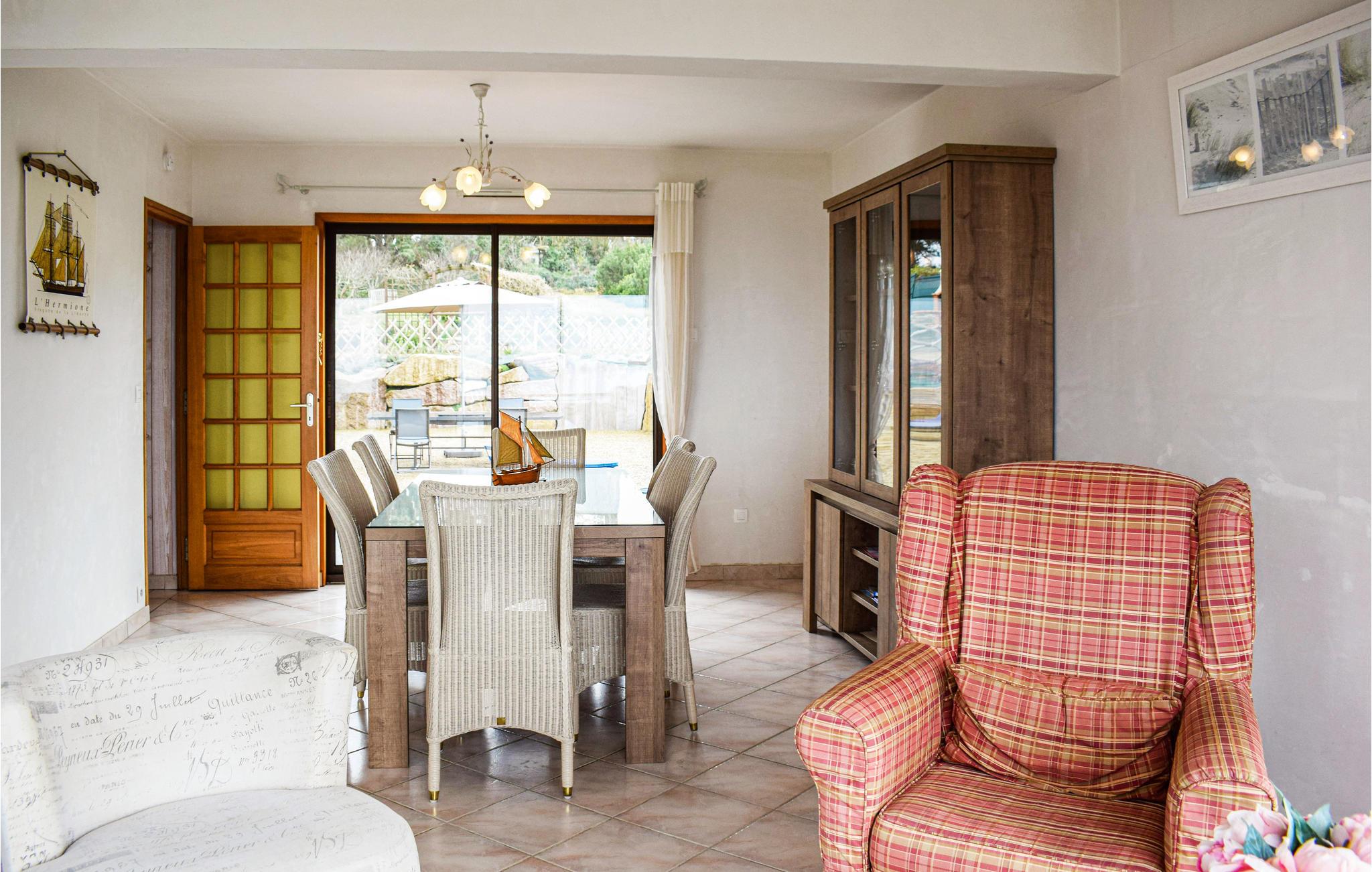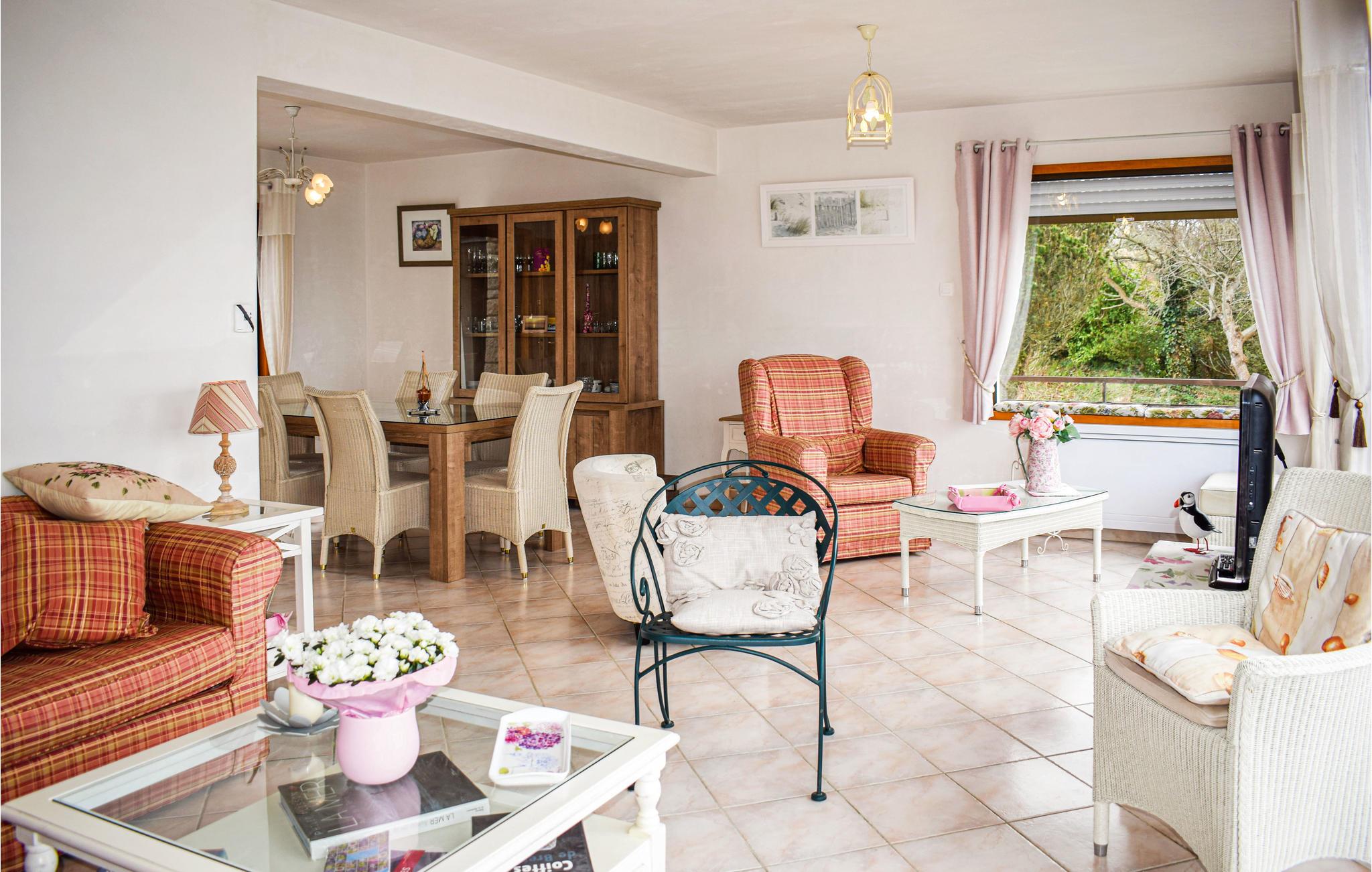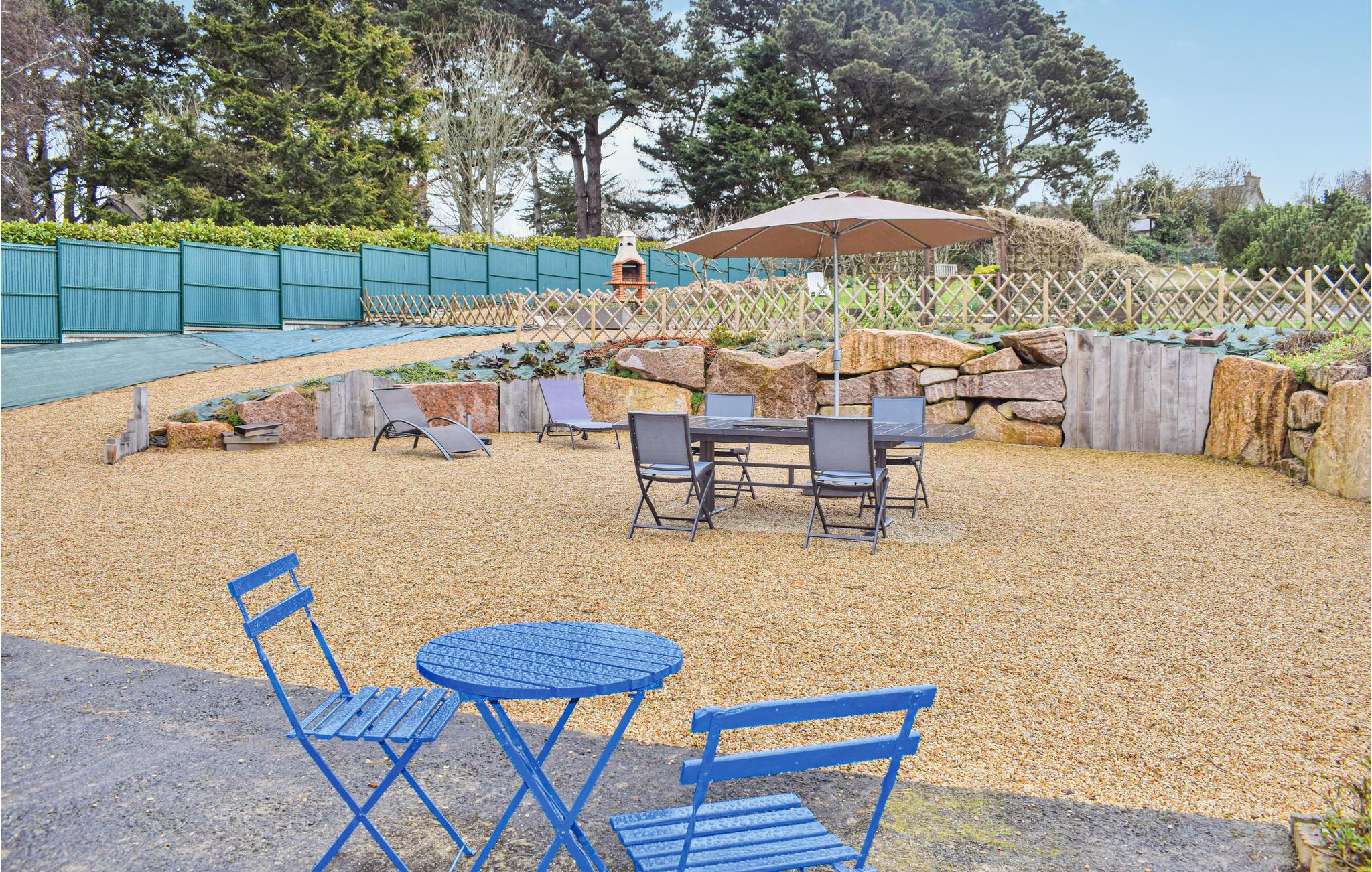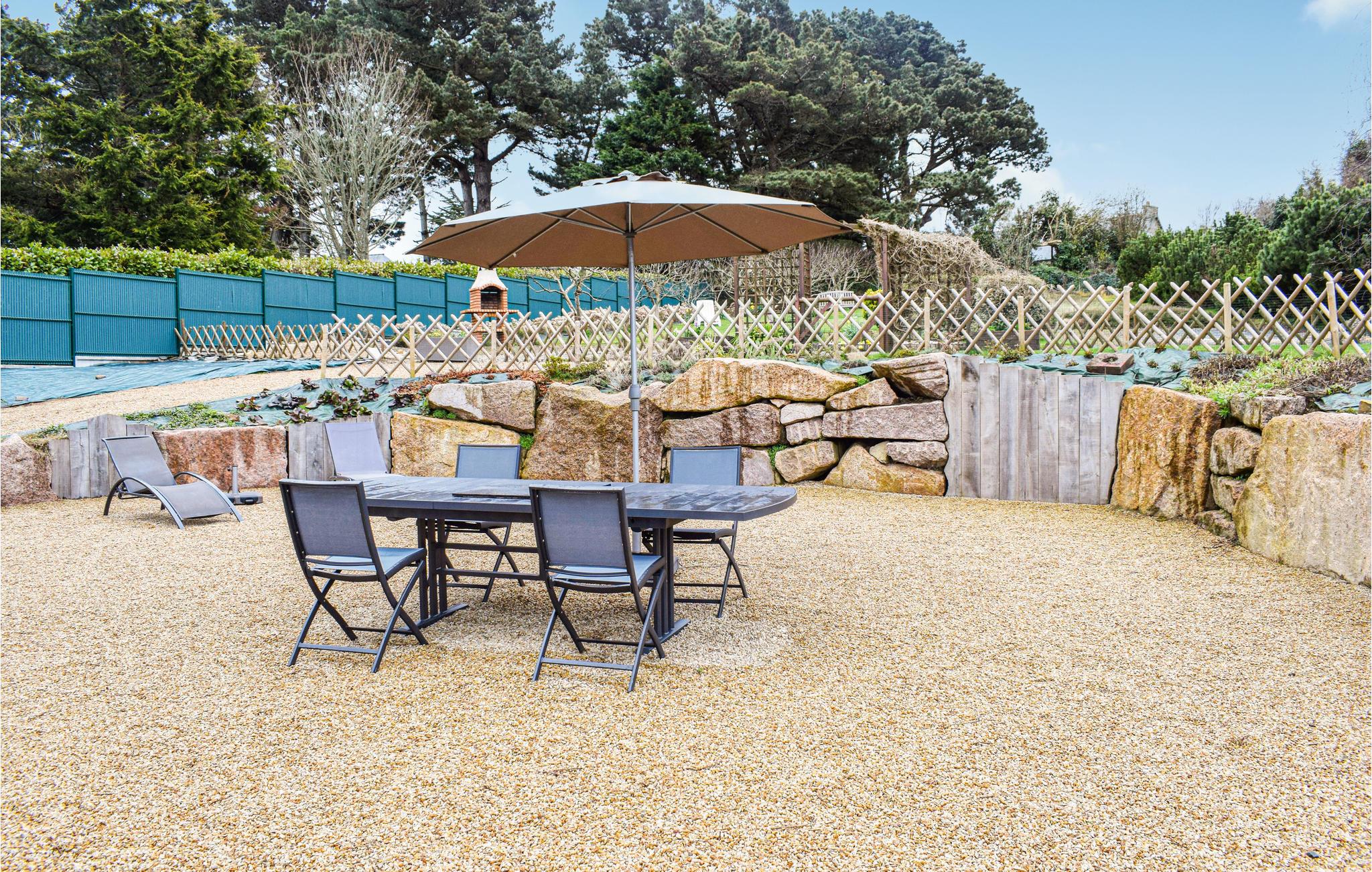 Dette vakre huset i åsene i Trélevern på Côte de Granit Rose ønsker deg velkommen til en herlig ferie i den forfriskende og beroligende sjøluften. De store vinduene gir deg en fantastisk utsikt over Sept-Iles (De syv øyer). Når du våkner, har du en fantastisk utsikt over havet utenfor den vakre Côte de Granit Rose og øyene Île Tomée og Île aux Oiseaux. Dette komfortable huset har også en velstelt hage som sørger for at du som gjest skal trives og føle deg vel. En rik og variert kulturarv venter på deg i denne regionen.