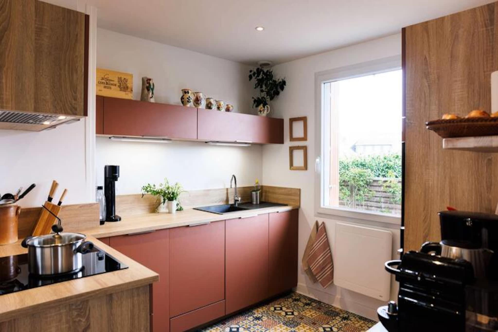 På den fantastiske kysten av Bretagne tilbyr dette romslige hjemmet ved sjøen en harmonisk blanding av moderne komfort og tidløs sjarm. Tenk deg å våkne opp til lyden av bølger og duften av salt sjøluft, med turstien GR 34 og uberørte strender bare noen få minutter unna. Enten du søker eventyr eller ro, er dette hjemmet den perfekte basen for din kystferie. Det lyse og luftige interiøret, kombinert med raffinert innredning, skaper en innbydende atmosfære for avslapning og kontakt. Gå ut på terrassen for å nyte den frodige hagen, ideell for utendørs servering eller å slappe av under parasollen med en god bok. Den private parkeringsplassen sikrer bekvemmelighet, mens det nærliggende lokale markedet gir et snev av autentisk bretonsk preg til oppholdet ditt. Innvendig inkluderer den 100 m² store planløsningen en innbydende entré, en romslig stue som åpner ut mot terrassen og et fullt utstyrt kjøkken designet for kulinarisk kreativitet. To komfortable soverom med myke dobbeltsenger lover avslappende netter, mens badet har en moderne dusj og separat toalett for ekstra bekvemmelighet. Familier vil sette pris på de babyvennlige fasilitetene, inkludert en barneseng, barnestol og matsett. Ovenpå finner du et eget område for fjernarbeid som lar deg holde kontakten, mens vaskerommet er perfekt for oppbevaring av utstyr til fiske, fotturer eller andre fritidsaktiviteter. Hver detalj er nøye utvalgt, fra induksjonskoketoppen og Nespresso-maskinen til hagemøblene og grillen. Beliggenheten er en drøm for friluftsentusiaster, med vannsport, strandaktiviteter og den berømte GR 34-stien rett utenfor døren. Spaser til det nærliggende supermarkedet eller utforsk det pulserende markedet med lokale råvarer som arrangeres hver mandag morgen. Enten du nyter fersk sjømat, utforsker kyststier eller bare nyter skjønnheten i Bretagne, inviterer dette hjemmet deg til å skape uforglemmelige minner. Med sengetøy inkludert, sluttrengjøring inkludert og et røykfritt, kjæledyrfritt miljø, lover oppholdet ditt å bli like uanstrengt som det er hyggelig.