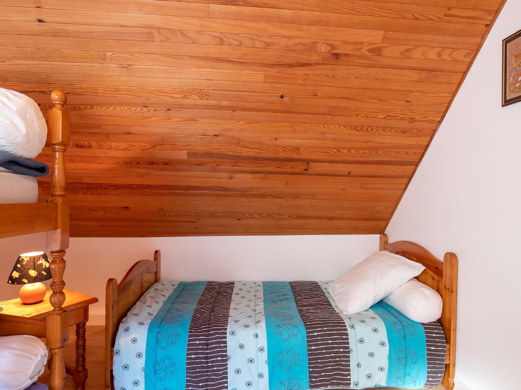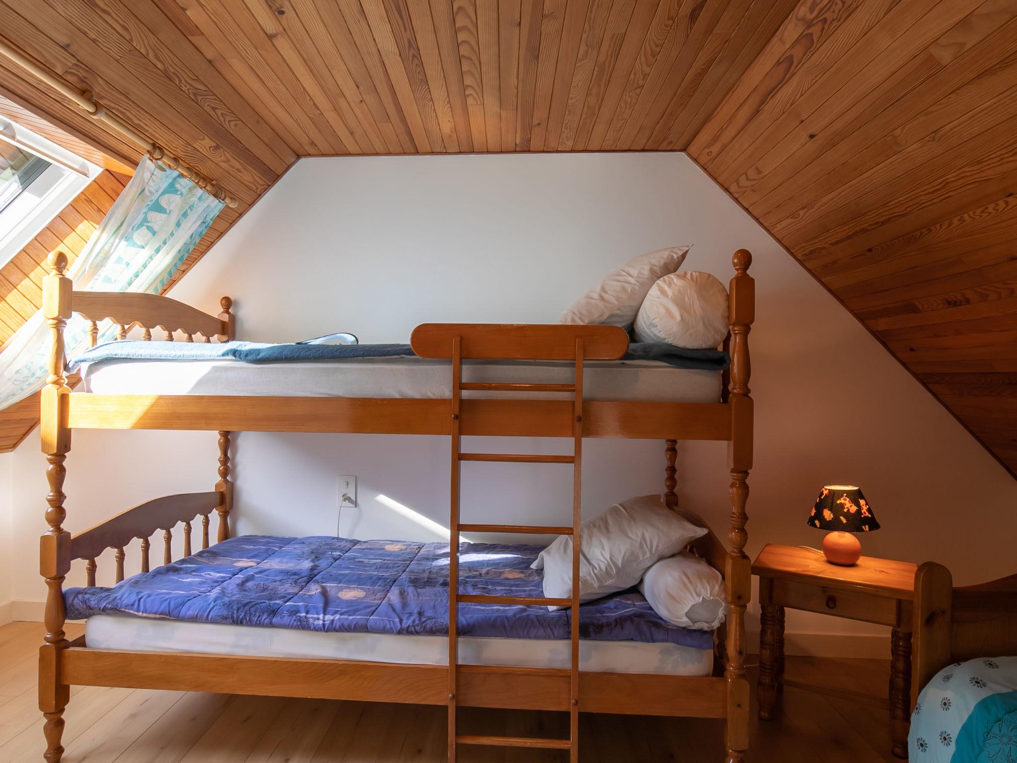 3-room house 60 m2 on 2 levels. Comfortable furnishings: living/dining room with dining table, satellite TV, flat screen, CD-player, hi-fi system and DVD. Kitchenette (4 hot plates, oven, dishwasher, freezer, electric coffee machine). Bathroom, bidet, sep. WC. Electric heating. Upper floor: 1 room with sloping ceilings with 1 french bed (1 x 140 cm, length 190 cm). 1 room with sloping ceilings with 1 bed (90 cm, length 190 cm), 1 x 2 bunk beds (90 cm, length 190 cm), separate WC. Terrace. Terrace furniture. Facilities: washing machine, iron, children's high chair, baby cot, hair dryer. Internet (WiFi, free). Parking (fenced).