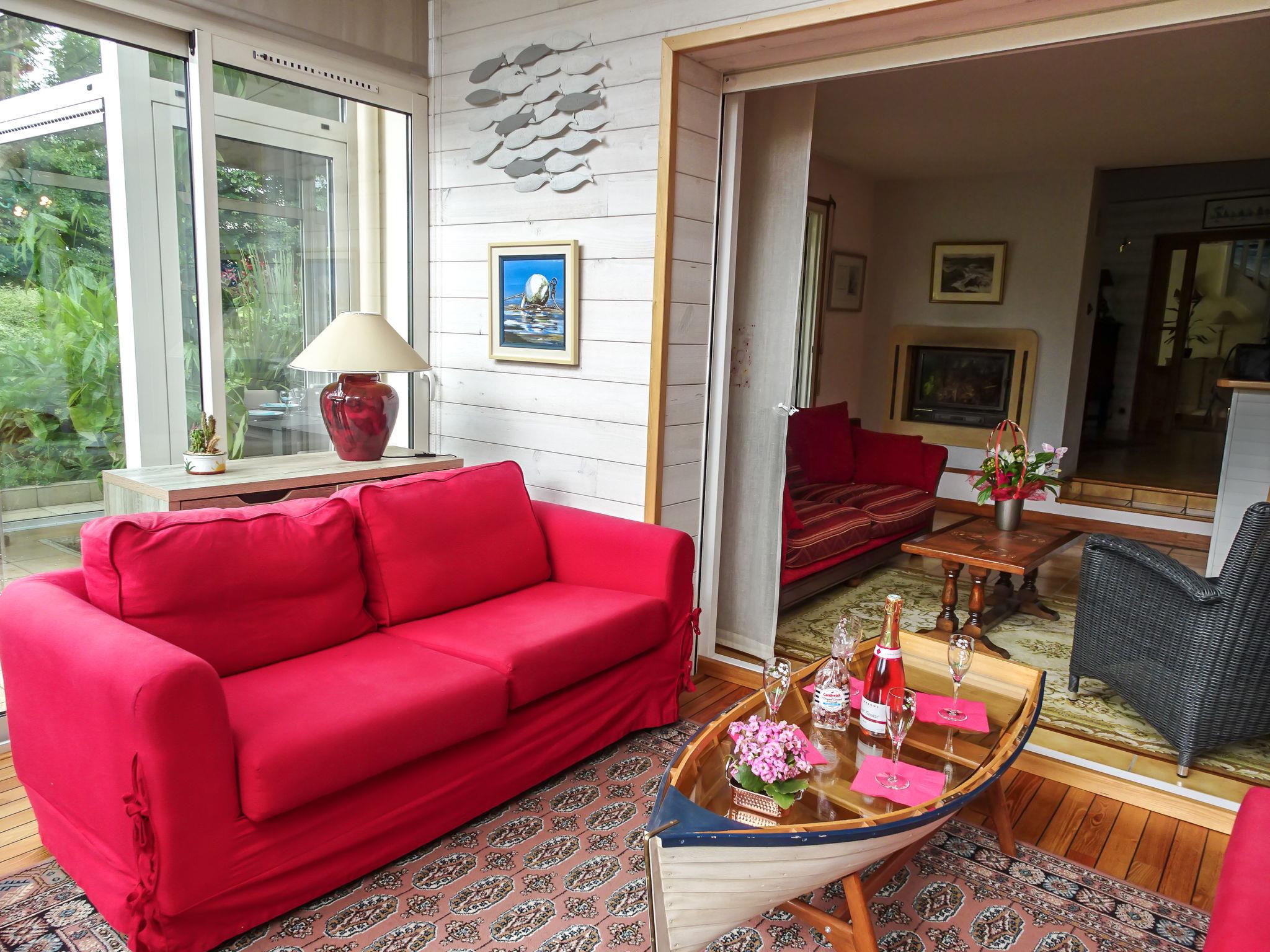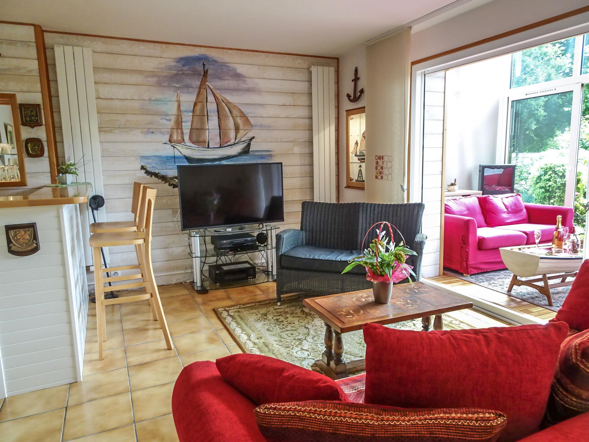 Nevez 7 km from Tregunc: Modern, comfortable villa "Ty Patrick", 2 storeys. 1 km from the centre of Nevez, in a quiet position, 800 m from the sea, 800 m from the beach. Private: beautiful, well-kept garden with lawn and trees. Barbecue, single garage. Shop 2 km, restaurant 500 m, bus stop 7 km, sandy beach "Tahiti" 800 m, outdoor swimming pool 15 km. Tennis 3 km, riding stable 5 km. Nearby attractions: Pont-Aven, Ville des Peintres 10 km, Concarneau, Ville Close 16 km, Pointe de Trévignon 5.4 km, Kerasco?t 2 km, Quimper 42 km, Lorient 50 km. Hiking paths: GR34, sentier des douaniers 800 m. Please note: car recommended.