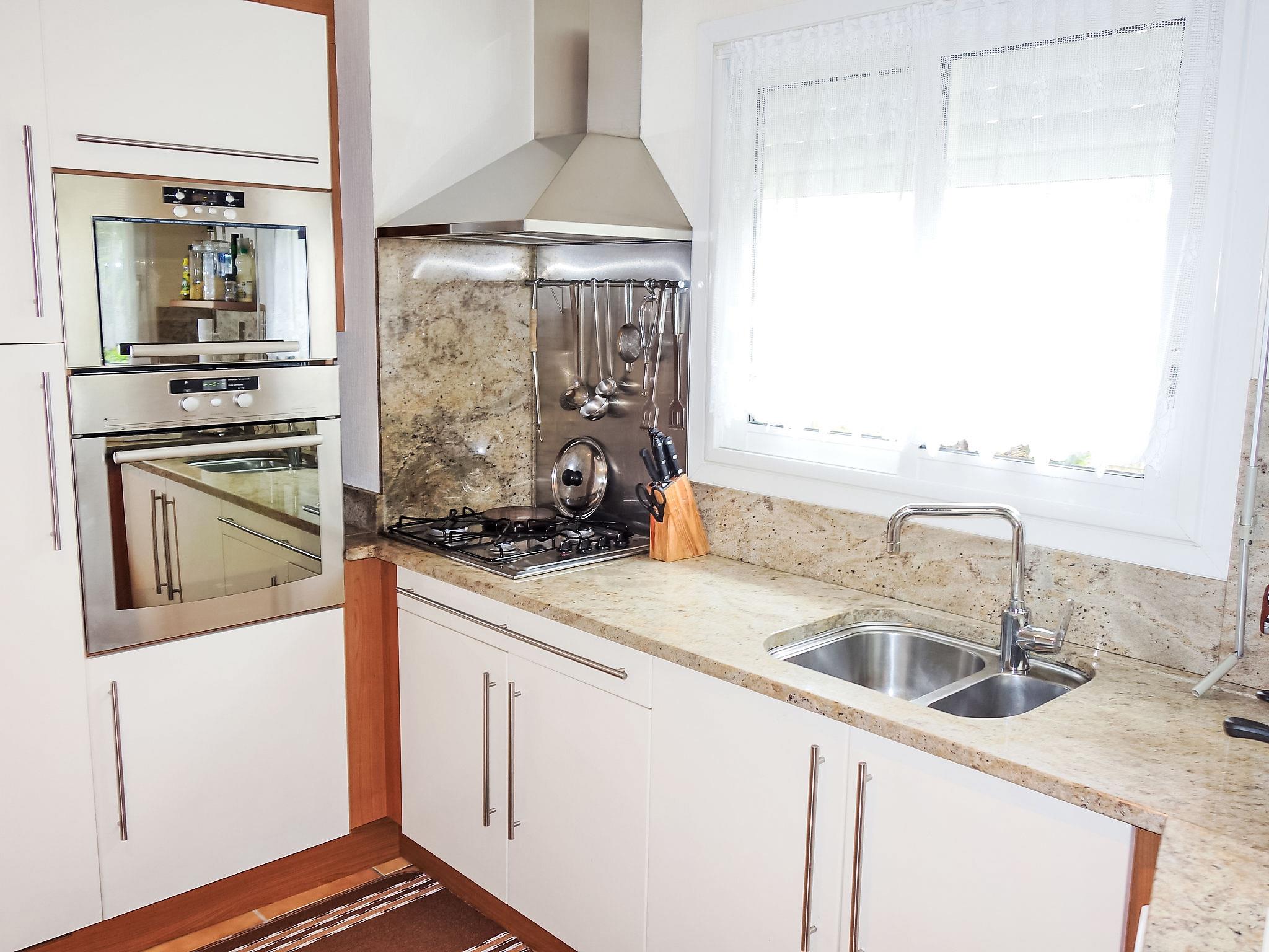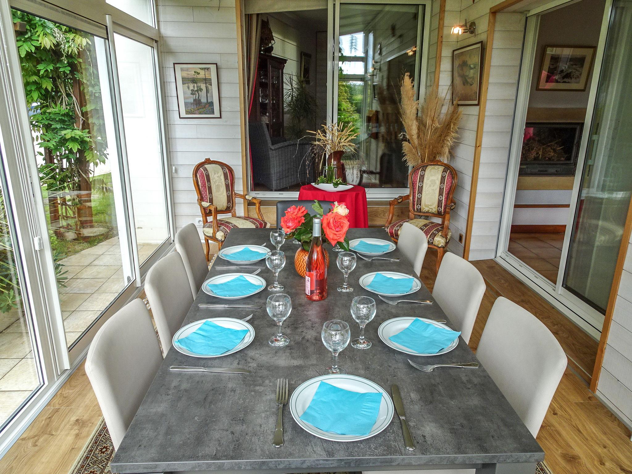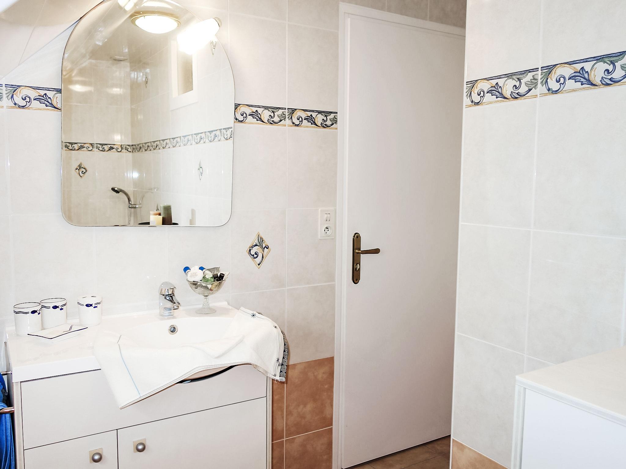 5-room house 180 m2 on 2 levels. Comfortable and modern furnishings: large living/dining room with Scandinavian wood stove, dining table, bar and TV (flat screen), radio, CD-player and DVD. Exit to the veranda. 1 room with 1 french bed (160 cm), shower. Kitchen (4 hot plates, oven, dishwasher, microwave, freezer, electric coffee machine) with dining table. Sep. WC. Upper floor: 1 room with 1 french bed (1 x 140 cm, length 190 cm), hand-basin and shower. 1 room with 1 french bed. 1 room with 2 beds (90 cm). Bathroom, sep. WC. Terrace 25 m2. Terrace furniture. Facilities: washing machine, dryer, iron, baby cot for up to 3 year olds. Internet (WiFi, free). Garage. Please note: the owner does not accept pets. Access to the bedroom with 2 single beds via stairs.