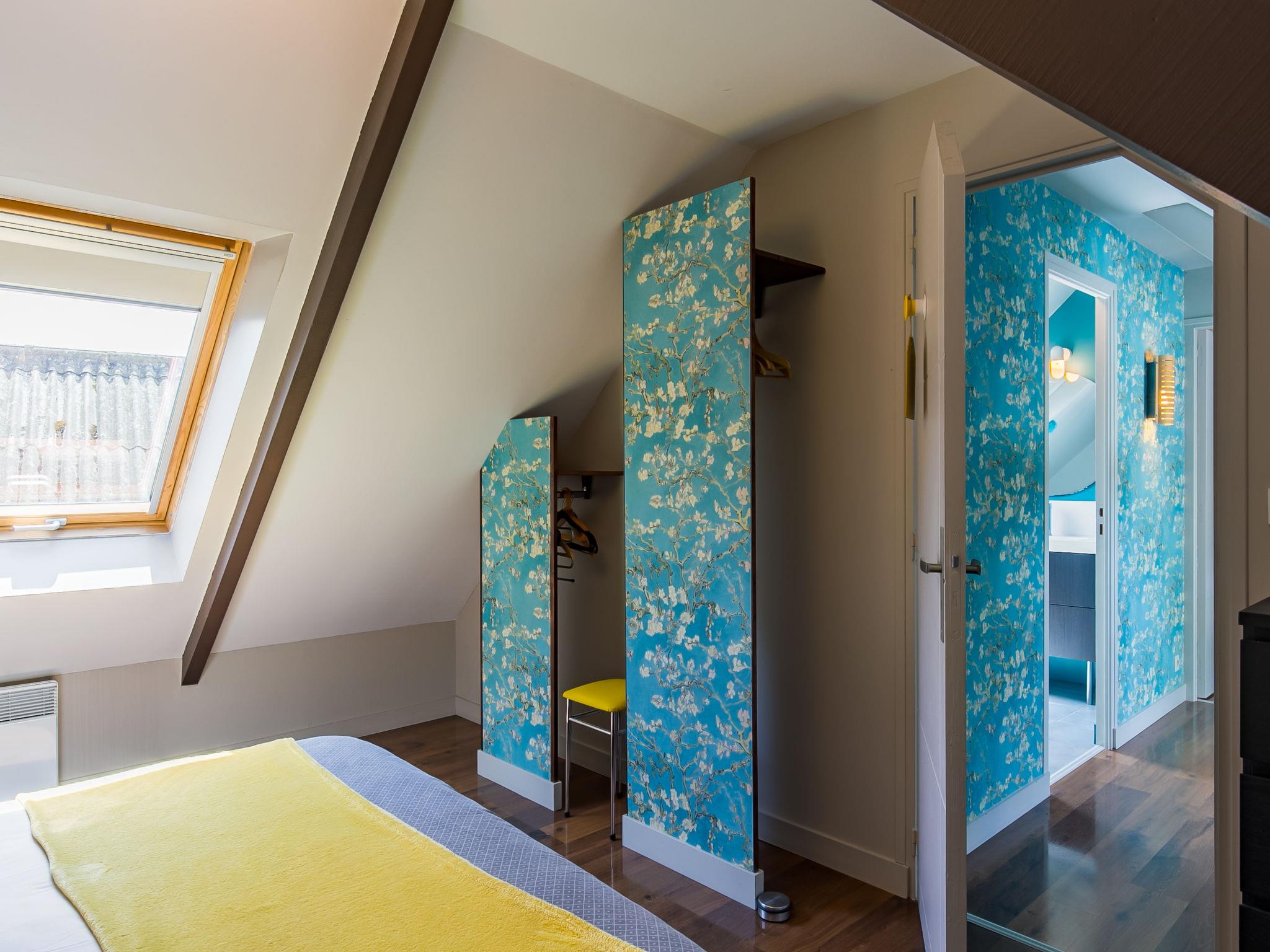 "Belon", 3-room semi-detached house 75 m2 on 2 levels. Modern and tasteful furnishings: living/dining room with Scandinavian wood stove, dining table, satellite TV, international TV channels, radio and CD-player. Open kitchen (oven, dishwasher, 3 induction hot plates, toaster, kettle, microwave, freezer, electric coffee machine). Sep. WC. Upper floor: 1 room with sloping ceilings with 1 french bed (160 cm, length 200 cm). 1 room with sloping ceilings with 2 beds (90 cm, length 190 cm). Shower/WC. Electric heating. Terrace roofed. Terrace furniture, barbecue (portable), deck chairs (2), box-room. Facilities: children's high chair, baby cot for up to 2 year olds. Internet (WiFi, free). Please note: non-smoking house. Smoke alarm.