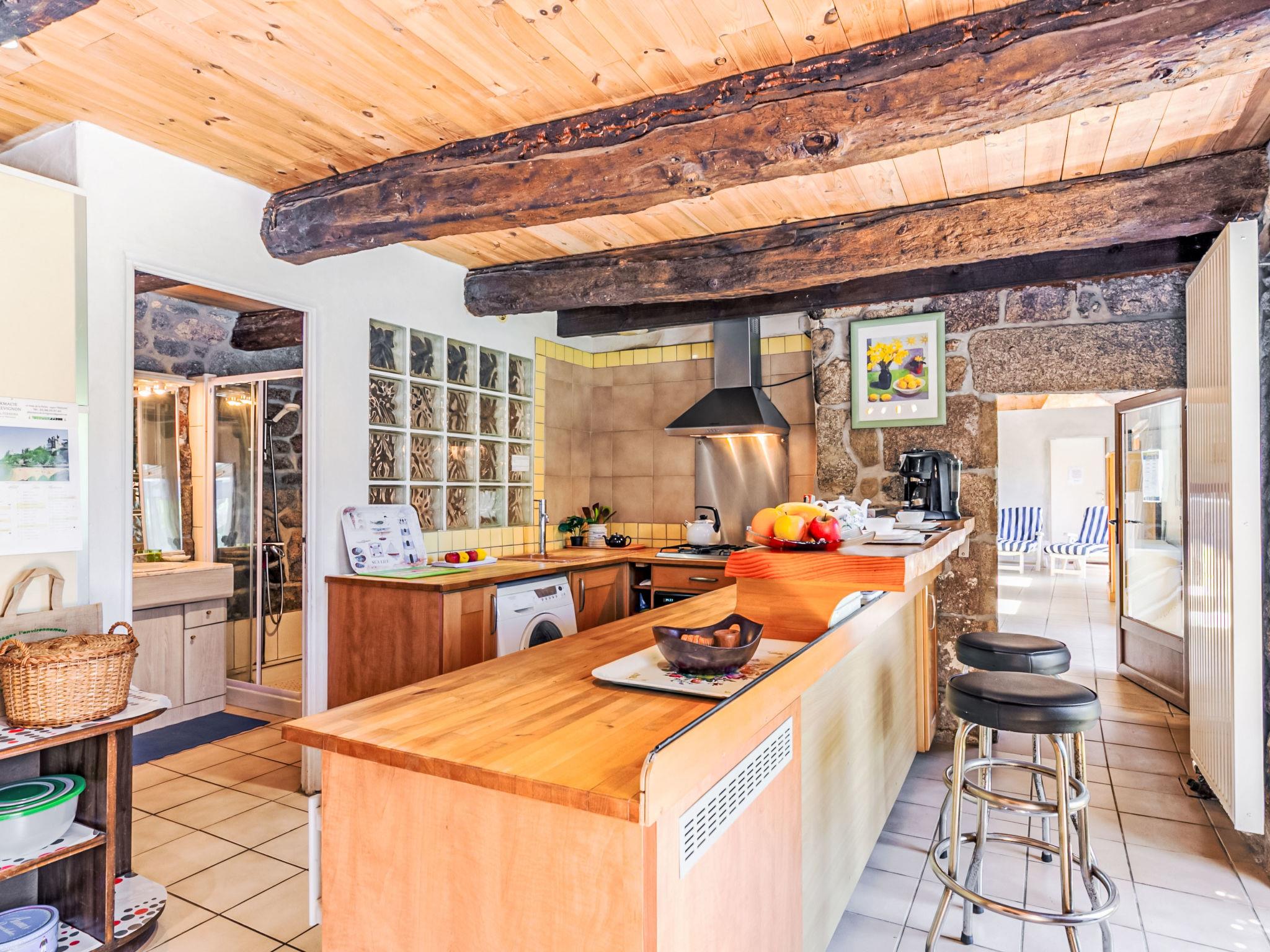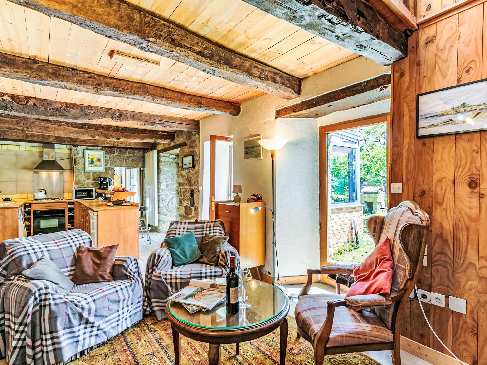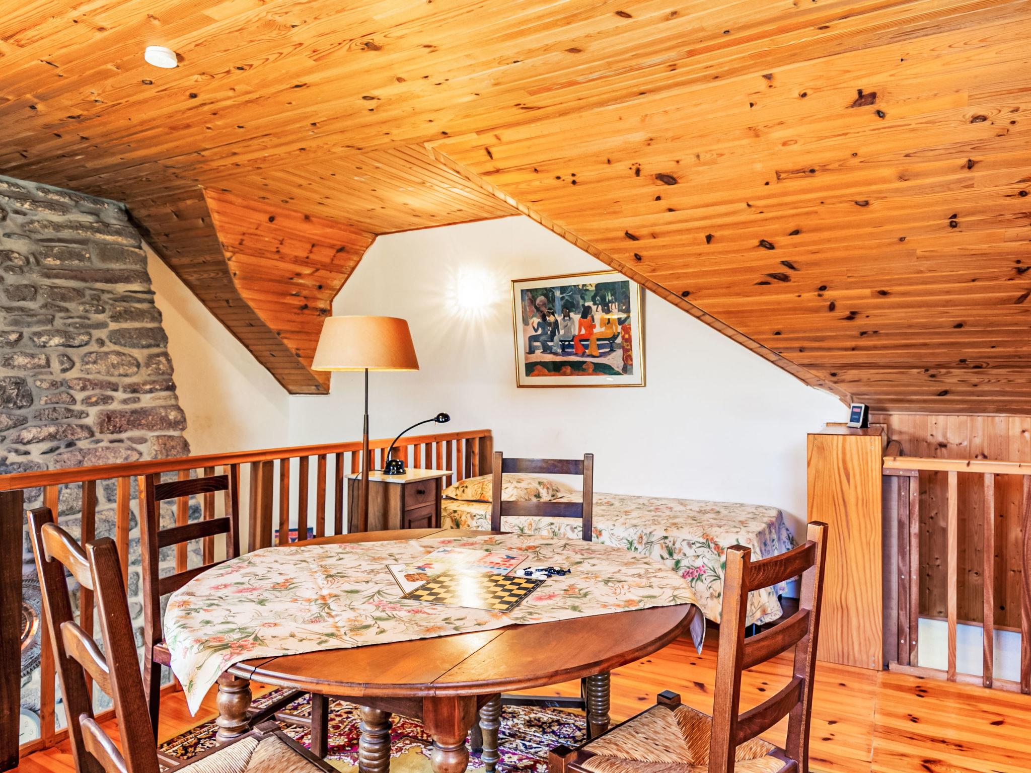 "Ty-2-Go", 3-room house 90 m2 on 2 levels. Wooden furniture furnishings: living/dining room with dining table, satellite TV, international TV channels, hi-fi system and DVD. Exit to the garden, to the swimming pool. Open kitchen (oven, 4 gas rings, toaster, microwave, electric coffee machine). Shower/WC. Upper floor: (steep stair), 1 room with sloping ceilings with 2 beds (90 cm, length 190 cm). Open gallery with sloping ceilings (120 cm, length 190 cm) with 1 bed (90 cm, length 190 cm). Sep. WC. Oil heating. Wooden floors. Patio. Terrace furniture, barbecue, deck chairs (2). Facilities: washing machine, iron, baby cot for up to 2 year olds. Please note: non-smoking house. Maximum 1 pet/ dog allowed. Smoke alarm.