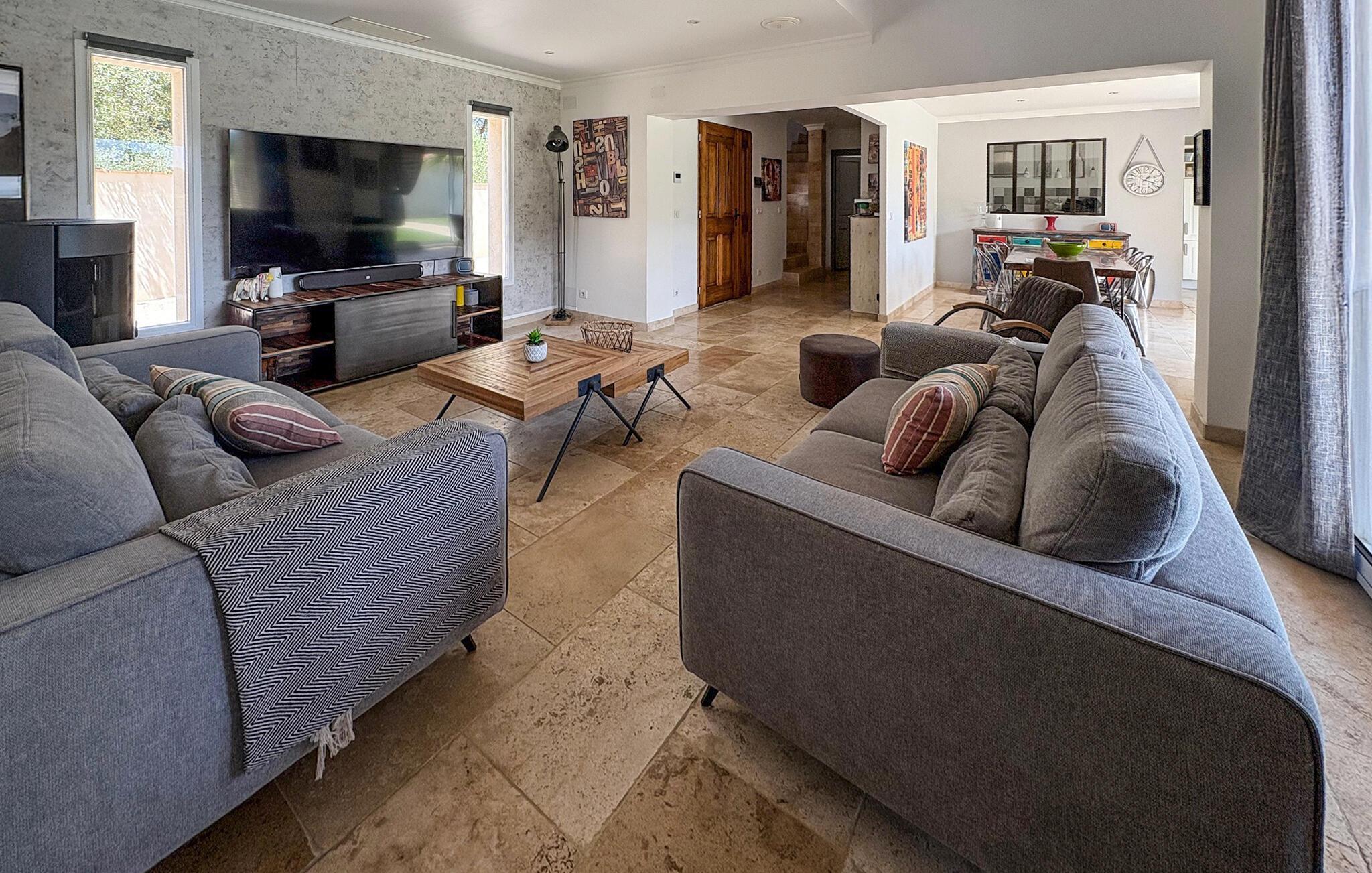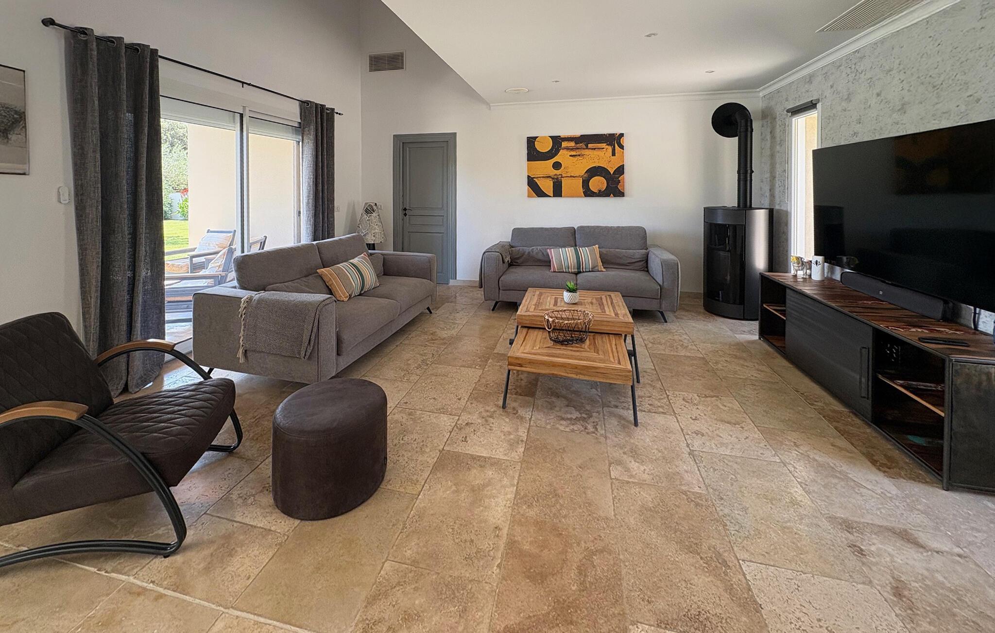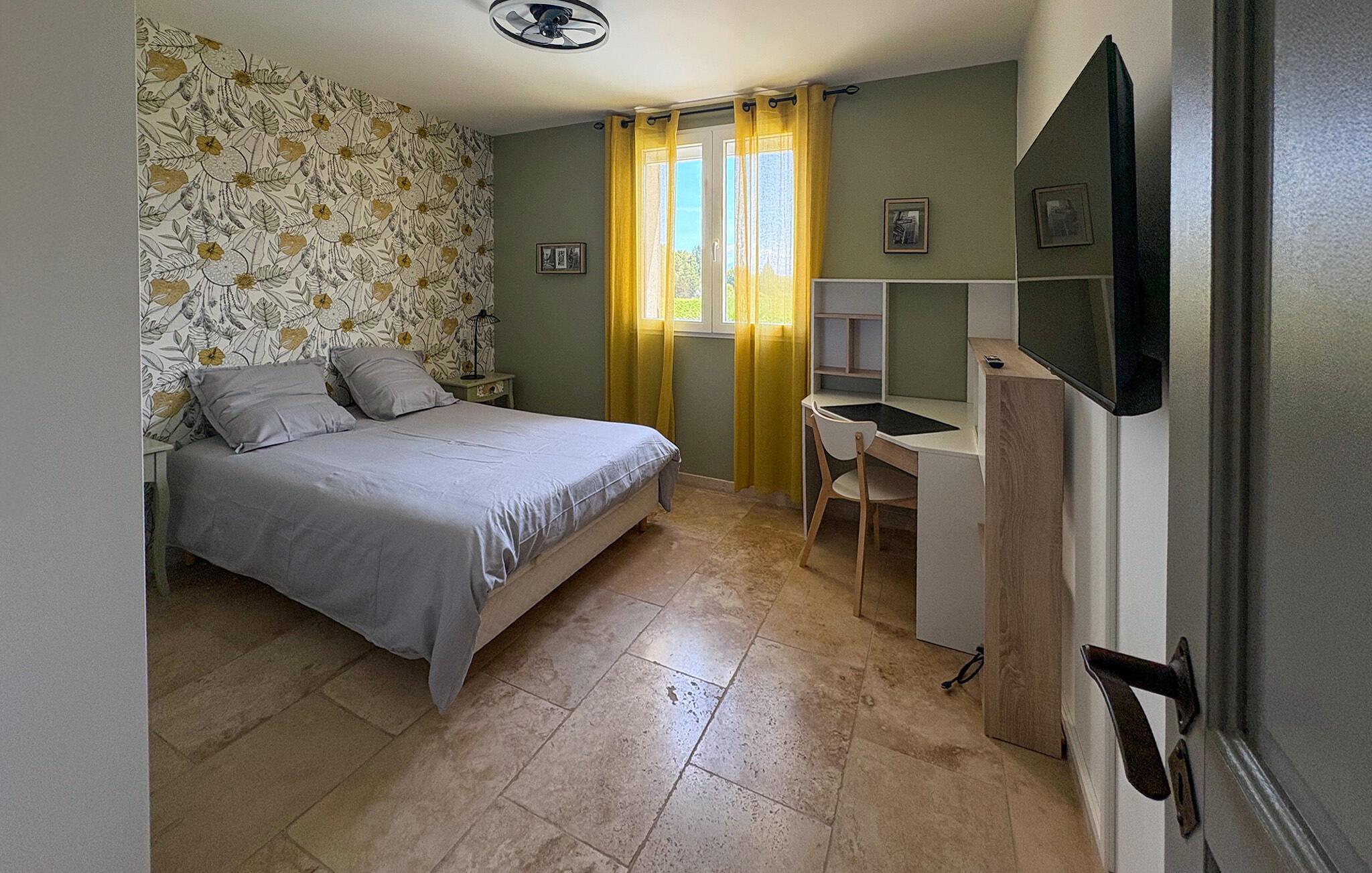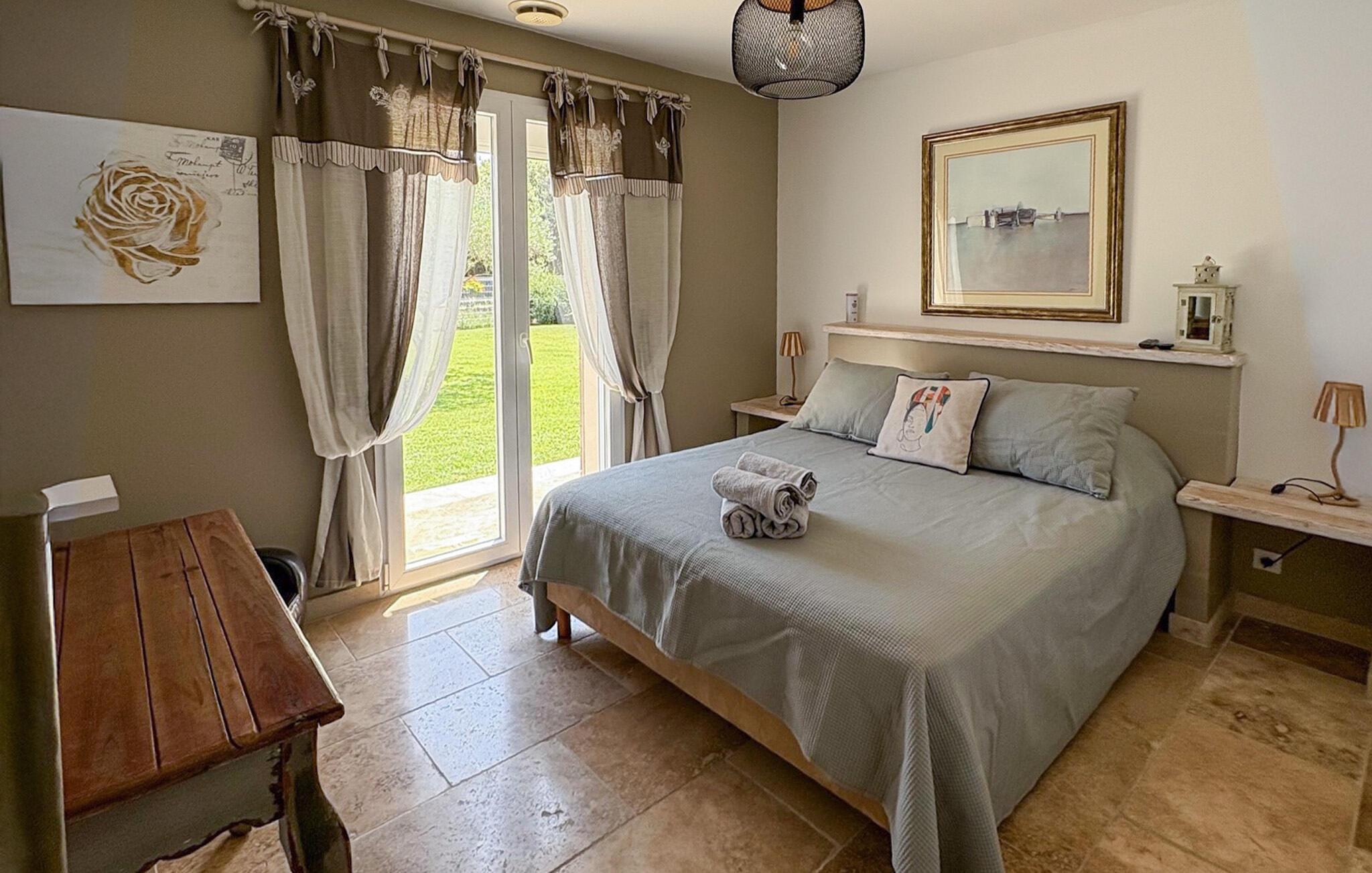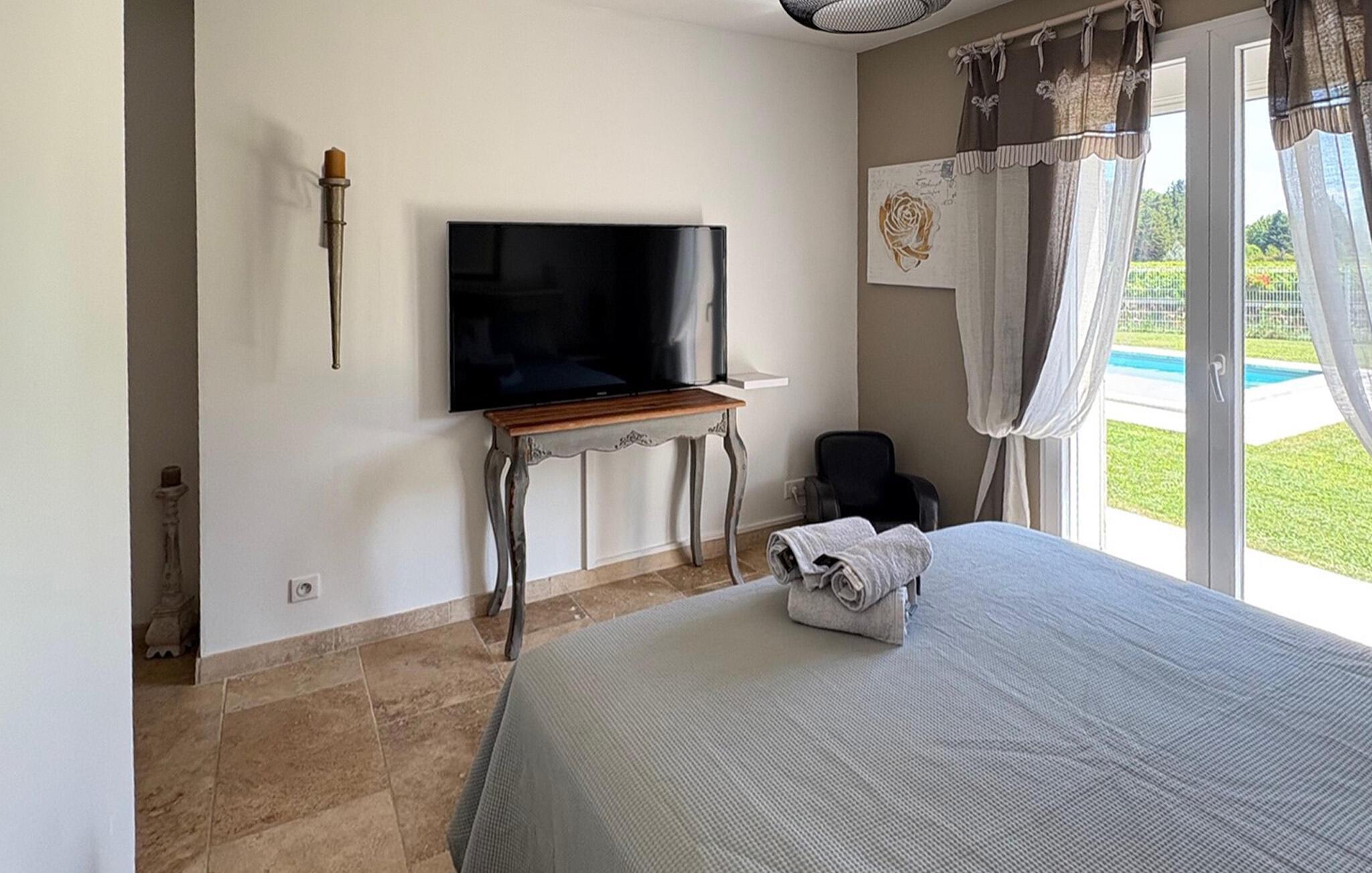 Denne ferievillaen i Uchaux, som ligger mellom Vaucluse og Drôme Provençale, tilbyr et fredelig tilfluktssted. Den har et privat basseng og klimaanlegg i alle soverom og oppholdsrom. Nyt den pittoreske utsikten over Mont Ventoux og de omkringliggende vinmarkene. I første etasje finner du et kjøkken utstyrt med alle nødvendige bekvemmeligheter samt en Nespresso-kaffemaskin. Den tilstøtende spisestuen vender ut mot terrassen og hagen gjennom et stort karnappvindu og har utsikt over bassenget. Stuen har komfortable sitteplasser og TV, og fører også ut til terrassen. Det er også et soverom med eget bad i denne etasjen. Ovenpå er det ytterligere to soverom med felles bad. Utenfor på den inngjerdede tomten er det en hage prydet med palmer og oliventrær, med pittoresk utsikt over Mont Ventoux. Villaen har to terrasser, den ene med fantastisk utsikt over Mont Ventoux og den andre med utsikt over hagen og bassenget. Det private bassenget er 8 x 4 meter stort og 1,50 meter dypt, og er utstyrt med solsenger, solstoler og en parasoll for avslappende stunder. En barneseng og en barnestol er tilgjengelig for bruk. Villaen ligger i utkanten av den lille landsbyen Uchaux (2 km) og landsbyen Piolenc (3,5 km), hvor du finner butikker: Dagligvarebutikk, bakeri, restauranter. Uchaux strekker seg over et stort område med åser og daler med skoger og vingårder på grensen mellom Drôme Provençale og Vaucluse. Ideelt område for terrengsykling og fotturer i Uchaux-massivet. I nærheten kan du besøke vingårdene i Côtes du Rhône: Cairanne, Gigondas, Vacqueyras, Châteauneuf du Pape. Byen Orange, med sitt gamle teater og sine kor (8 km).