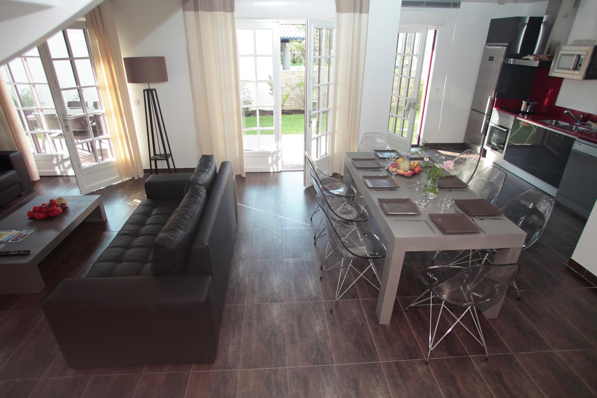 Sjarmerende baskisk villa med plass til å slappe av Denne romslige villaen for 8 gjester ligger i naturskjønne Domaine de Lana, og blander tradisjonell baskisk arkitektur med moderne komfort. Den lyse, luftige stuen åpner ut mot en privat uteplass og hage – perfekt for utendørs frokoster eller kveldsvin under stjernene. Nyt et fullt utstyrt kjøkken med stekeovn, mikrobølgeovn og oppvaskmaskin, og slapp av i fire komfortable soverom fordelt på to etasjer. Med to bad og separate toaletter er boligen ideell for familier eller grupper. En carport tilbyr enkel parkering, og det felles svømmebassenget er åpent fra april til oktober. Dyrevennlig paradis ved kysten Ta med deg dine firbeinte følgesvenner! Villaens store hage og nærliggende grønne stier gir god plass for kjæledyr å leke. Socoa Beach ligger bare 3 km unna, og tar imot hunder i lavtrafikken for sandsprint og salte svømmeturer. For en mer avslappet tur kan du spasere langs den nærliggende kyststien Sentier du Littoral med kjæledyret ditt og nyte panoramautsikten over havet. Mange lokale kafeer tilbyr til og med kjæledyrgodbiter og vannskåler – fordi de også fortjener en ferie! Baskiske smaker og lokale favoritter Ligger i sjarmerende Urrugne, er du minutter fra bukten Saint-Jean-de-Luz og kystlandsbyen Socoa. Oppdag familiedrevne bakerier, fersk sjømat på Chez Mattin og tradisjonell baskisk mat på Auberge Basque.