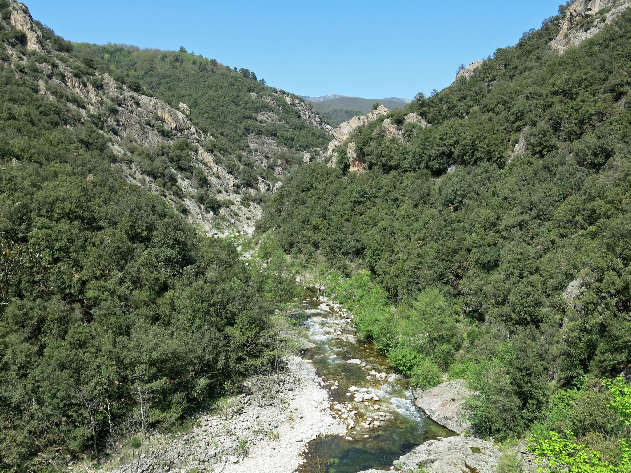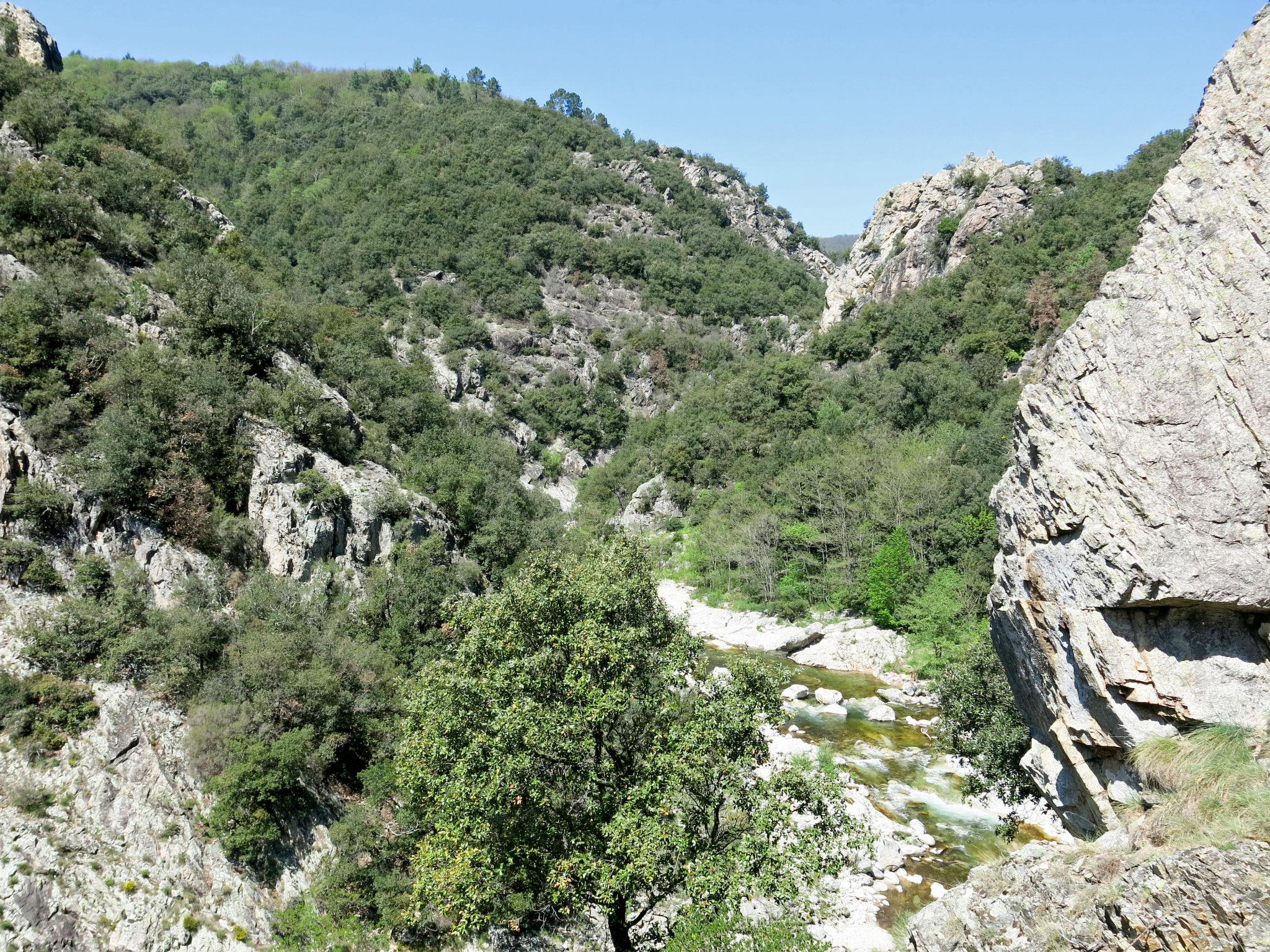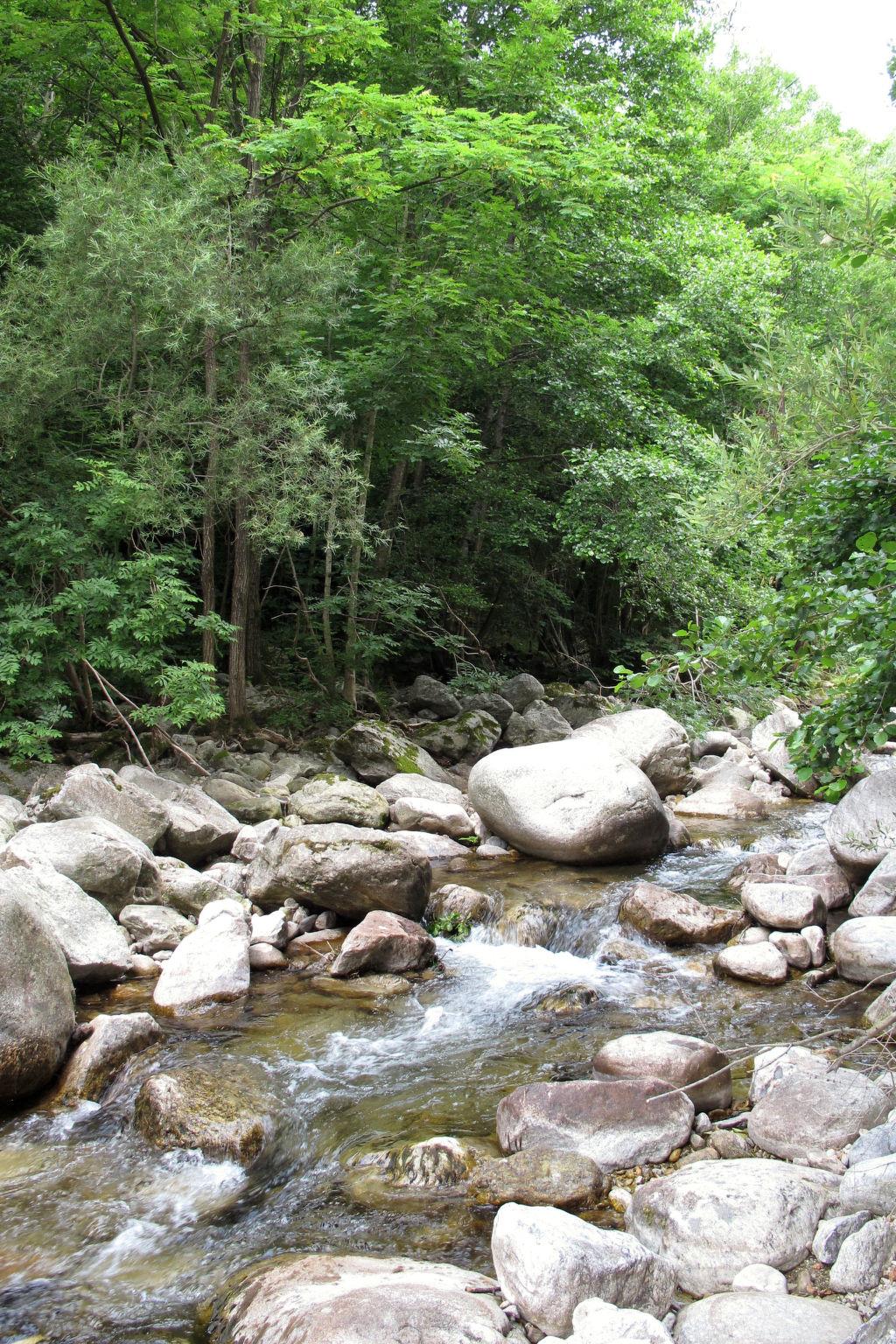 Cosy, rustic house "Les Galets", surrounded by trees. 1.2 km from the centre of Valgorge, 20 km from the centre of Largentière, 40 km from the centre of Aubenas, in a secluded position, 130 m from the river, in the countryside. Private: garden 2'200 m2 (not fenced) with trees, natural garden, meadow, parking (for 2 cars) on the premises. Shop 1.2 km, supermarket 20 km, restaurant 1.2 km, bus stop "Vals Le Prat" 27 km. Hiking paths: Chemins de randonnées, Chemins de randonnées vélos. The natural stone house is set back approx. 20 m from the small, non-disturbing country road leading from Valgorge to Joannas. The property borders on the torrent 'La Beaume' (direct access via steep, rocky footpath approx. 130 m long).
