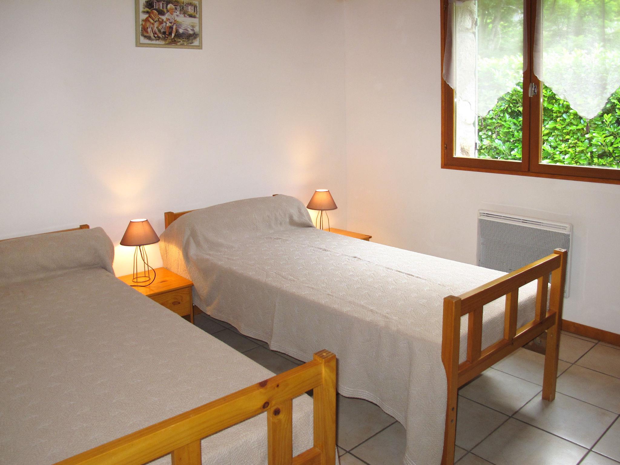 "Les Galets", 3-room house 80 m2. Simple and practical furnishings: living/dining room with open-hearth fireplace, dining table, TV, radio, CD-player and air conditioning. Exit to the veranda. 1 room with 1 french bed (1 x 140 cm, length 190 cm). 1 room with 2 beds (90 cm, length 190 cm). Open kitchen (oven, 4 gas rings, toaster, kettle, microwave, freezer, electric coffee machine). Shower, sep. WC. Electric heating. Terrace furniture, barbecue, deck chairs (2). Facilities: washing machine, iron, children's high chair, hair dryer. Please note: non-smoking house. Maximum 1 pet/ dog allowed.