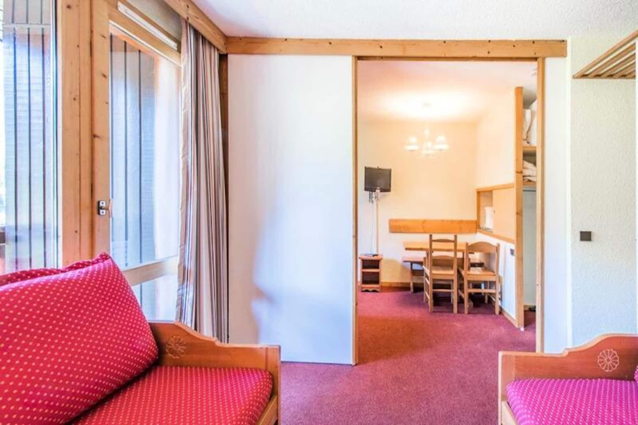 Plassert på høydene av Valmorel, tilbyr Crève Cœur-distriktet sjarmerende hytter i Savoyard-stil spredt over flere nivåer, og skaper en pittoresk landsbyaktig atmosfære. Disse boligene gir direkte tilgang til både skiløyper og turstier, noe som gjør dem perfekte for både vinter- og sommeraktiviteter. Sentrum av Valmorel, inkludert butikker og restauranter, er lett tilgjengelig via en liten taubane, Télémbourg, kun en kort kjøretur unna. Boligene ligger innen 5 minutters gange fra nærmeste skiheis og er også nær en rekke fasiliteter, inkludert butikker, noe som sikrer bekvemmelighet for gjestene. Nærliggende attraksjoner inkluderer skiheisene, turstier og det pulserende sentrum av landsbyen, hvor du kan nyte ulike butikker, kafeer og restauranter. Med sin ideelle beliggenhet og utvalg av fasiliteter, er denne eiendommen et godt valg for de som søker både avslapning og utendørs eventyr. Den romslige leiligheten på 28 m² har en komfortabel stue med to sovesofaer, en spisestue med bord og benk og et separat kjøkken. Badet har badekar og separat toalett. Et stort oppholdsrom kan deles i to deler ved hjelp av en flyttbar skillevegg, noe som gir ekstra fleksibilitet. Leiligheten har også en vestvendt balkong med vakker utsikt, perfekt for å nyte solnedgangen. Ytterligere fasiliteter inkluderer et skiskap, TV med dekoder og safe for ekstra sikkerhet.