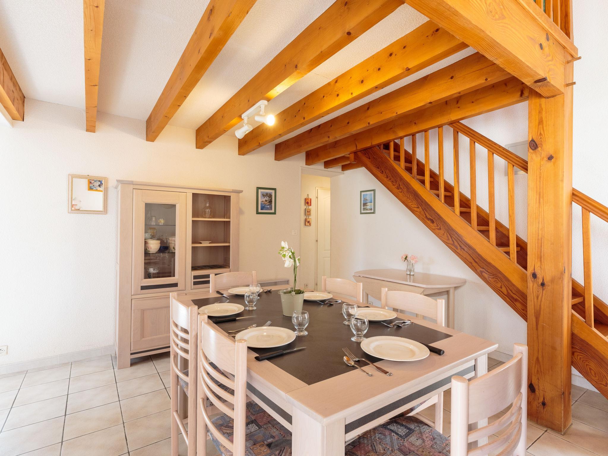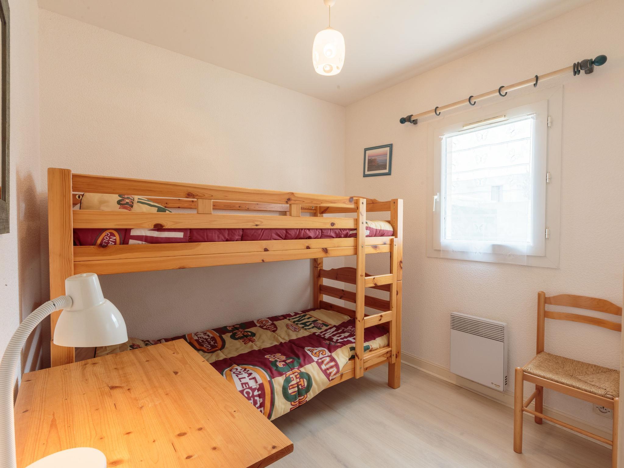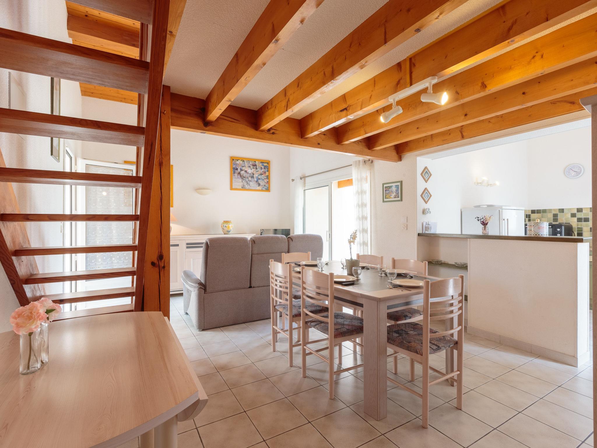 4-room house 76 m2 on 2 levels. Modern furnishings: living/dining room with TV (flat screen). 2 rooms, each room with 1 french bed (1 x 140 cm, length 190 cm). 1 room with 1 x 2 bunk beds (90 cm, length 190 cm). Open kitchen (4 hot plates, oven, dishwasher, microwave). Shower, sep. WC. Upper floor: gallery with sloping ceilings with 1 french bed (1 x 140 cm, length 190 cm). Electric heating. Terrace 14 m2, garden 350 m2. Terrace furniture. Facilities: washing machine. Internet (WiFi, extra). Parking (2 cars). Please note: smoke alarm. Instead of an enclosed bedroom, some sleeping areas are located in an open-plan area (gallery, alcove, etc.).
