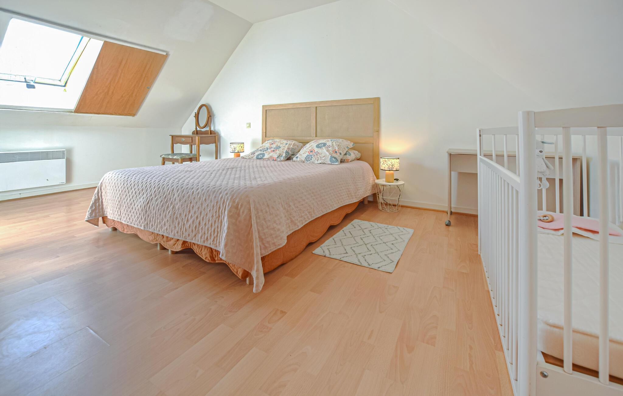 Slapp av i det vakkert beliggende huset, som venter på deg i kystens innland på grensen mellom Coudeville-sur-Mer og Bricqueville-sur-Mer, og tilbring en avslappende stund med familien i de lyse og koselige rommene. Nyt måltidene sammen på kjøkkenet, og tilbring kvelden i sofaen med å se tilbake på dagens opplevelser.