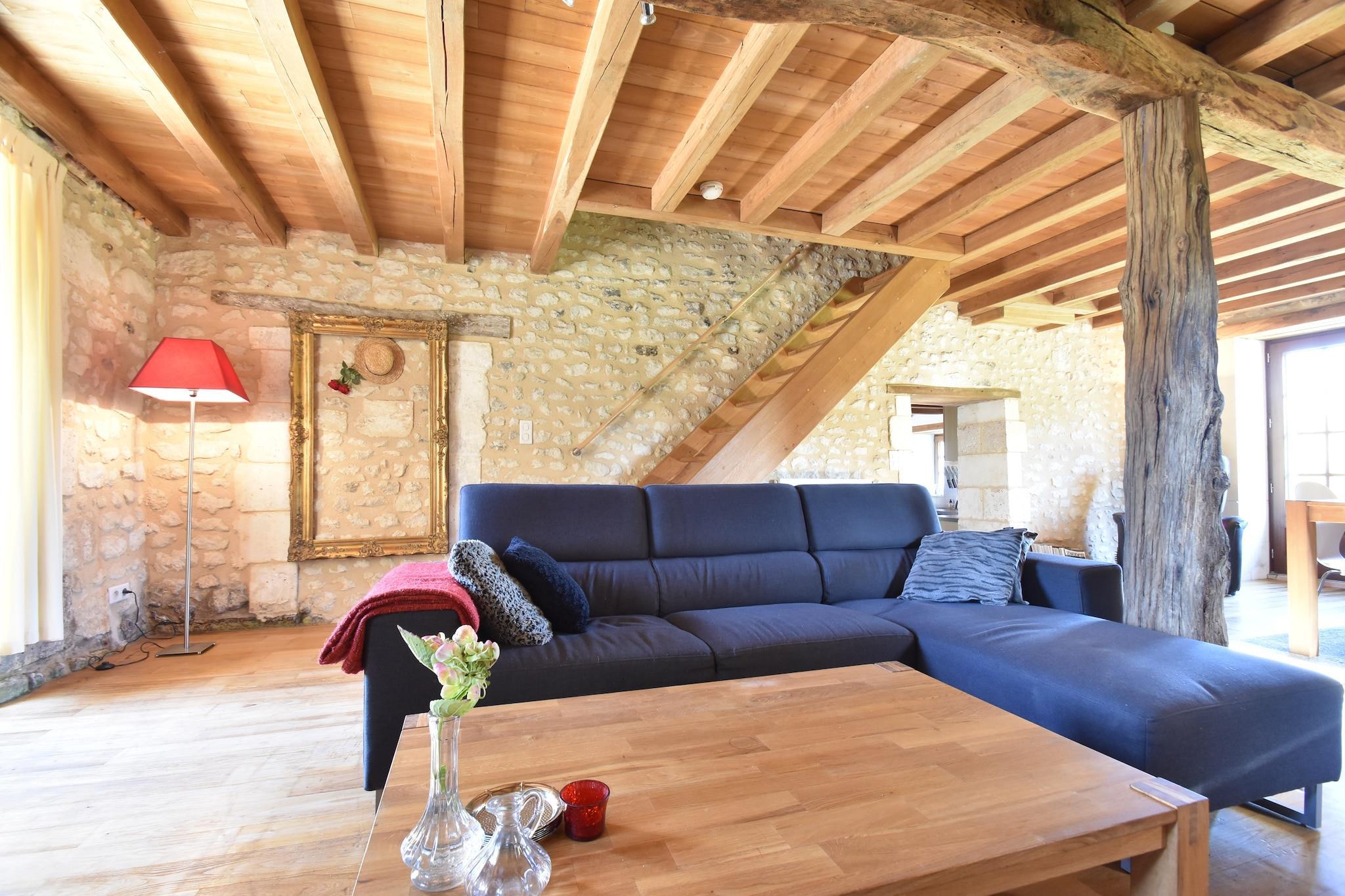 Denne vakkert restaurerte tidligere gården nær Verteillac tilbyr et luksuriøst tilfluktssted for opptil seks gjester. Med originale bjelker og varmt interiør, har hjemmet et privat svømmebasseng og en frodig plen perfekt for å slappe av. Ligger bare 1 km fra landsbyen, vil du nyte lett tilgang til ferske baguetter og koselige middager på La Cour des Miracles eller L'Escalier. Utforsk nærliggende perler som Ribéracs pulserende marked, Chervals historiske kirker og den naturskjønne innsjøen ved Le Grand Etang de La Jemaye. For kulturelle utflukter, ta turen til Périgueuxs katedral eller de forhistoriske underverkene i Villars-grotten. Hageelskere kan spasere gjennom The Gardens of Eyrignac Manor eller The Marqueyssac Gardens. Etter en dag med eventyr kan du slappe av under Périgord Vert-himmelen med en grilling på terrassen eller en svømmetur i bassenget. Barn kan nyte den åpne plenen, mens voksne nipper til drinker på Le Calice Bar Brasserie. Dette feriehuset blander rustikk sjarm med moderne komfort - en ideell flukt i hjertet av Dordogne.