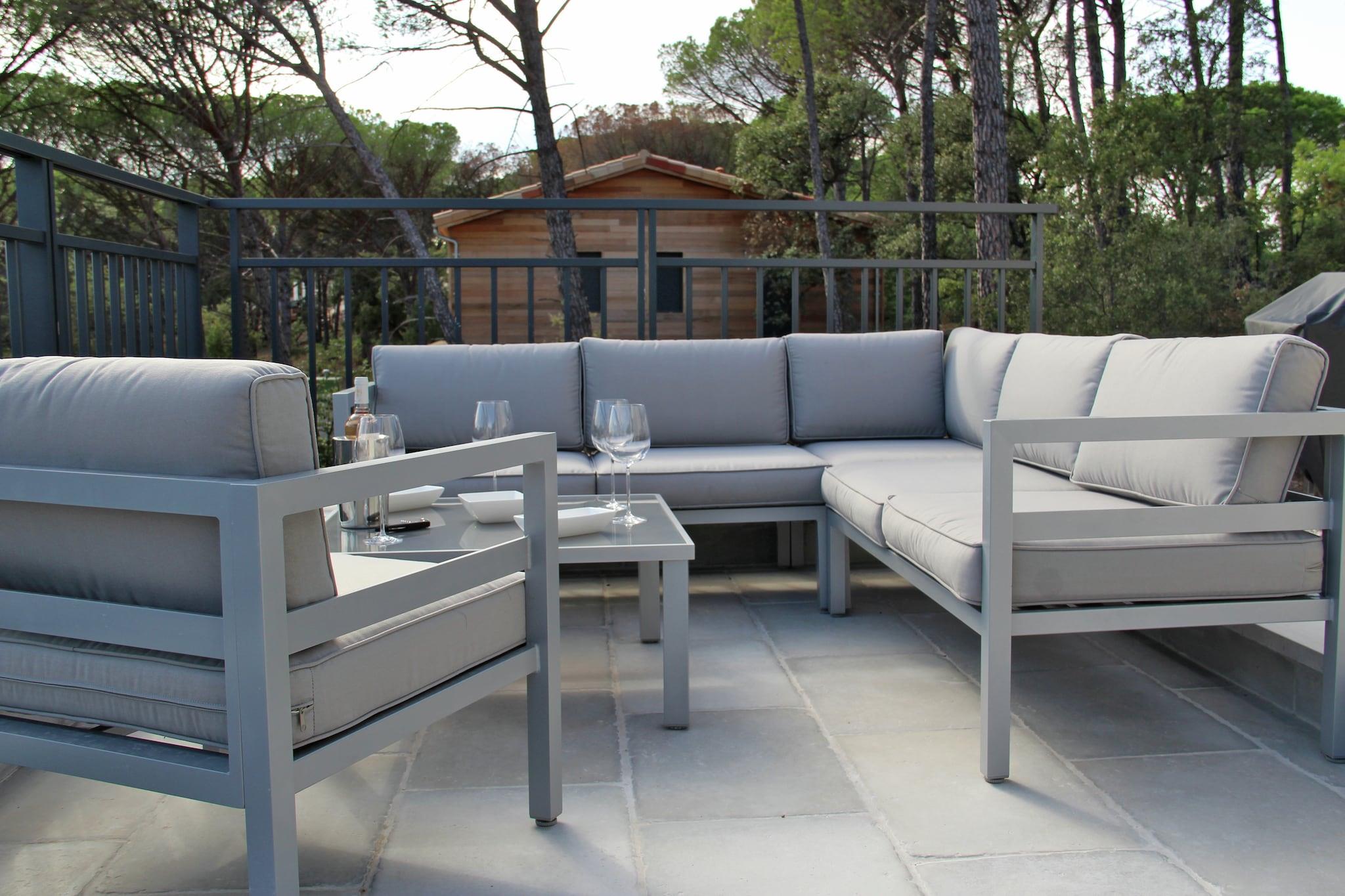 Vakker villa med inngjerdet privat basseng og en elegant, stilig design. Villaen ligger blant furutrærne i et rolig sted. Fra den store, delvis overbygde terrassen har du en vakker utsikt over naturen Massif des Maures. Naturreservatet Massif des Maurus er vakkert og ideelt for sykling og fotturer. Pause er gjort i en av de pittoreske fjelllandsbyene som Garde Freinet og Collobrières. Besøk det imponerende klosteret Chartreuse de la Verne. Villaen ligger kun 3 km fra landsbyen Vidauban. Her får du dagligvarer, lunsj i en av de koselige restaurantene (f.eks. Restaurant La Bastide de Magnan like før landsbyen Vidauban) og fjern regionale delikatesser på markedet. Feriestedet er et godt utgangspunkt for utflukter til de mange attraksjonene som Abbay Thoronet og Gorges du Verdon og de vakre badebyene Saint-Tropez, Sainte-Maxime og Frejus. Tips: Hvis du kjører mot Sainte-Maxime, tar du fergen til den legendariske Saint-Tropez. Fra vannet tar du de beste bildene av denne fargerike fiskerlandsbyen!