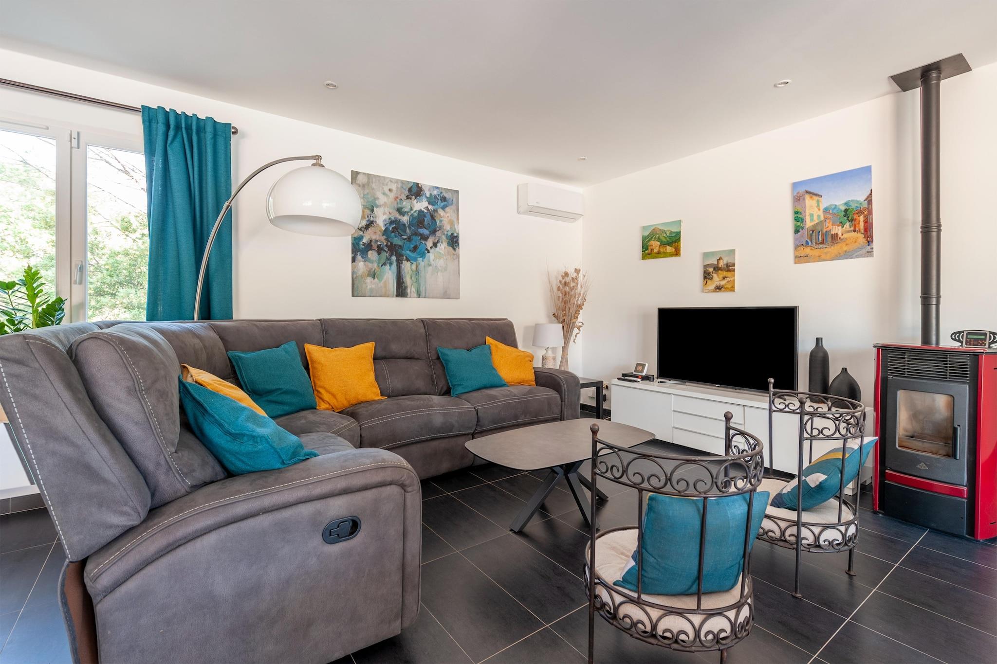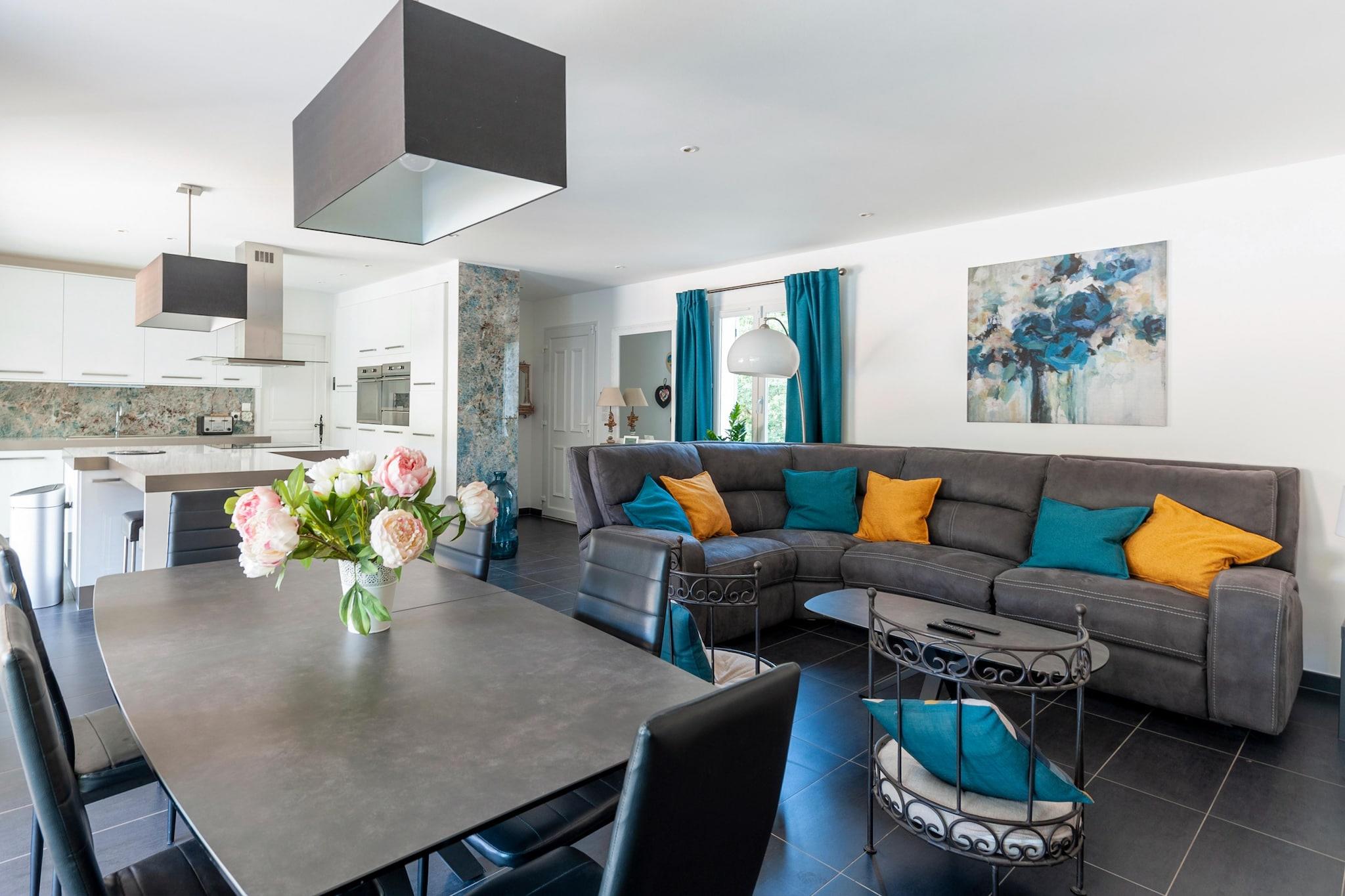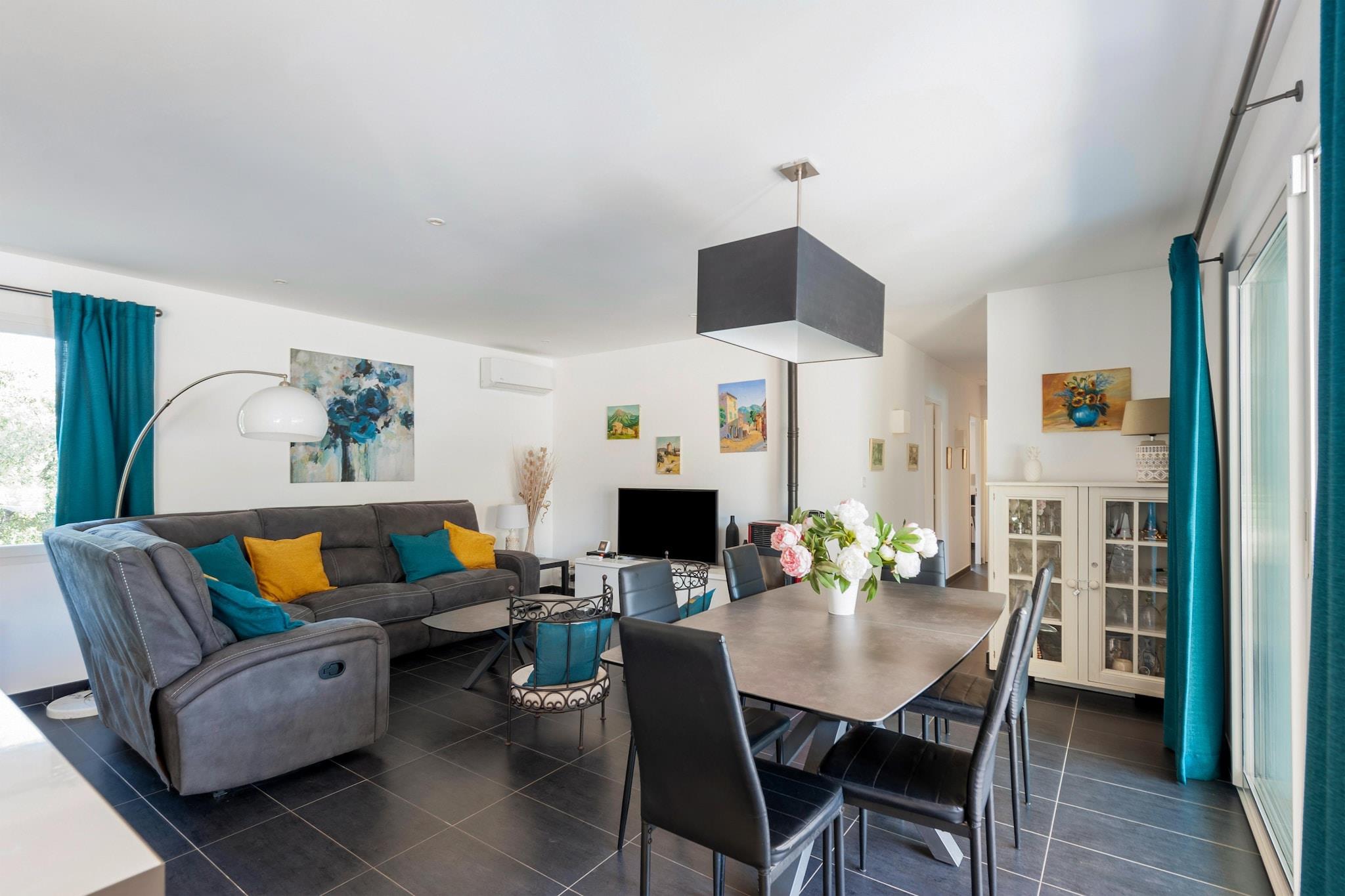 Denne vakre og moderne villaen ligger i skogen nær den pittoreske landsbyen Vidauban. Ideell for familier eller vennegrupper, tilbyr det fred og privatliv samtidig som det er nær sjarmerende landsbyer som Lorgues, Salernes og Aups. Hver dag bringer et nytt lokalt marked hvor du kan prøve og kjøpe ferske provençalske produkter. På bare 30 minutter kan du nå de hvite strendene i Sainte Maxime, Fréjus og Saint-Raphaël. Når du kjører mellom vingårder og vinslott, tilbyr den naturskjønne skjønnheten en perfekt balanse mellom liv og ro. I nærheten lover Vidauban Water Park utendørs moro og forfriskende aktiviteter for alle aldre. Selve villaen er romslig og fylt med naturlig lys. Nyt det private svømmebassenget, solsengene og en stor hage med boulebane. Den overbygde terrassen er perfekt for felles måltider, og det fullt utstyrte kjøkkenet gir direkte tilgang til utendørs. Innvendig tilbyr stuen en koselig stue med flatskjerm-TV, og de komfortable soverommene sørger for en god natts søvn.