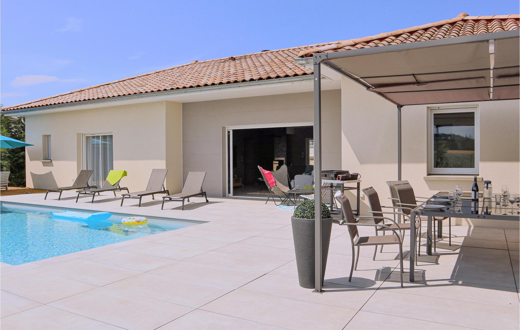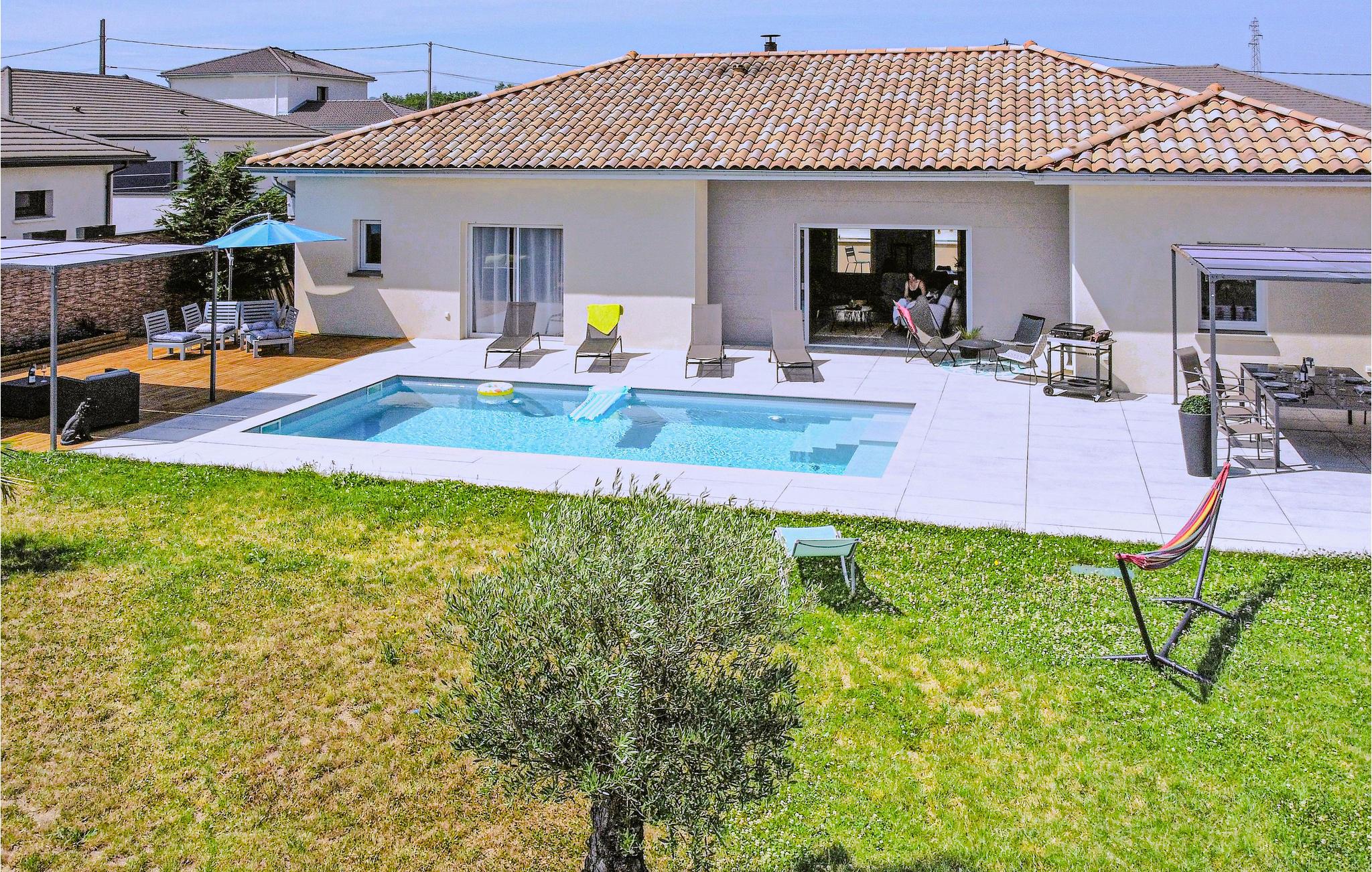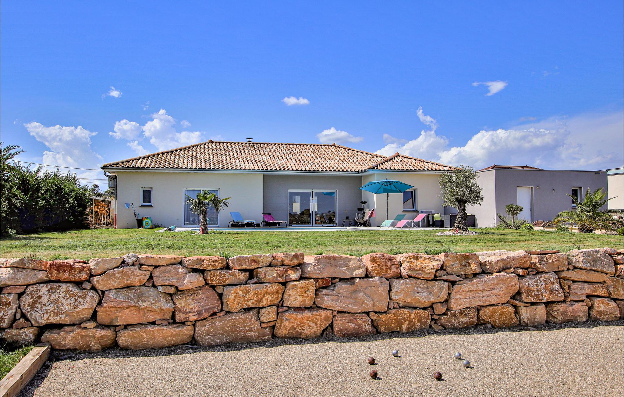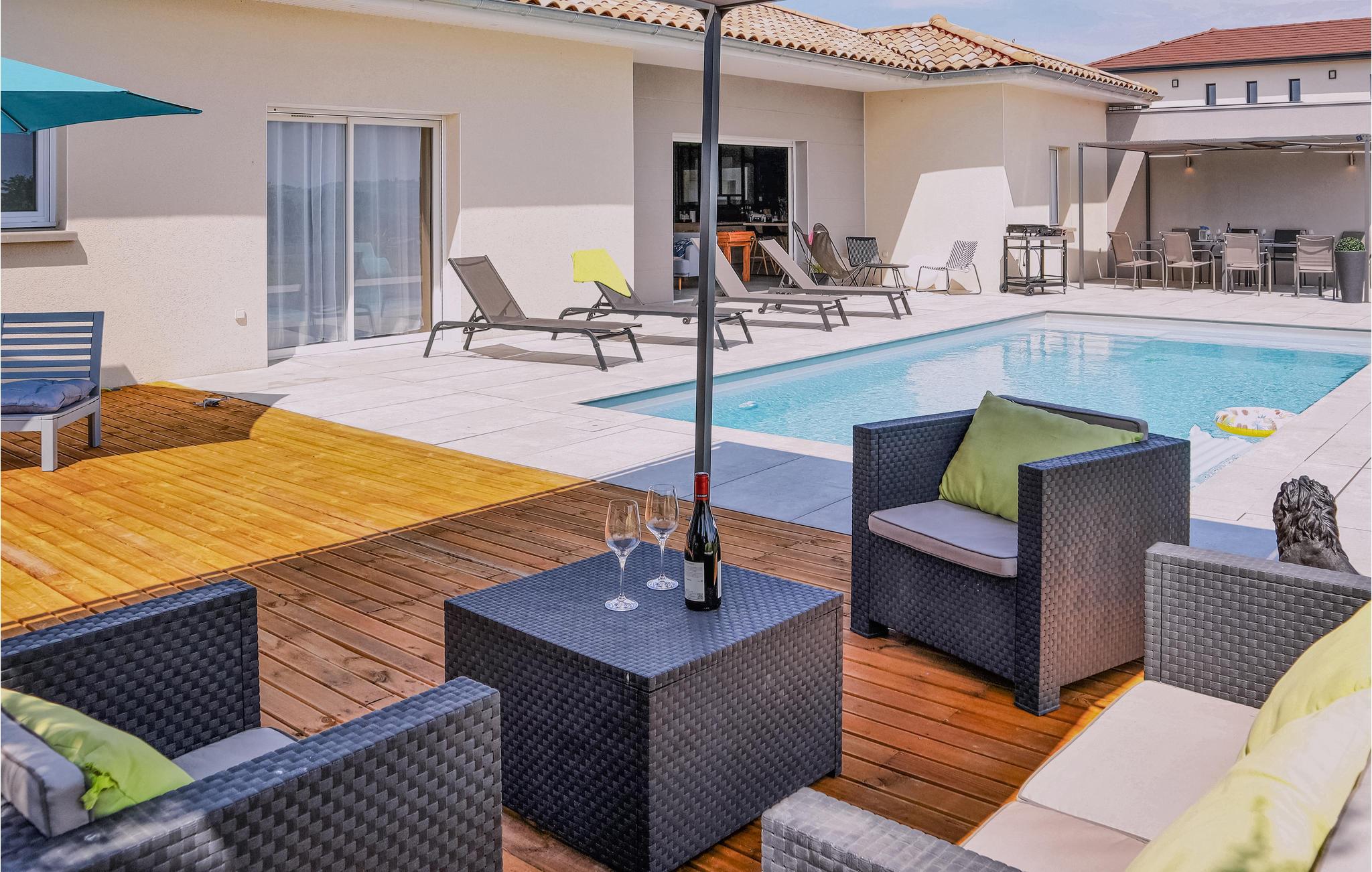 Sør for Lyon, i utkanten av landsbyen Pont-Évêque, ønsker dette innbydende feriehuset deg velkommen. Innvendig venter et komfortabelt interiør av høy kvalitet laget av materialer av høy kvalitet. De lyse og koselig innredede rommene er designet for å få deg til å føle deg hjemme og gir den ideelle rammen for en avslappende ferie med hele familien.