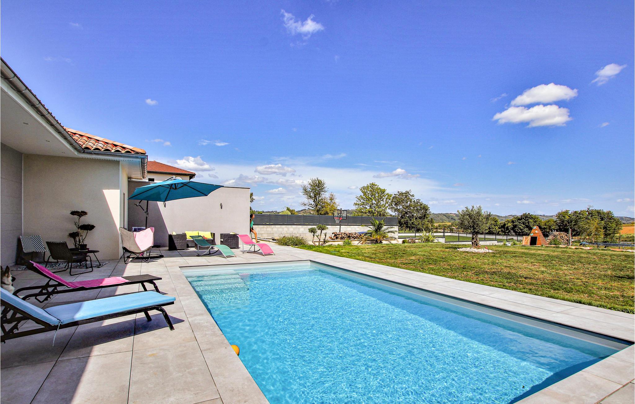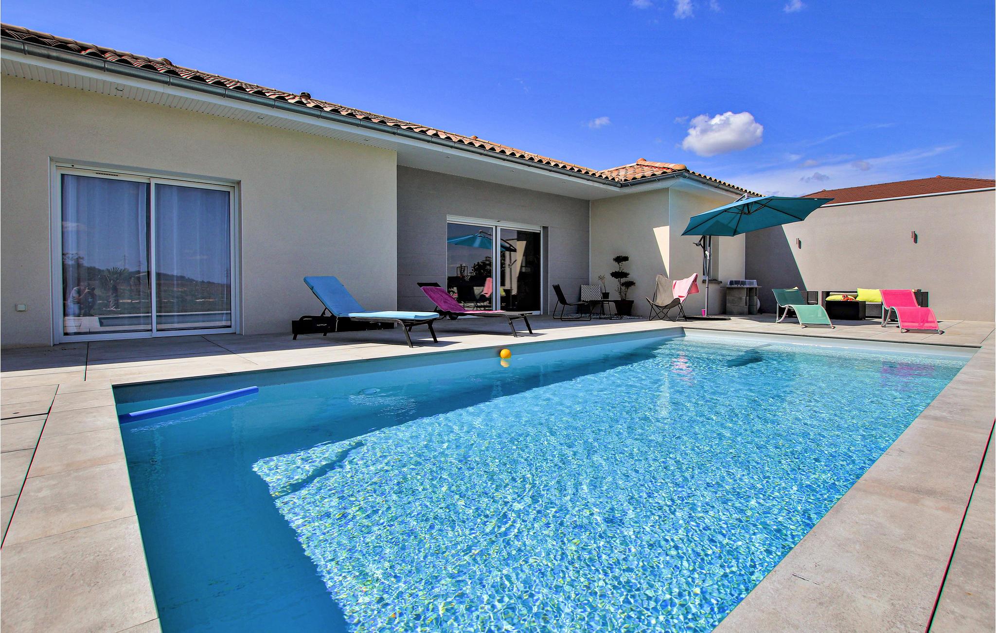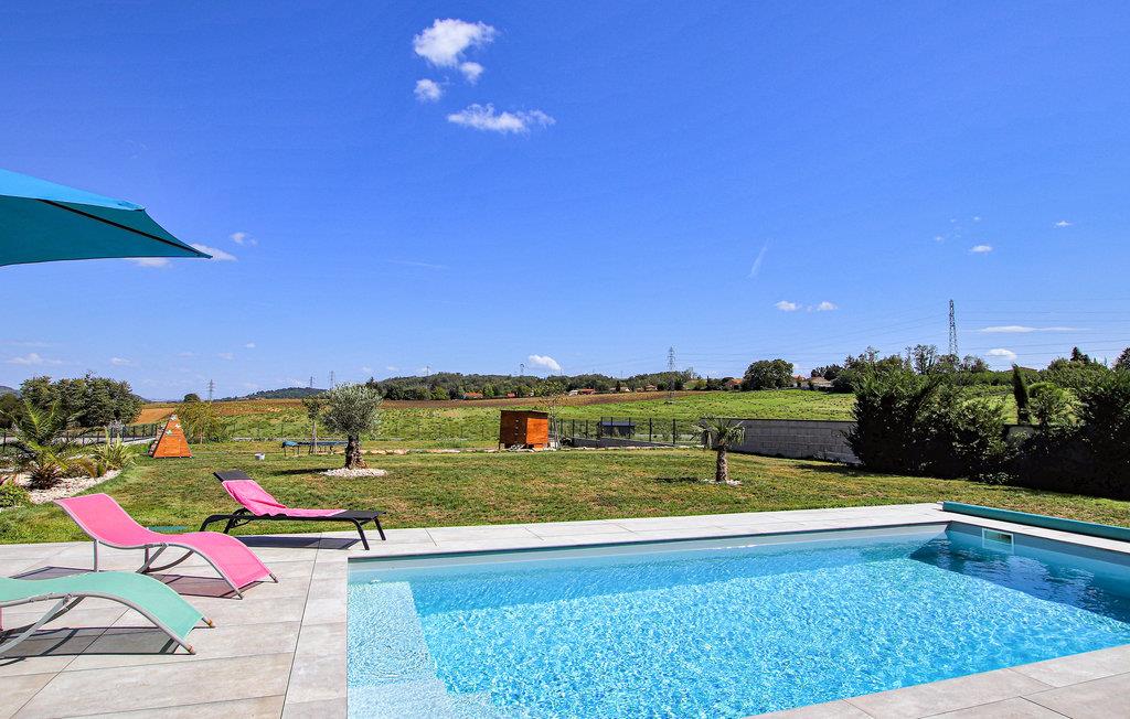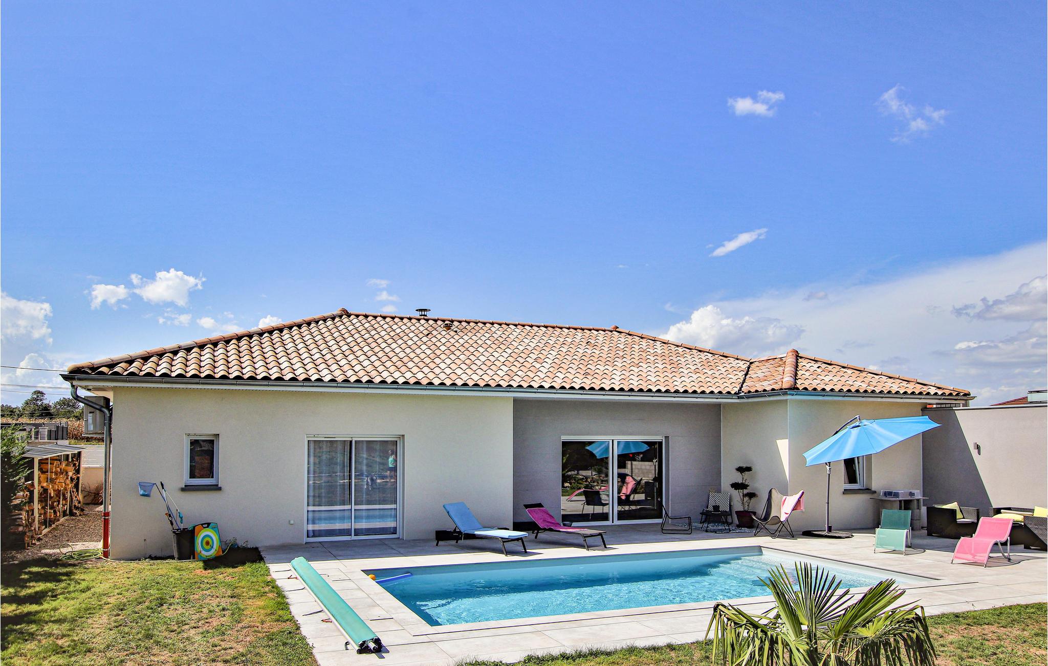 Sør for Lyon, i utkanten av landsbyen Pont-Évêque, ønsker dette innbydende feriehuset deg velkommen. Innvendig venter et komfortabelt interiør av høy kvalitet laget av materialer av høy kvalitet. De lyse og koselig innredede rommene er designet for å få deg til å føle deg hjemme og gir den ideelle rammen for en avslappende ferie med hele familien.