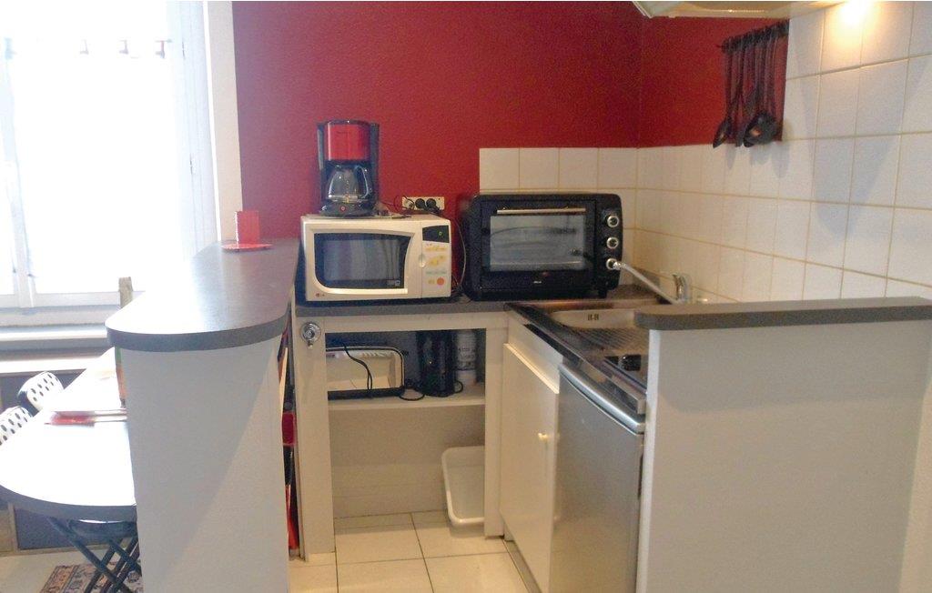 Denne ferieleiligheten ligger i første etasje i et sjarmerende hus. Her kan du nyte en åpen og moderne stue, en velutstyrt kjøkkenkrok og et romslig soverom med separat dusjrom og toalett. På den private og godt skjermede gårdsplassen kan du tenne grillen om kvelden. Du trenger bare å gå et kort stykke over veien, og du er allerede på stranden i bukten Mont-Saint-Michel. Når vannet er høyt, kan du svømme i det uvanlig varme vannet, og ved lavvann kan du undersøke havbunnen i denne naturbeskyttede bukten eller samle hjerteskjell for å spise senere. Guidede turer i dette ekstraordinære naturmiljøet er også tilgjengelig. I den ene retningen tar kyststien deg til den pittoreske havnebyen Cancale, og på den andre siden venter Mont-Saint-Michel på ditt besøk. Denne store franske attraksjonen må du ikke gå glipp av. En rekke spennende aktiviteter er tilgjengelige lokalt, for eksempel strandseiling, gokart og ridning. Området er også ideelt for kite- og brettseiling. Kafeene ved vannkanten serverer deilig sjømat. Den normanniske kysten med sine mange historiske kirkegårder fra andre verdenskrig er også et anbefalt utfluktsmål. Leiligheten kan leies sammen med FBI095 (3 personer) og FBI096 (4 personer), som ligger i første etasje i dette gamle huset. Gjestene i de tre boligene deler et lite vaskerom med vaskemaskin.