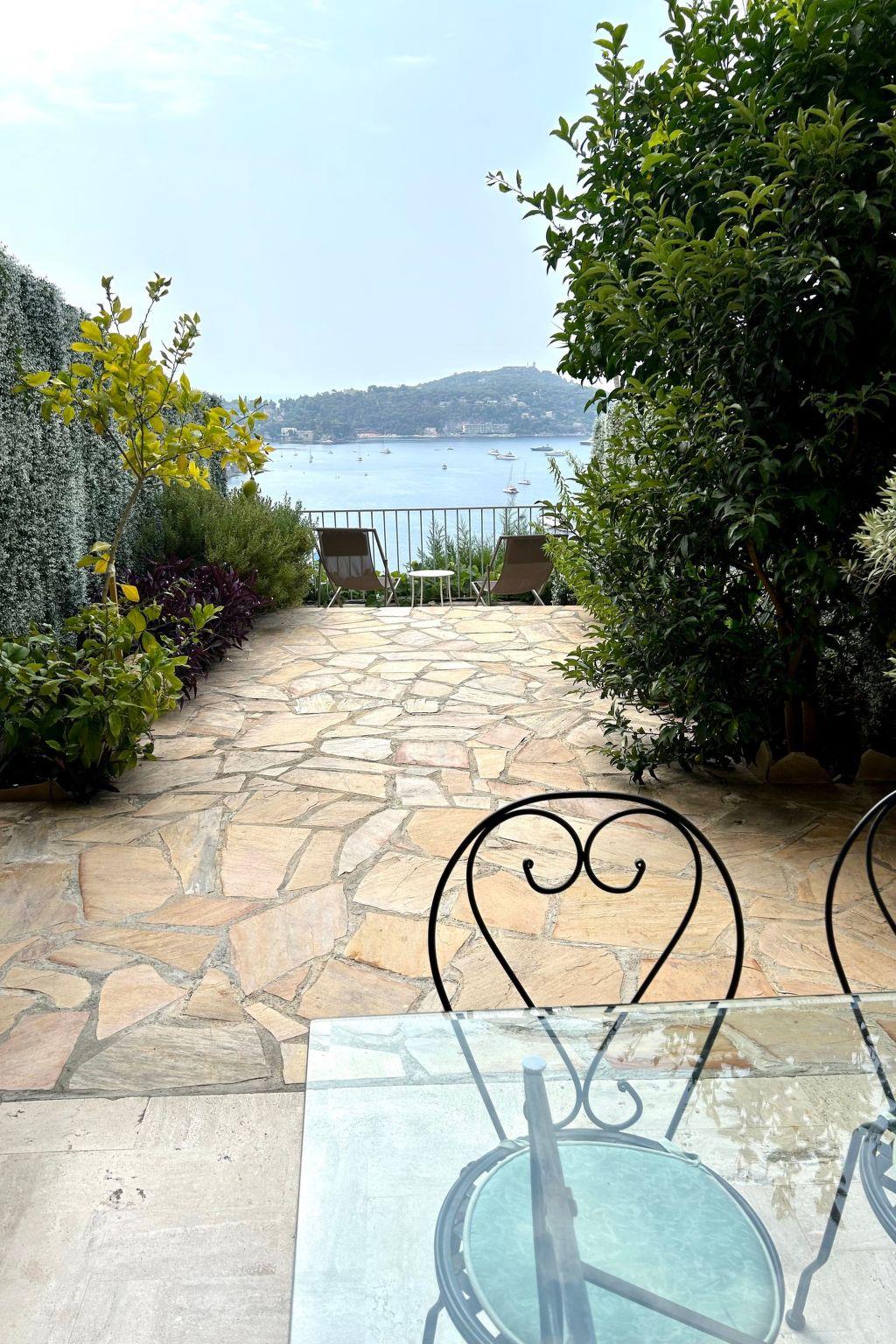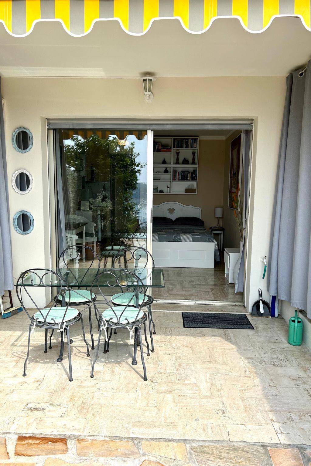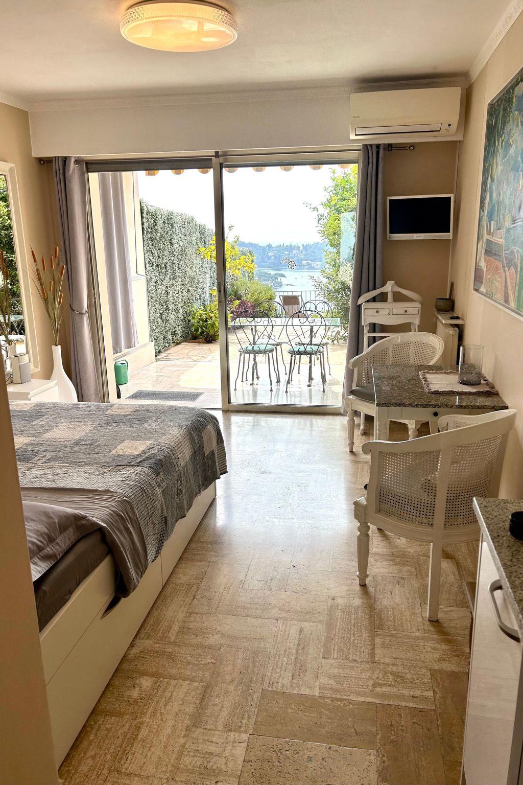The studio flat has a terrace with garden furniture and a garden (both together approx. 40m²). From the terrace you have a unique panorama over the Cap Ferrat peninsula and the bay of Villefranche sur Mer as well as the old town. The complex has a security guard, a communal pool (which is never overcrowded even in summer), a private car park and a Mediterranean park. The entire complex, including the pool and park, is floodlit at night (in case anyone wants to swim a few laps late in the evening). Although the pool is not heated, it can be used from the end of May to the end of September. However, it is open all year round for those who simply want to relax and unwind in the sun by the pool.