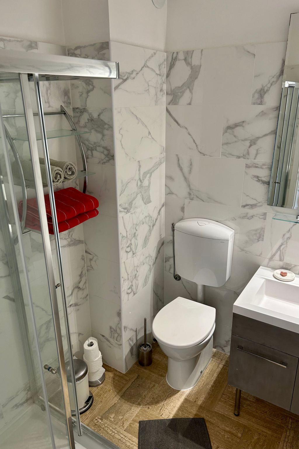 The 25m² studio is fully equipped and furnished. You sleep in a comfortable double bed (2m x 1.40m). The bathroom is equipped with a shower. The accommodation also has various furnishings such as a washing machine, plenty of crockery and cutlery, TV, WLAN, patio furniture, towels, toaster, kettle, bed linen, etc. The landlord is also happy to provide you with a Nespresso machine (with capsules). The studio can be completely darkened by electric window shutters.