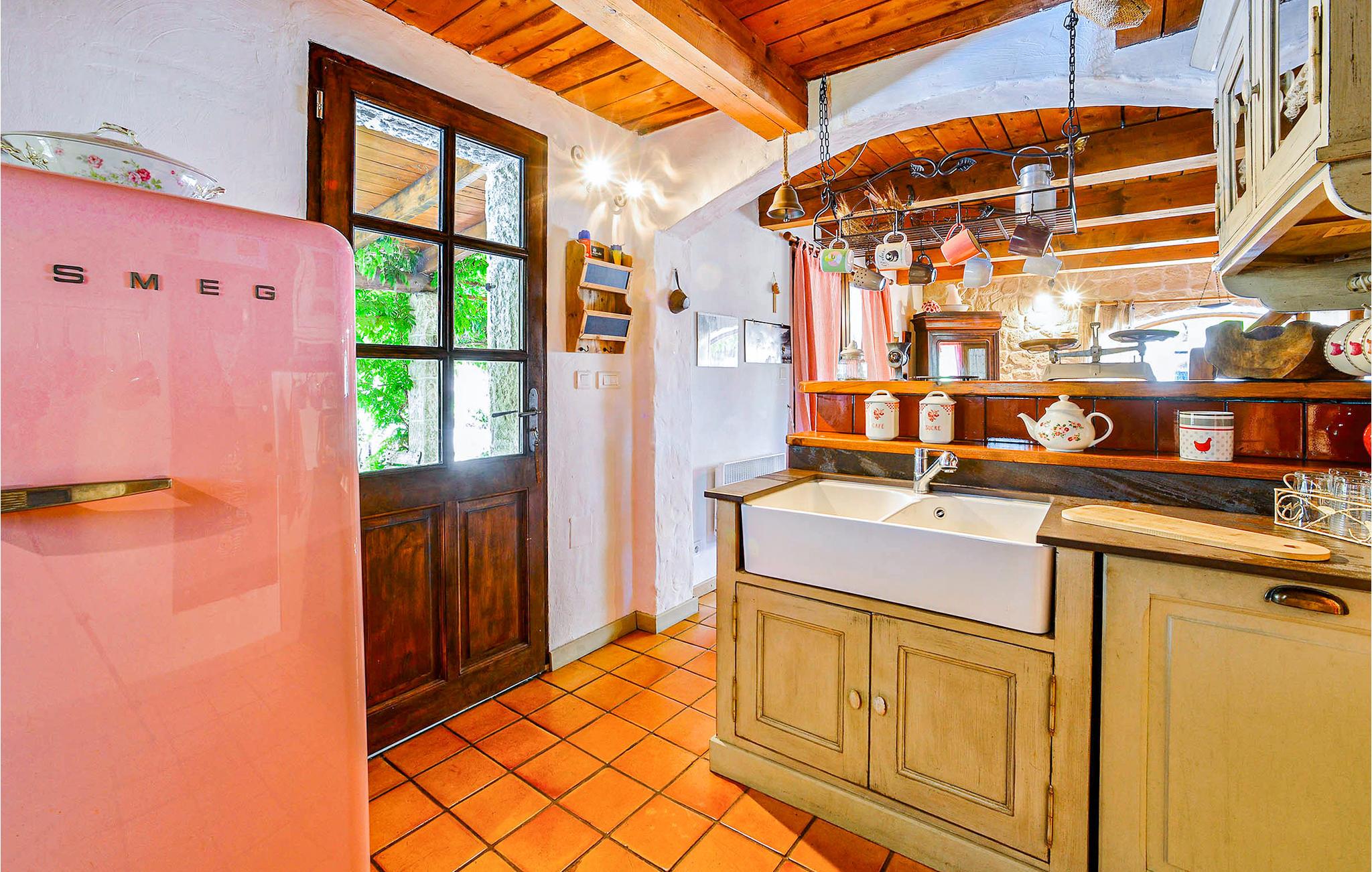 Dette sjarmerende, tradisjonelle steinhuset ligger på landsbygda, på høyden av den pittoreske middelalderlandsbyen Vinezac, og tilbyr et autentisk og idyllisk tilfluktssted. Det ønsker gjestene velkommen med rustikk sjarm og er det ideelle stedet for å slappe av og nyte tiden sammen. Start dagen med felles frokost på kjøkkenet.