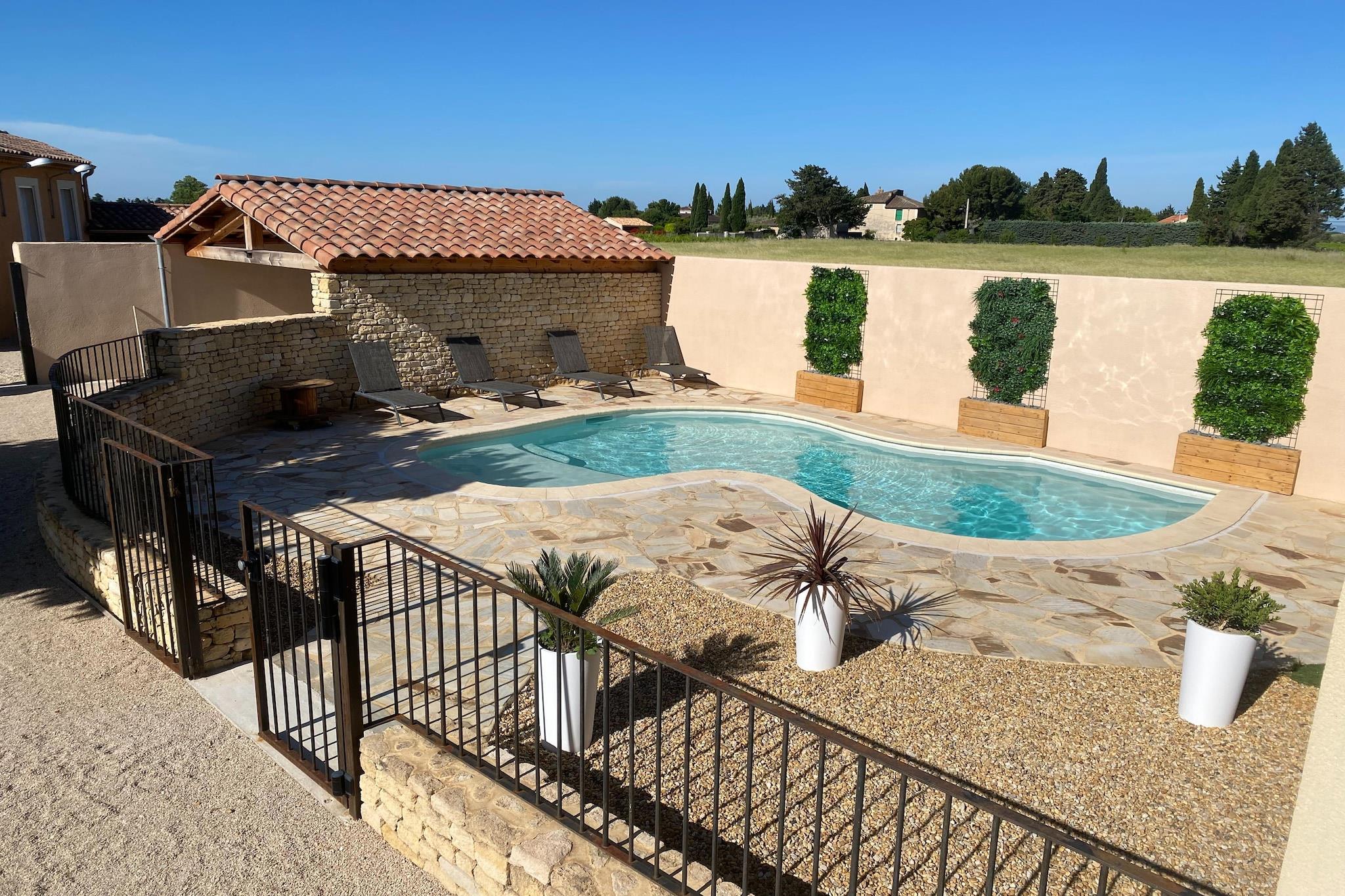 Stig inn i hjertet av Provence og opplev sjarmen til et autentisk gårdshus designet for avslapning, kontakt og uforglemmelige minner. Perfekt for familier eller vennegrupper, kombinerer dette romslige tilfluktsstedet rustikk karakter med moderne komfort, alt innen rekkevidde av lokale butikker og provençalske herligheter. Gårdshuset tilbyr seks innbydende soverom, inkludert to private hovedsuiter. Ovenpå finner du en allsidig blanding av soveplasser: to rom med king-size-senger (som kan gjøres om til to enkeltsenger), et koselig dobbeltrom med et stort skap og et muntert barnerom med køyesenger, TV og til og med en Nintendo Switch. Disse deler et stilig familiebad med badekar, dusj og dobbel vask. I første etasje sørger en rolig suite med en 160 cm seng og eget bad for komfort, mens Duo-suiten - plassert over spaet - tilbyr sitt eget private fristed med eget dusj, separat toalett og TV. Totalt tre bad og fire separate toaletter gir god bekvemmelighet for hver gjest. I hjertet av hjemmet inviterer en lys og innbydende stue alle til å samles rundt et langt spisebord med plass til opptil 12 personer. Utendørs fortsetter sjarmen med et trygt svømmebasseng for solfylte ettermiddager, muligheten til å unne seg et spa for dypere avslapning og mange aktiviteter på stedet for å underholde alle aldre. Dette provençalske gårdshuset blander det beste av tradisjon og komfort, og tilbyr en rolig base for dager fylt med latter, fritid og de enkle gledene i Sør-Frankrike.